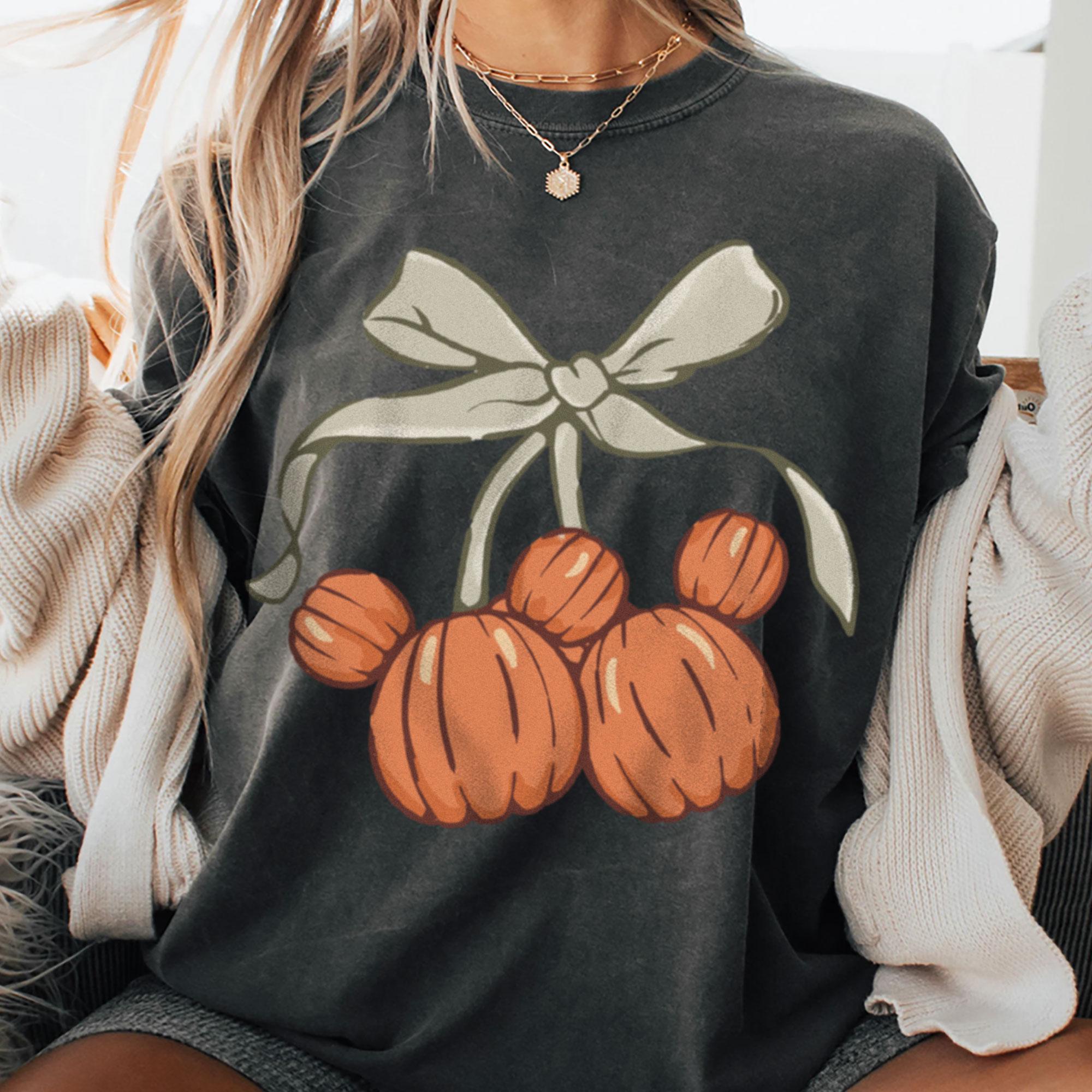Mickey Pumpkin Coquette Bow Comfort Color T-Shirt, Spooky Season Tee, Disneyland Vacation Trip Gift 2025