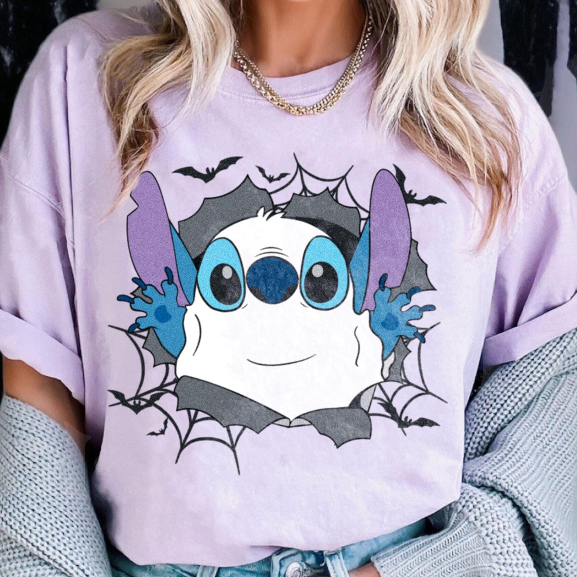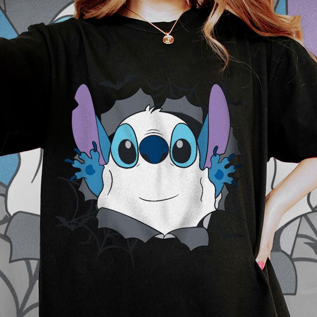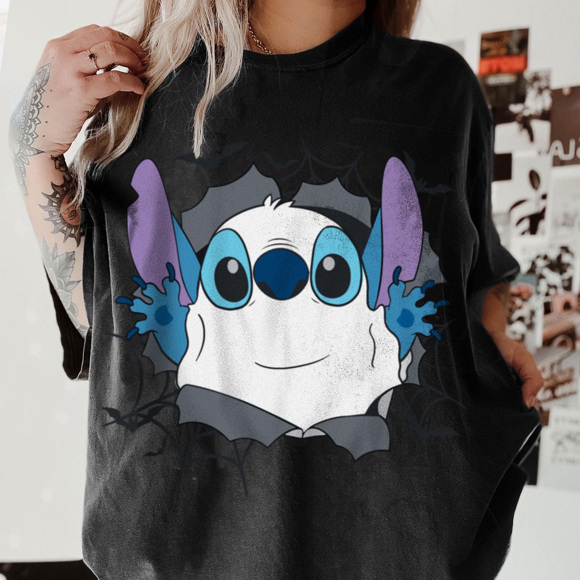 Stitch Boo Ghost In Hole Comfort Color T-Shirt, Piston Cup Disney Trending Unisex Tee, Disneyland Matching Vacation Trip Gift 2025