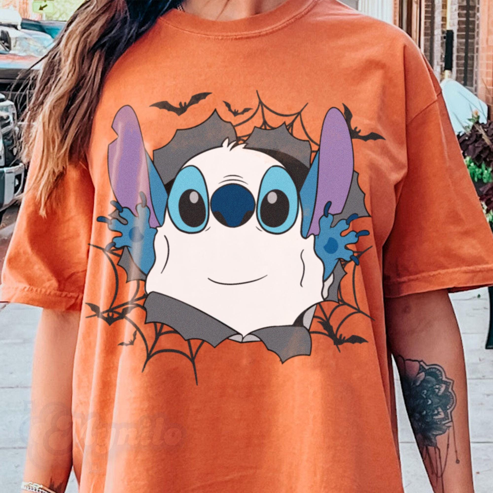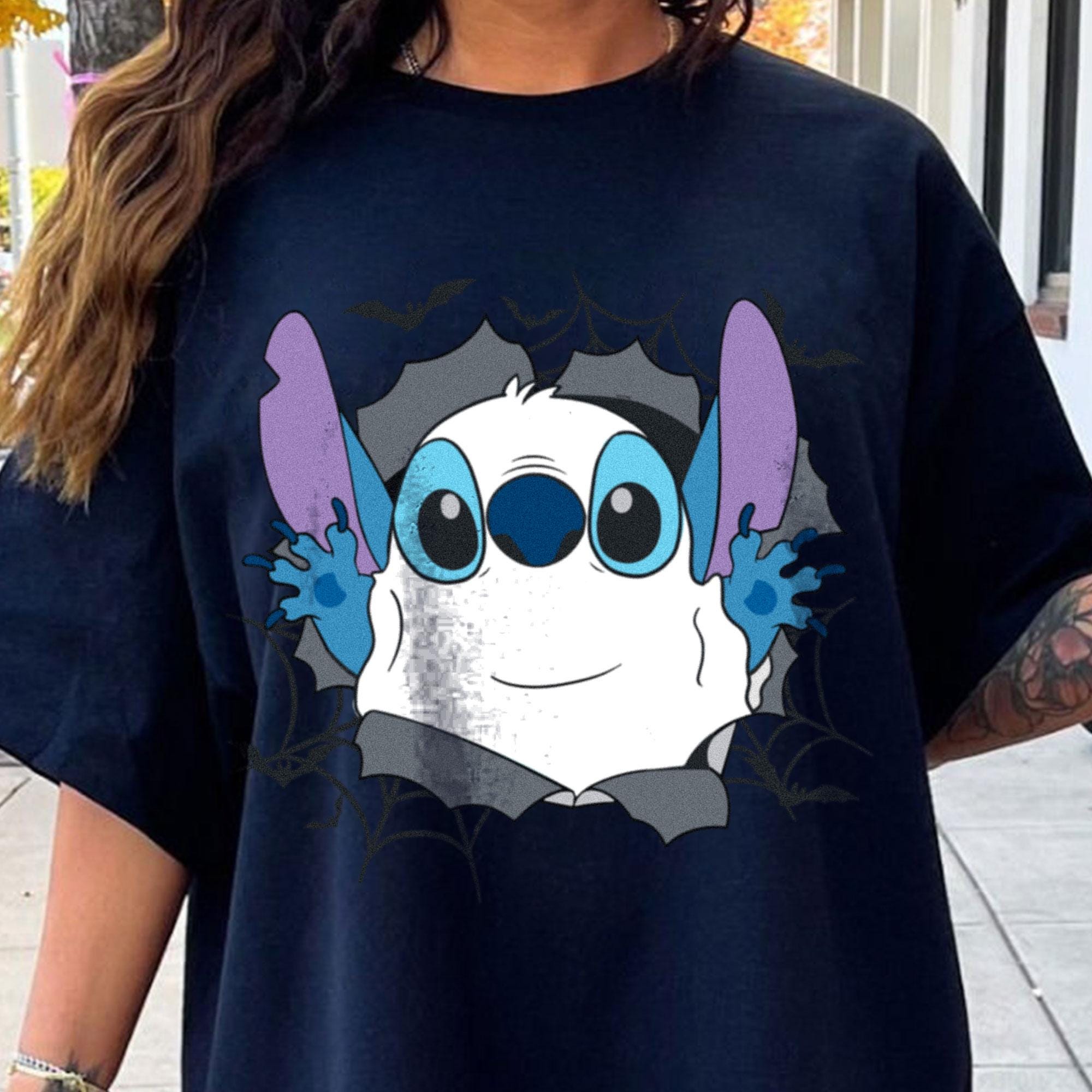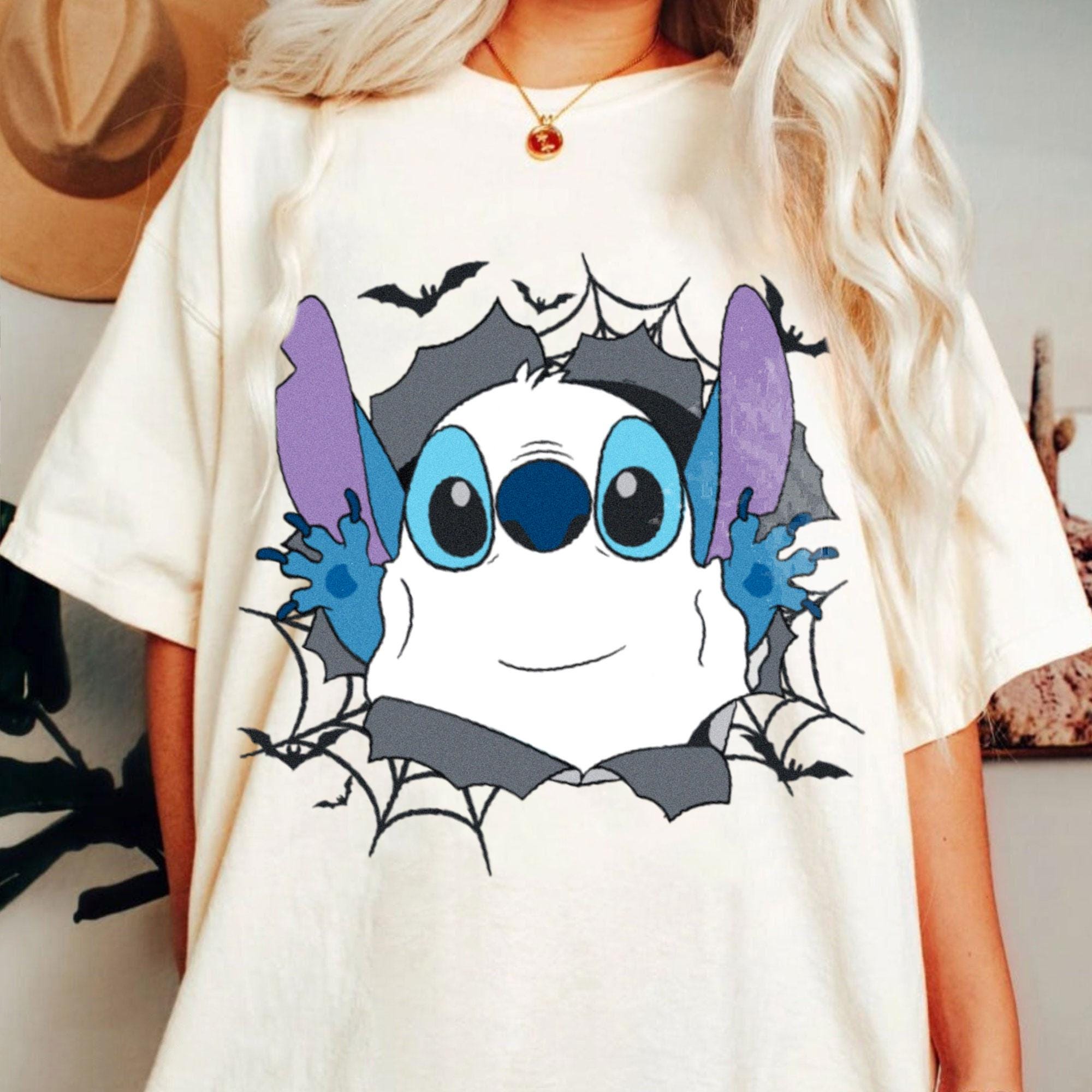 Stitch Boo Ghost In Hole Comfort Color T-Shirt, Piston Cup Disney Trending Unisex Tee, Disneyland Matching Vacation Trip Gift 2025