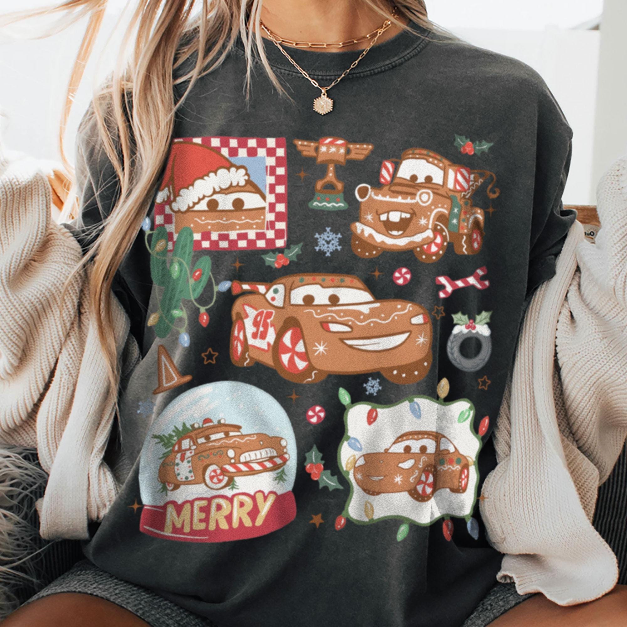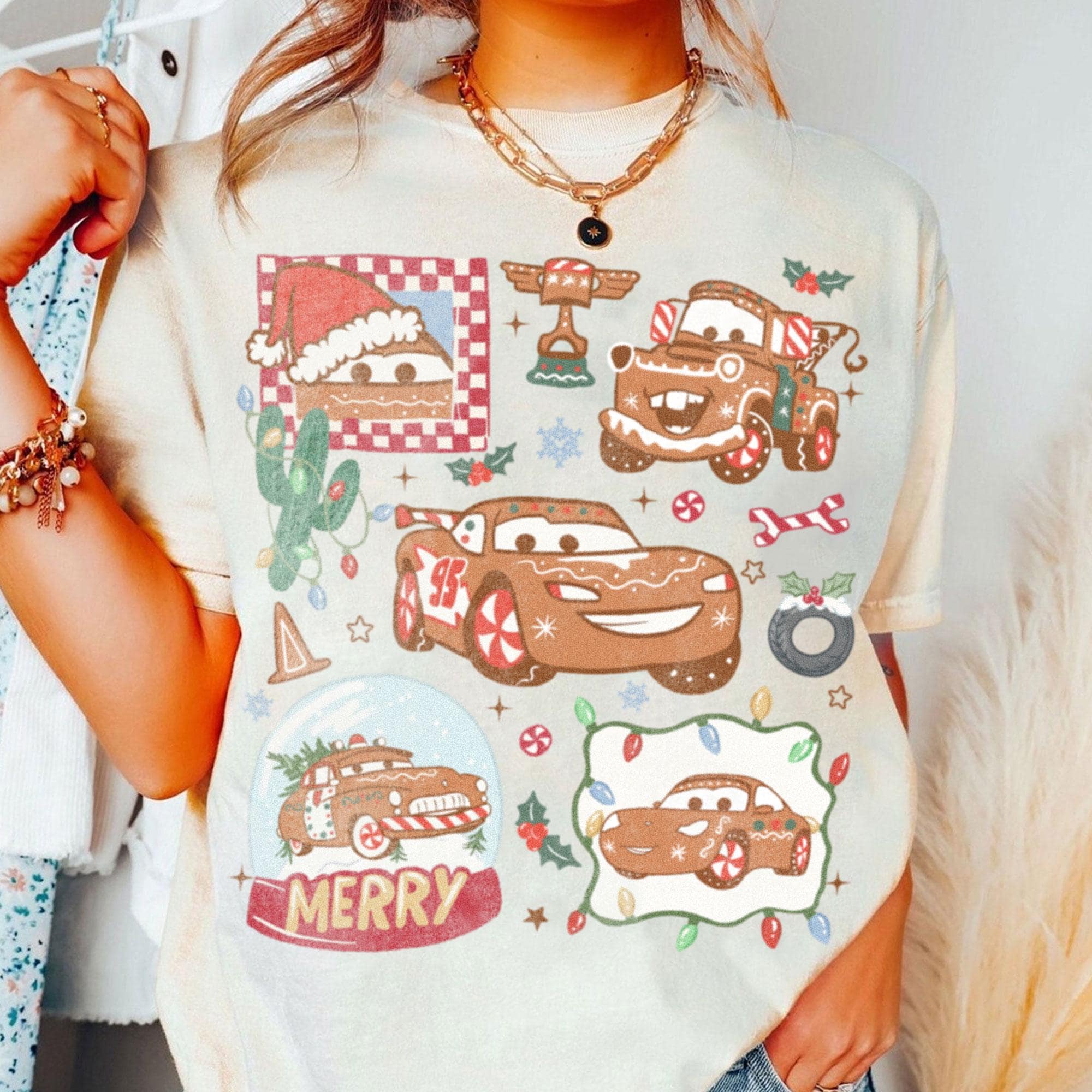 Lightning McQueen Ginger Bread Tow Mater Friend Piston Cup Comfort Color Shirt, Very Merry Christmas Party, Disneyland Trip Shirt 2025