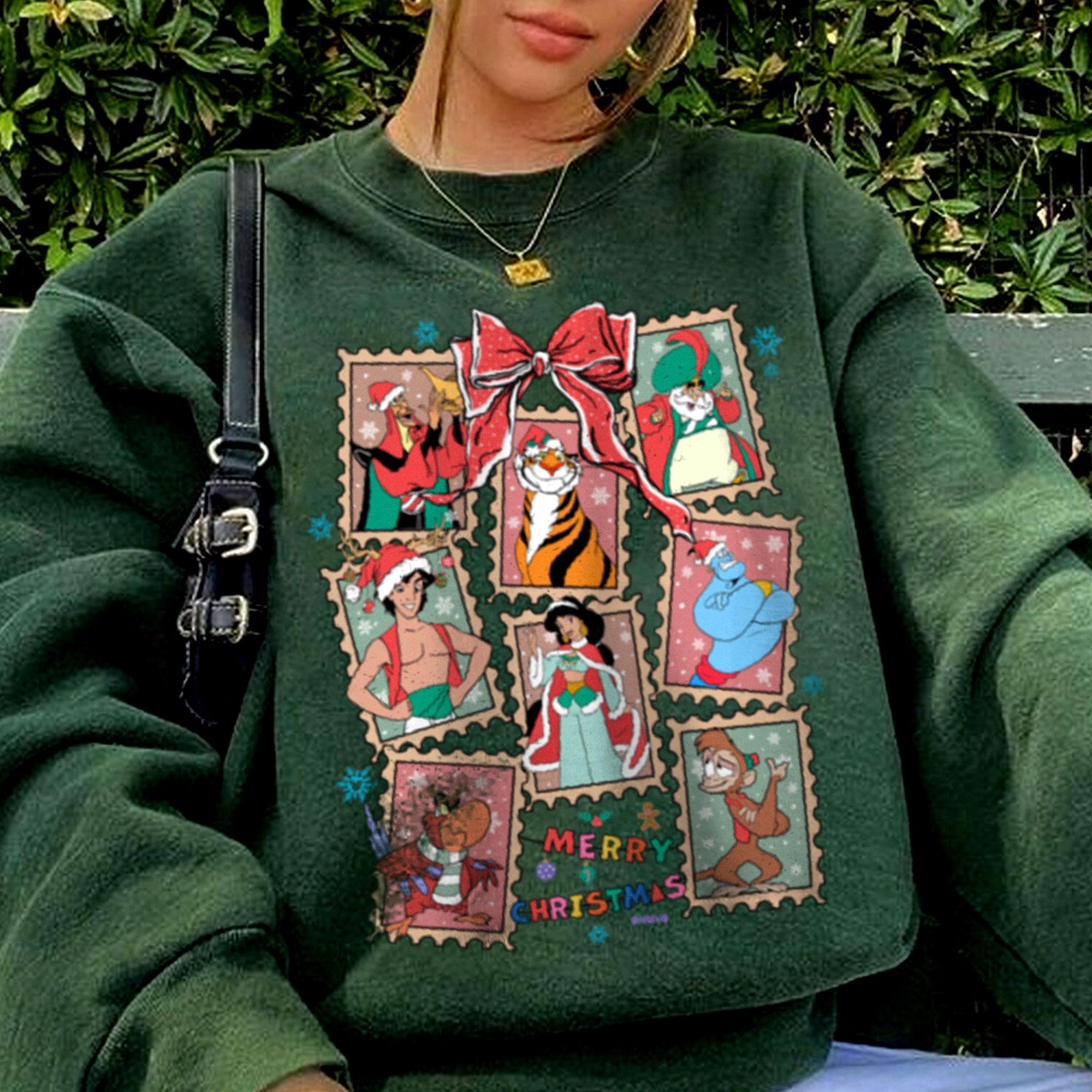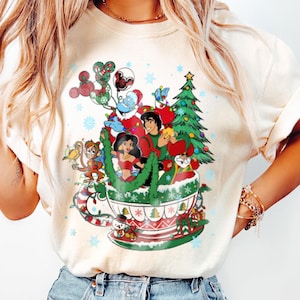 Aladdin Jasmine Jafar Abu Xmas Vibes Tis The Season Comfort Color Shirt, Very Merry Christmas Party, Disneyland Trip Shirt 2025
