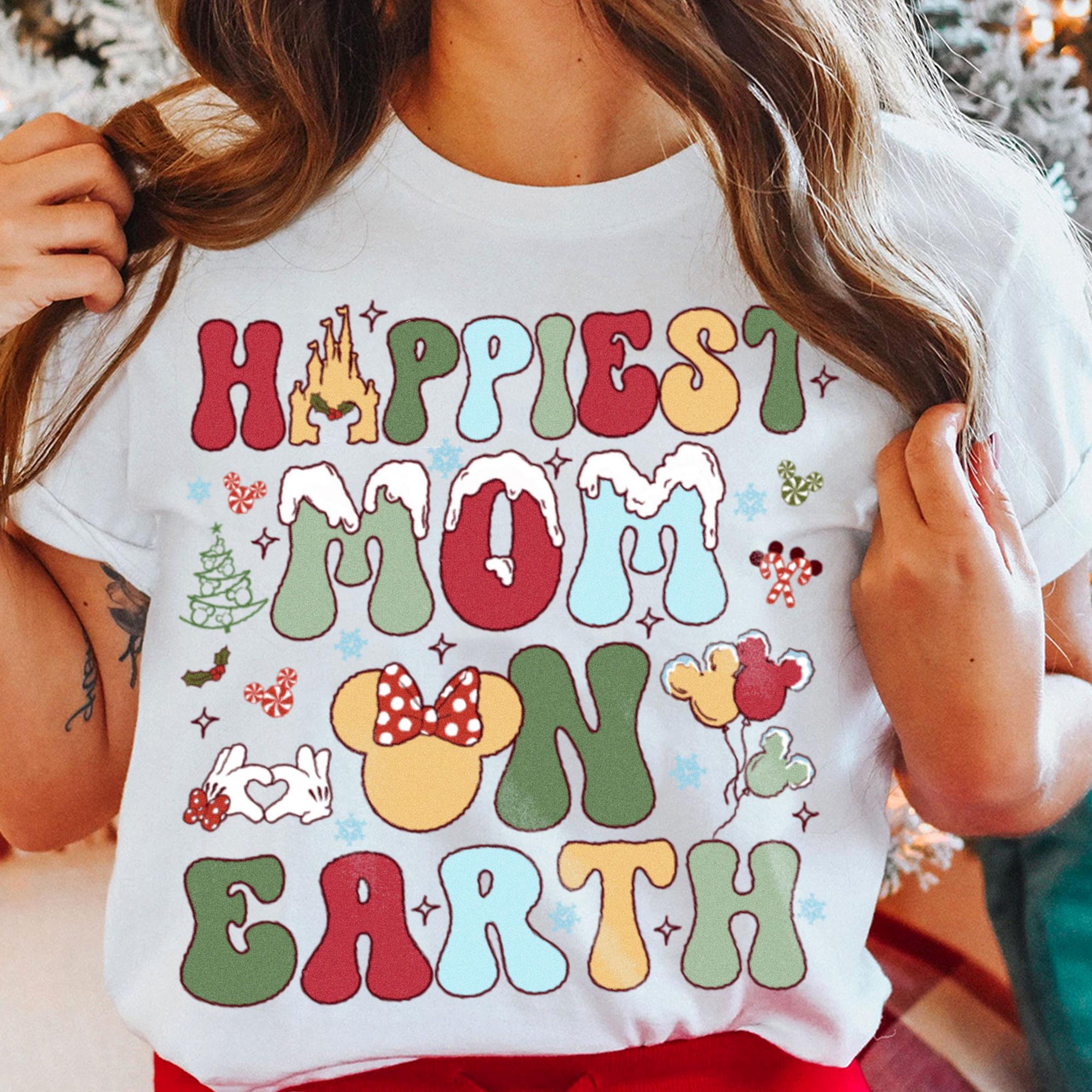 Custom Mom Aunt Gigi Nana Happiest On Earth Xmas Comfort Color Shirt, Very Merry Christmas Party, Disneyland Trip Shirt 2025