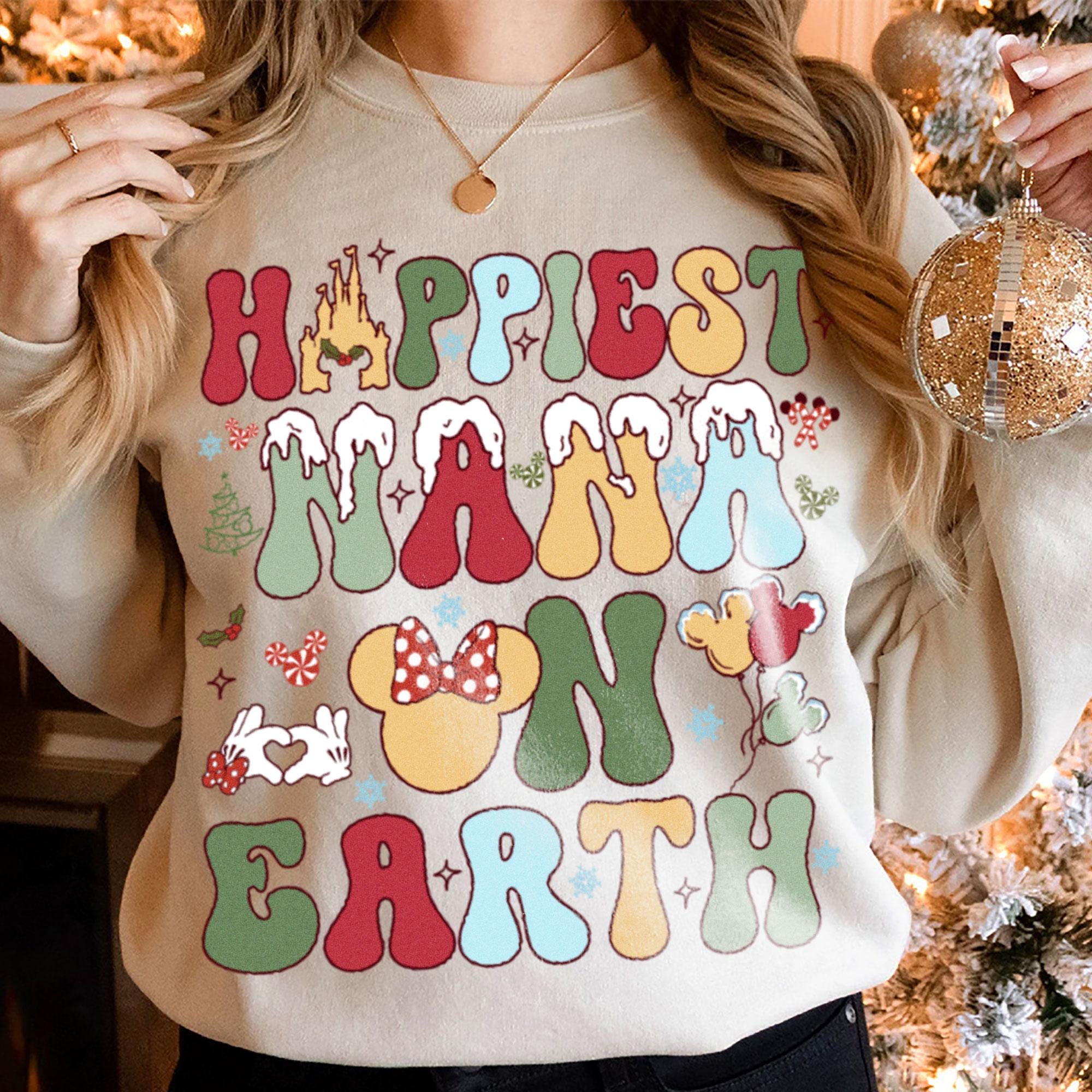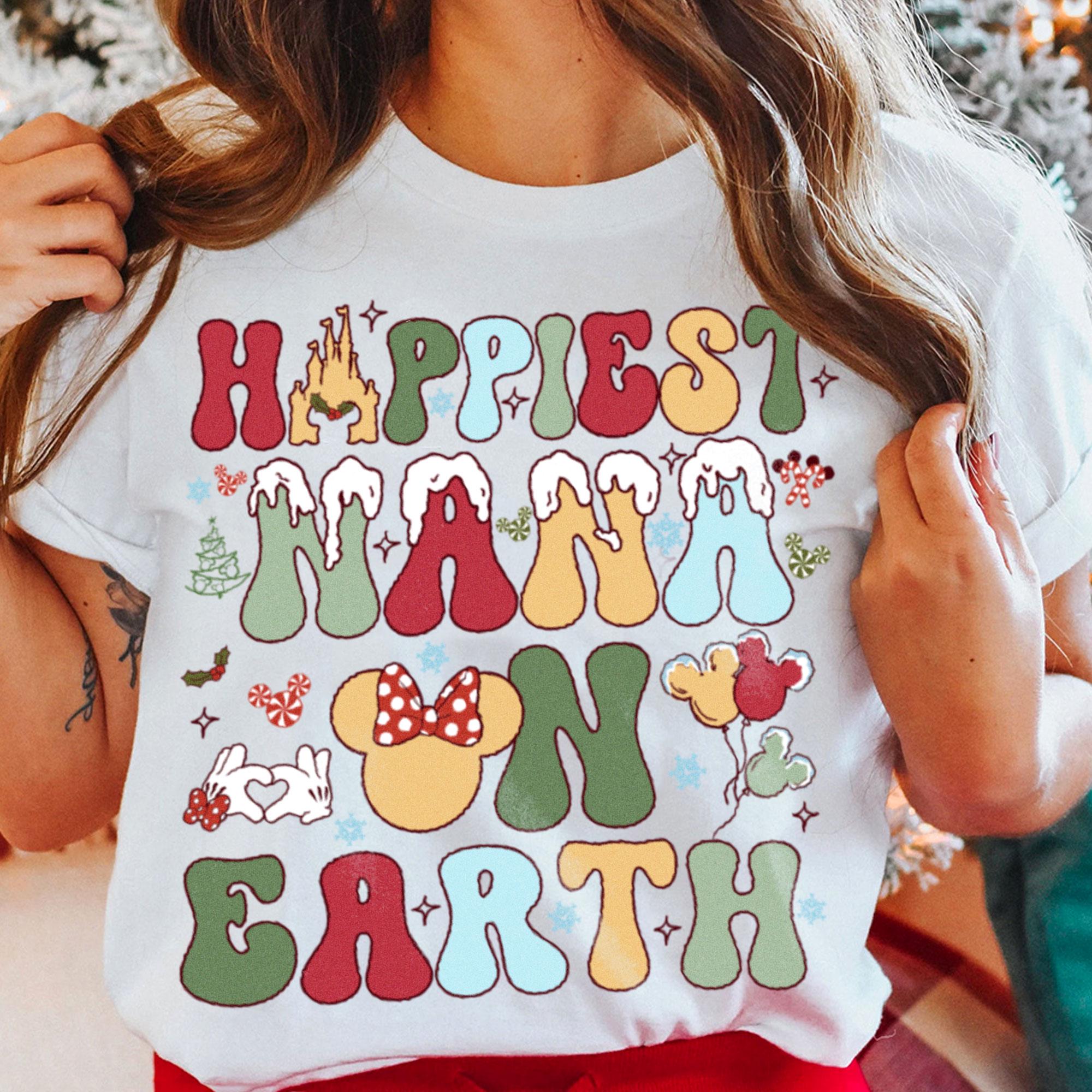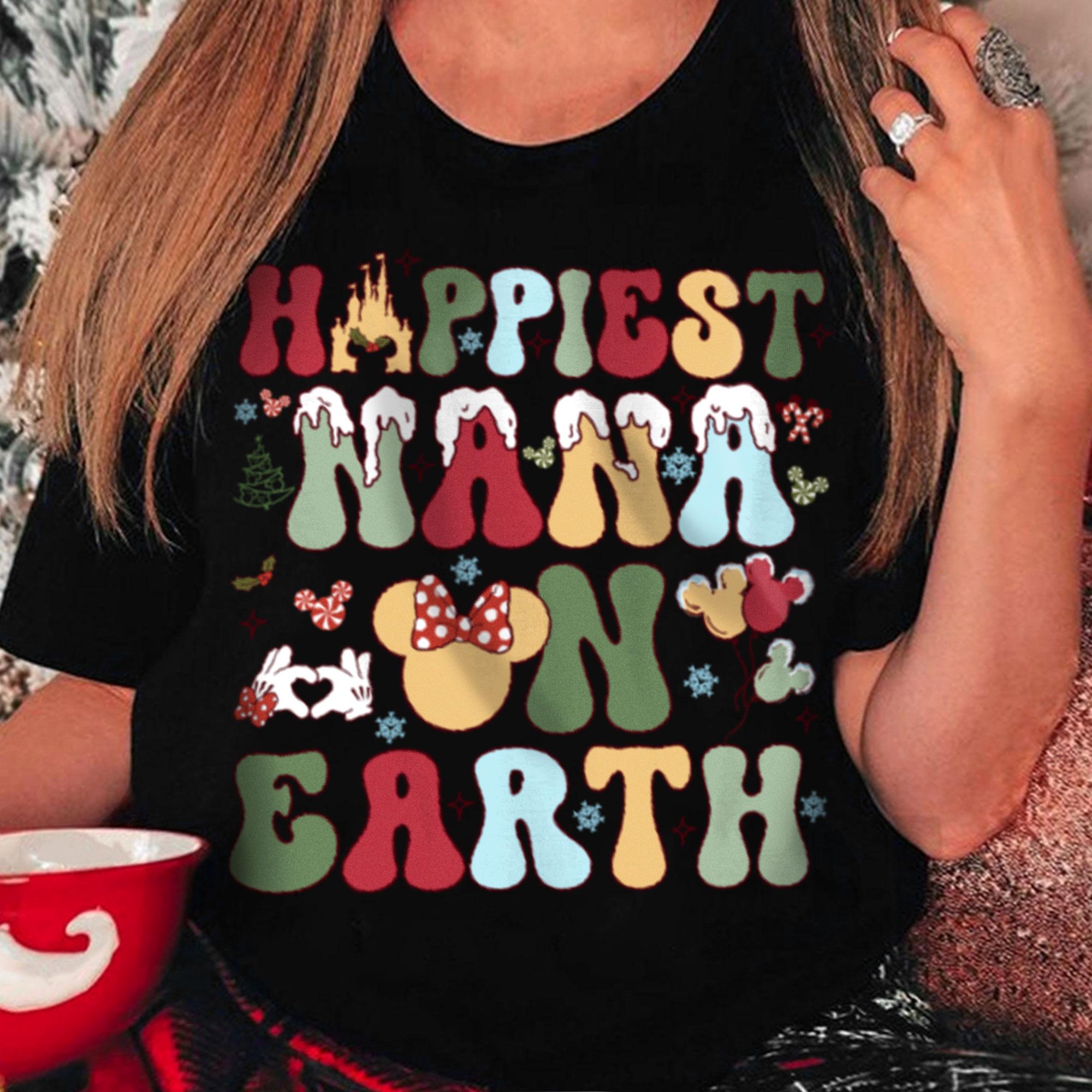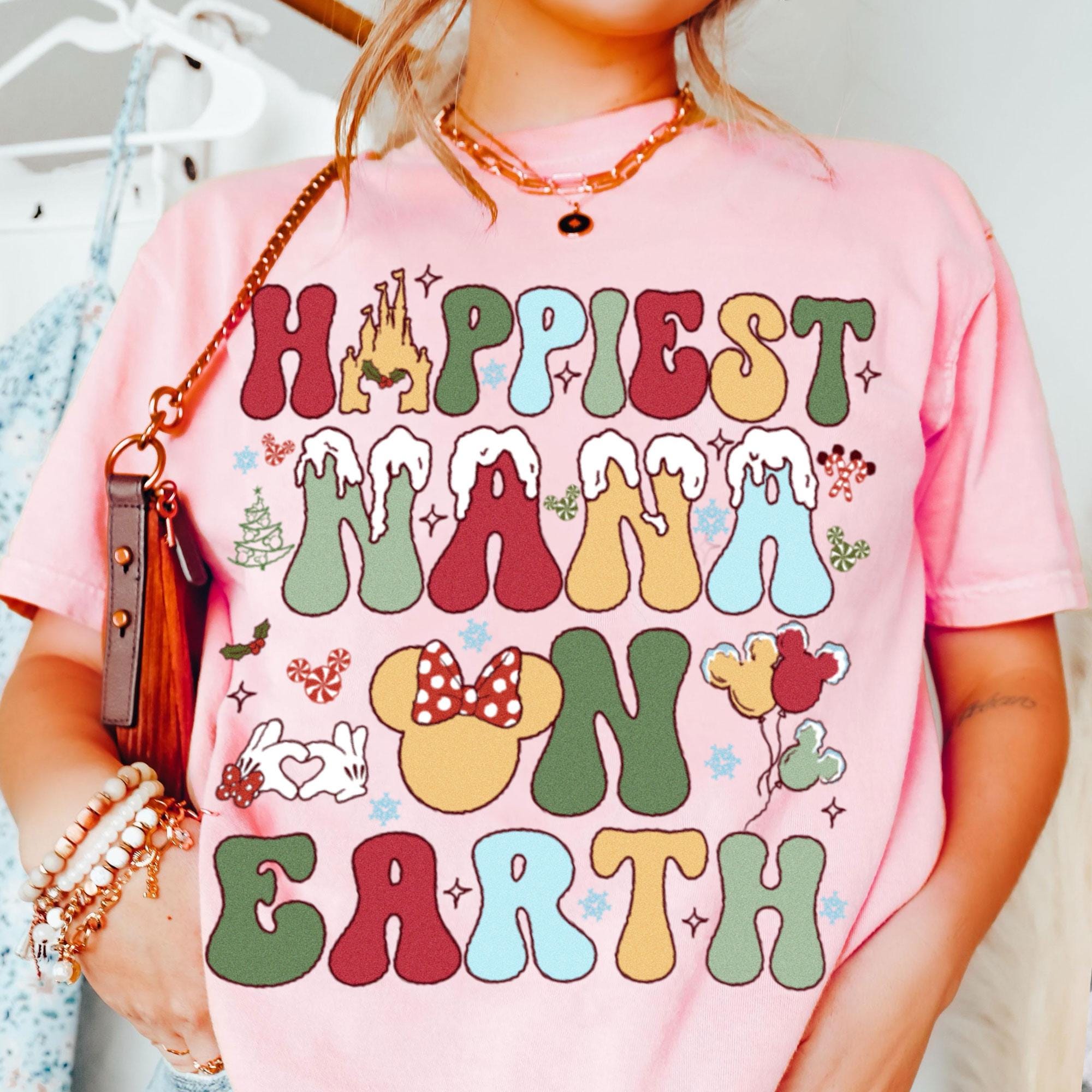 Custom Mom Aunt Gigi Nana Happiest On Earth Xmas Comfort Color Shirt, Very Merry Christmas Party, Disneyland Trip Shirt 2025