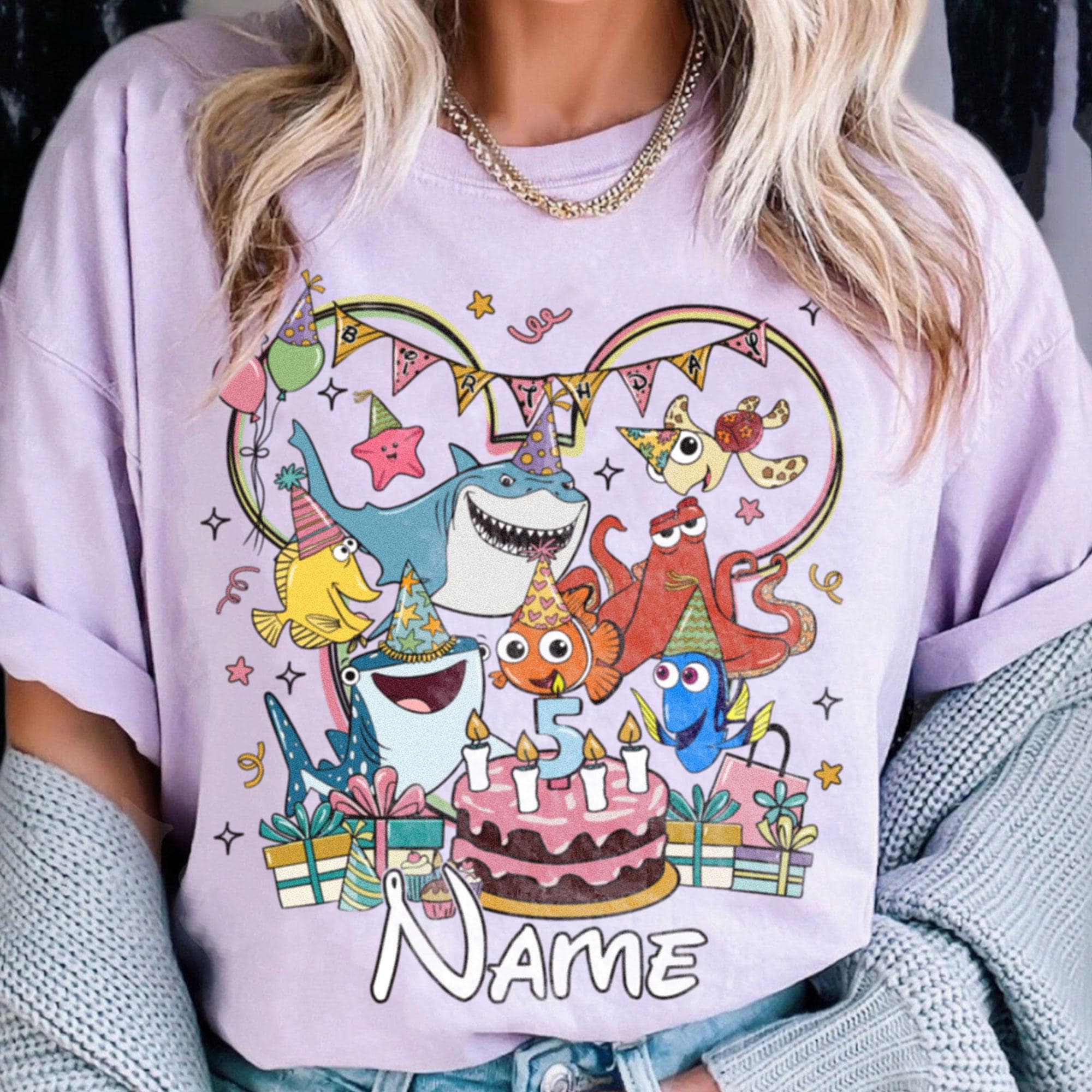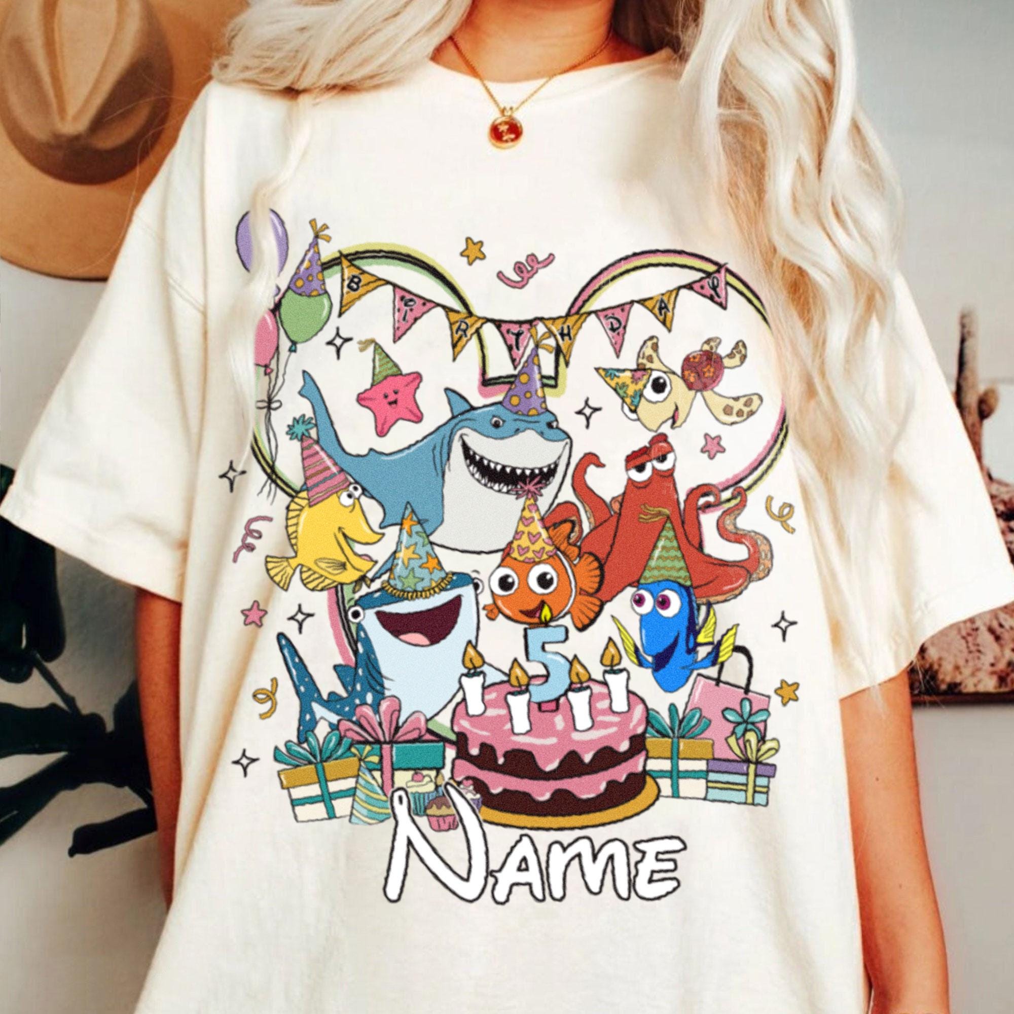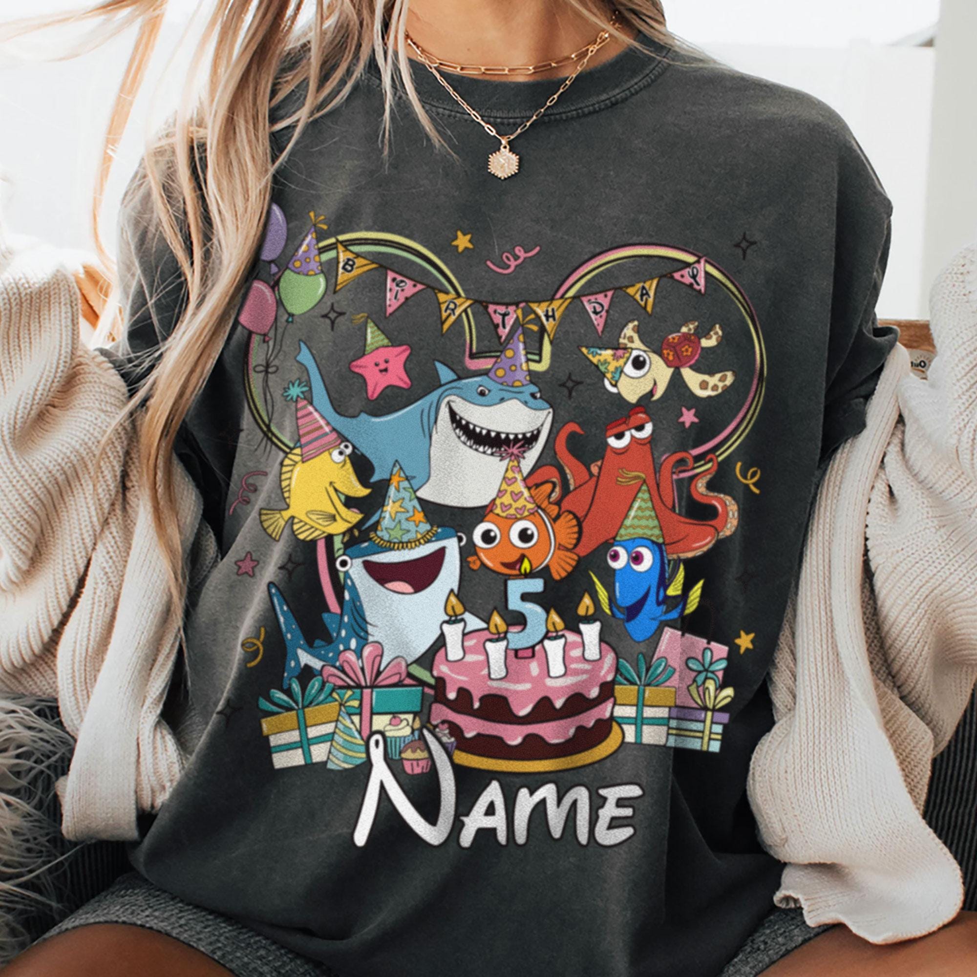 Custom Name Pixar Finding Nemo Team Birthday Comfort Color T-Shirt, Trending Unisex Tee, Disneyland Vacation Trip Gift 2025