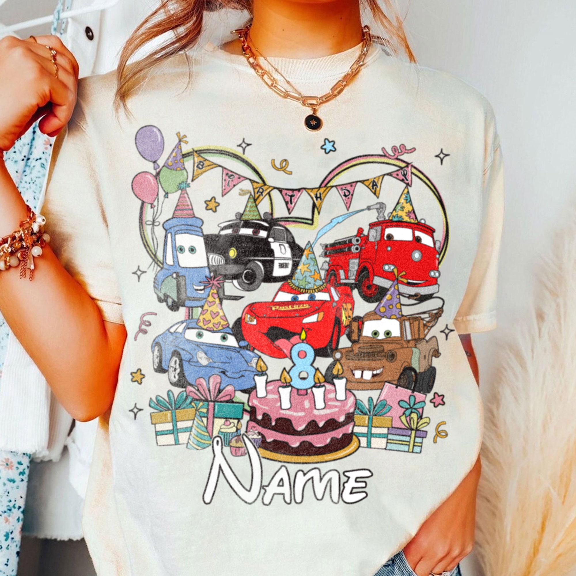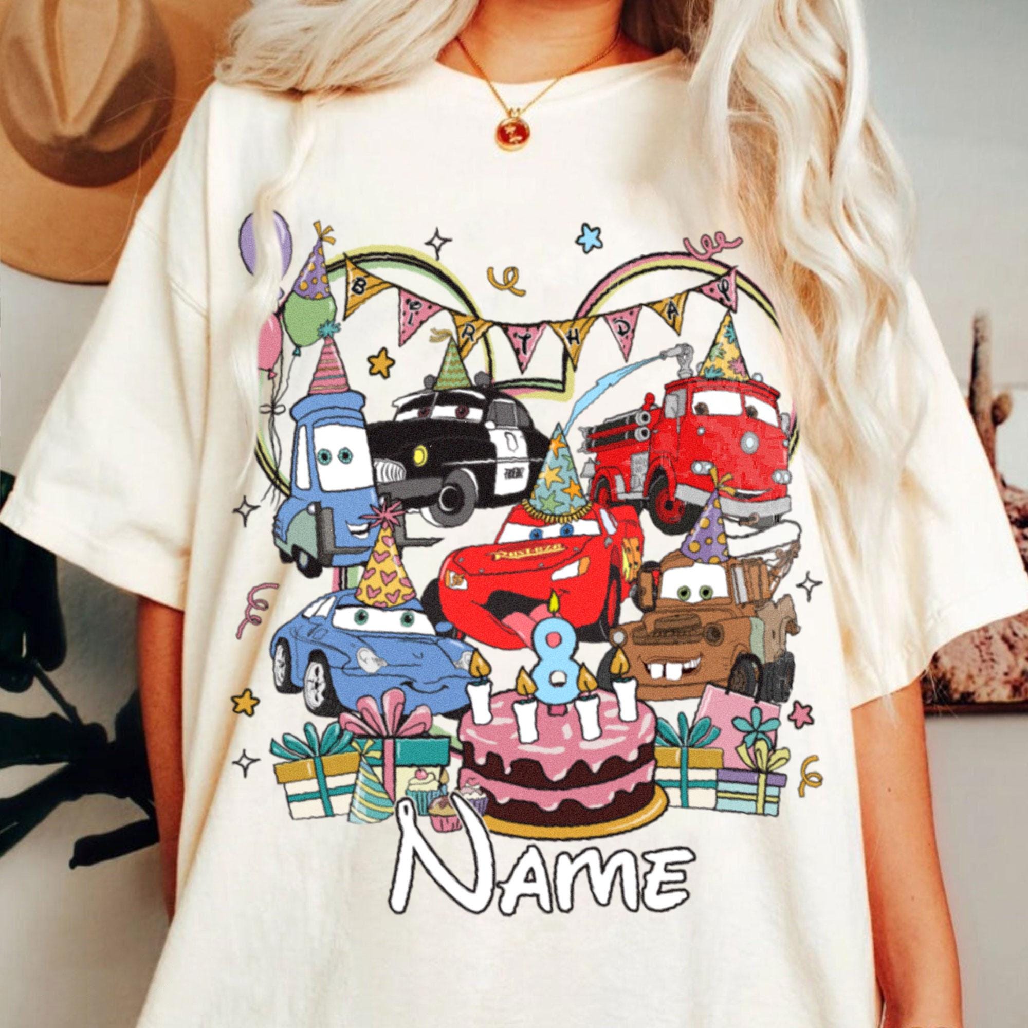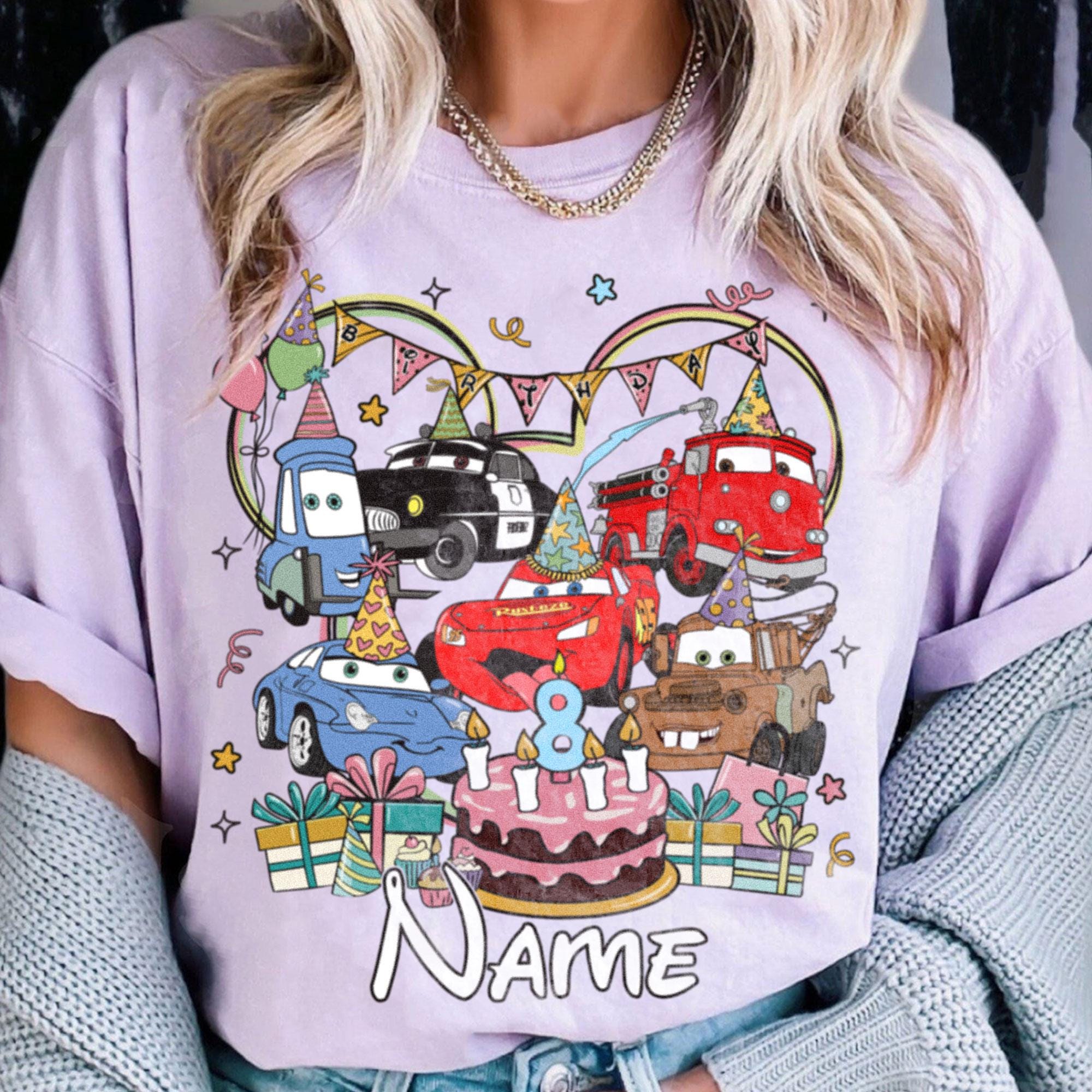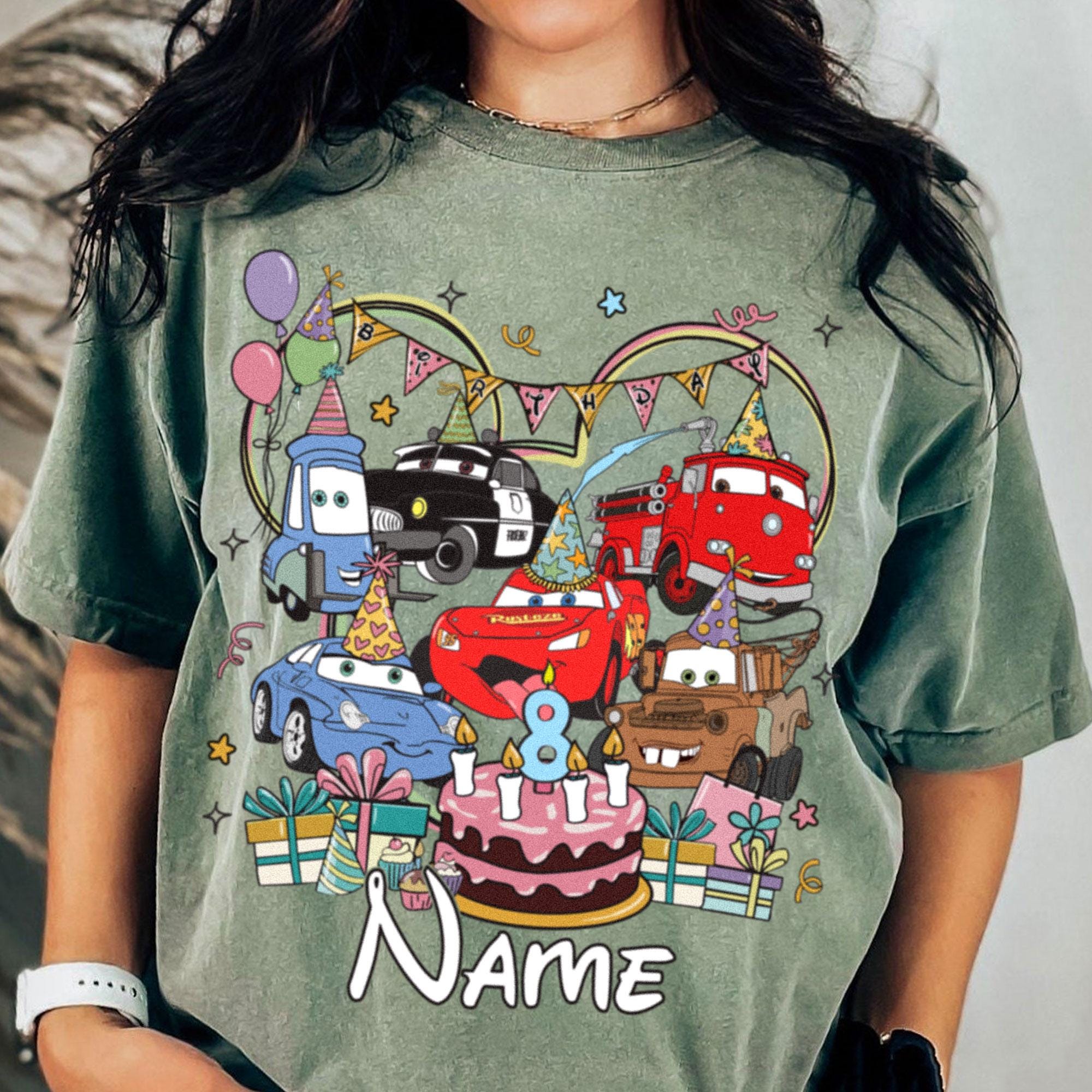 Custom Name Lightning McQueen Tow Mater Team Birthday Comfort Color T-Shirt, Trending Unisex Tee, Disneyland Vacation Trip Gift 2025