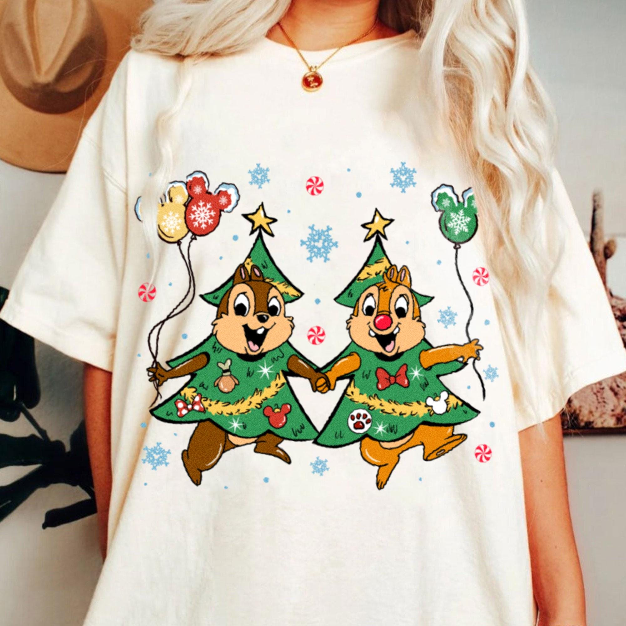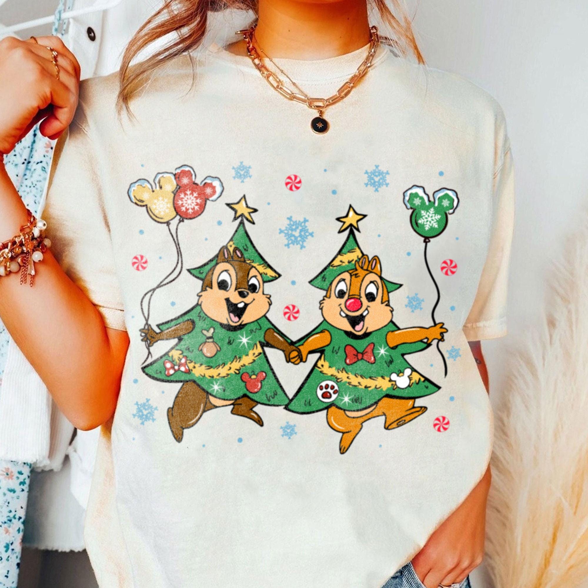 Chip N Dale In A Christmas Tree Costume Comfort Color Shirt, Very Merry Christmas Party, Disneyland Trip Shirt 2025