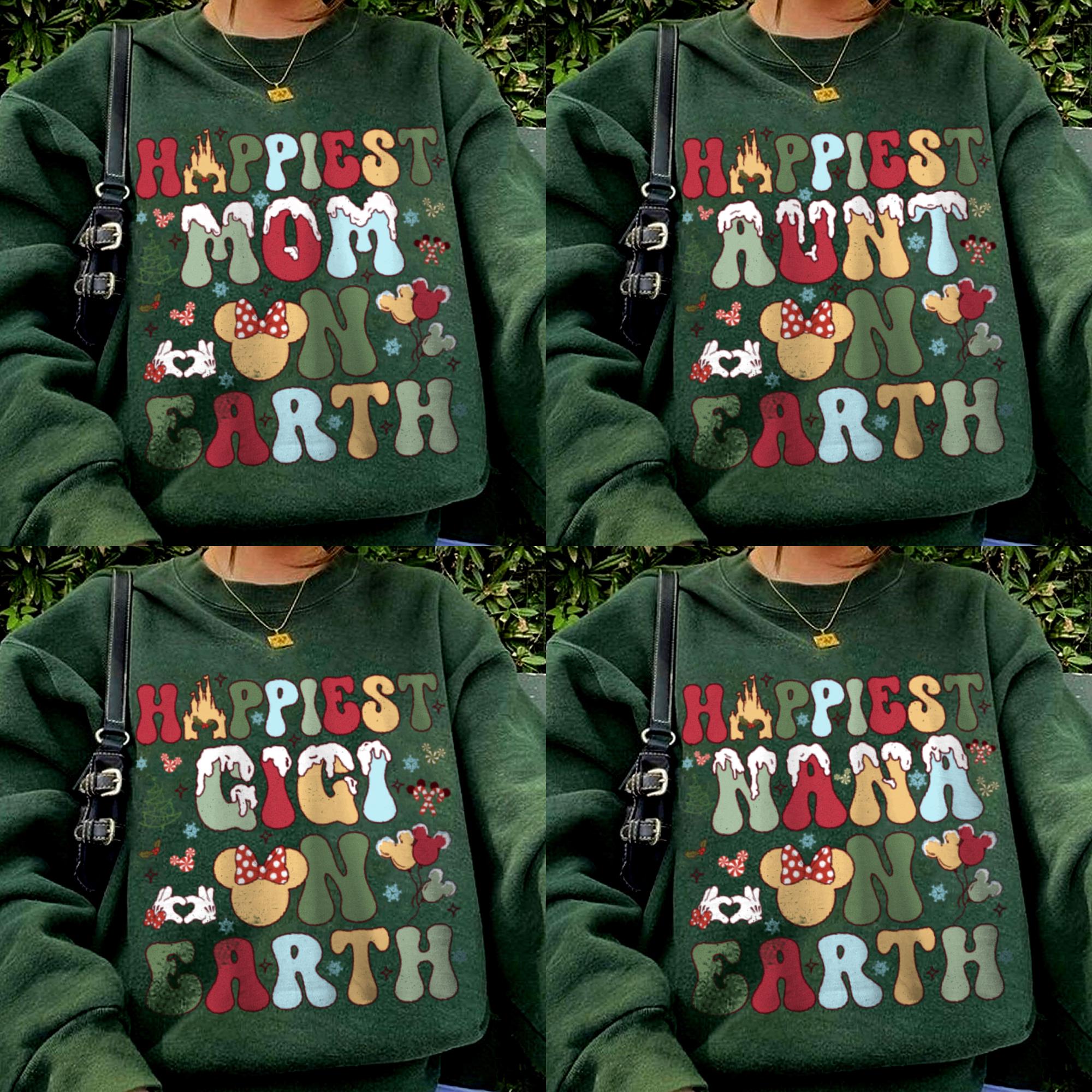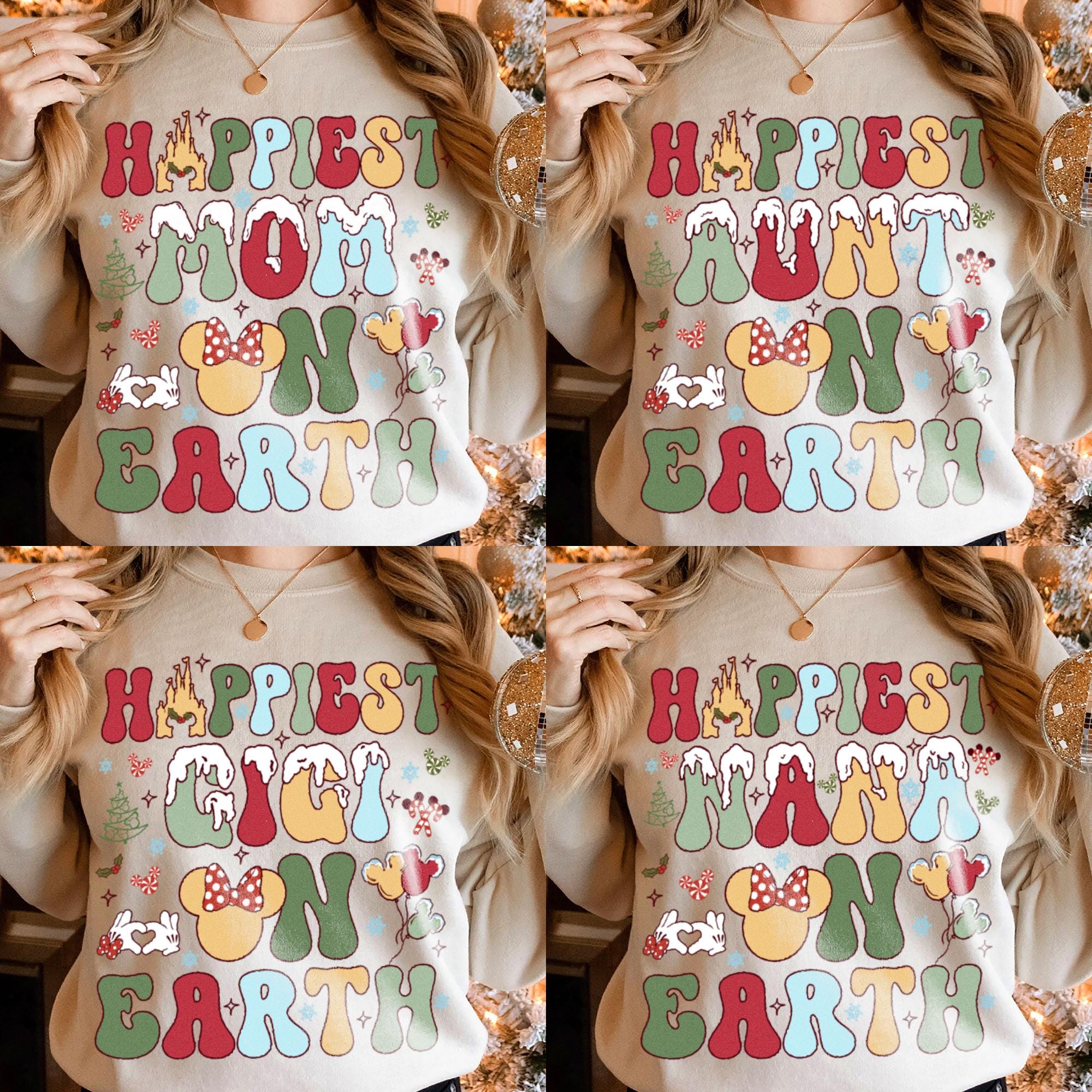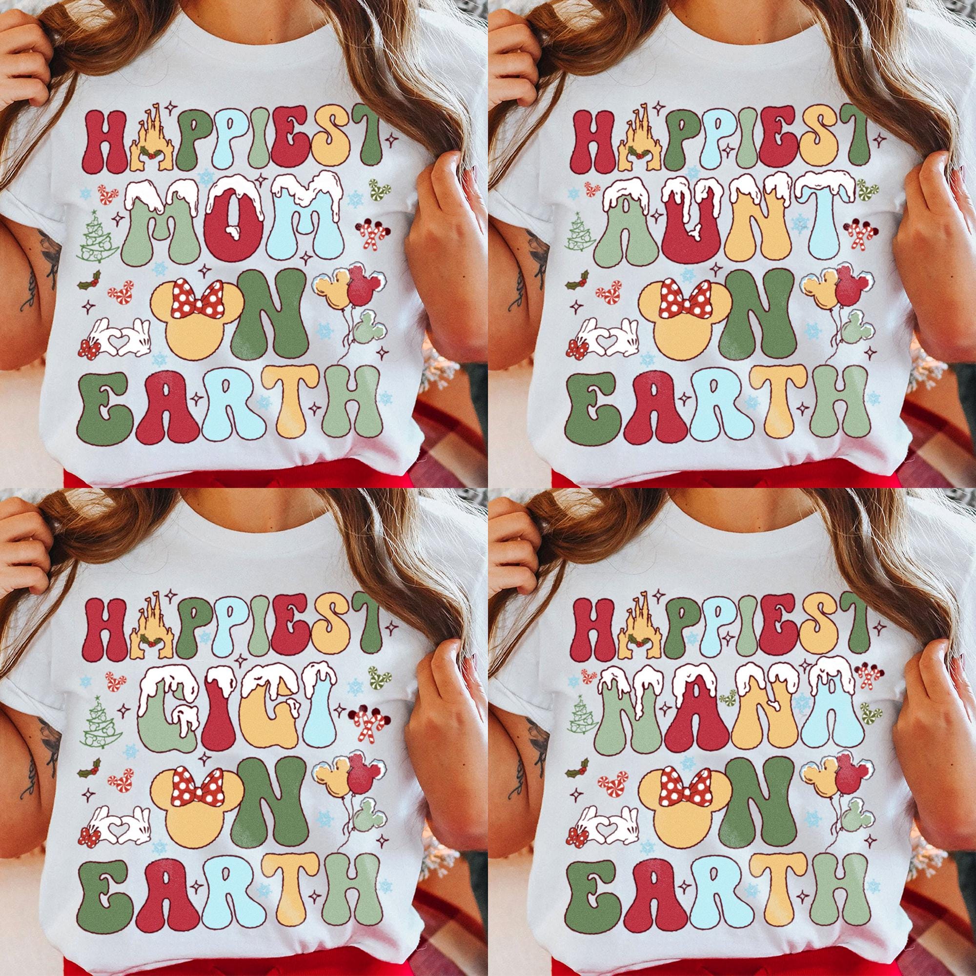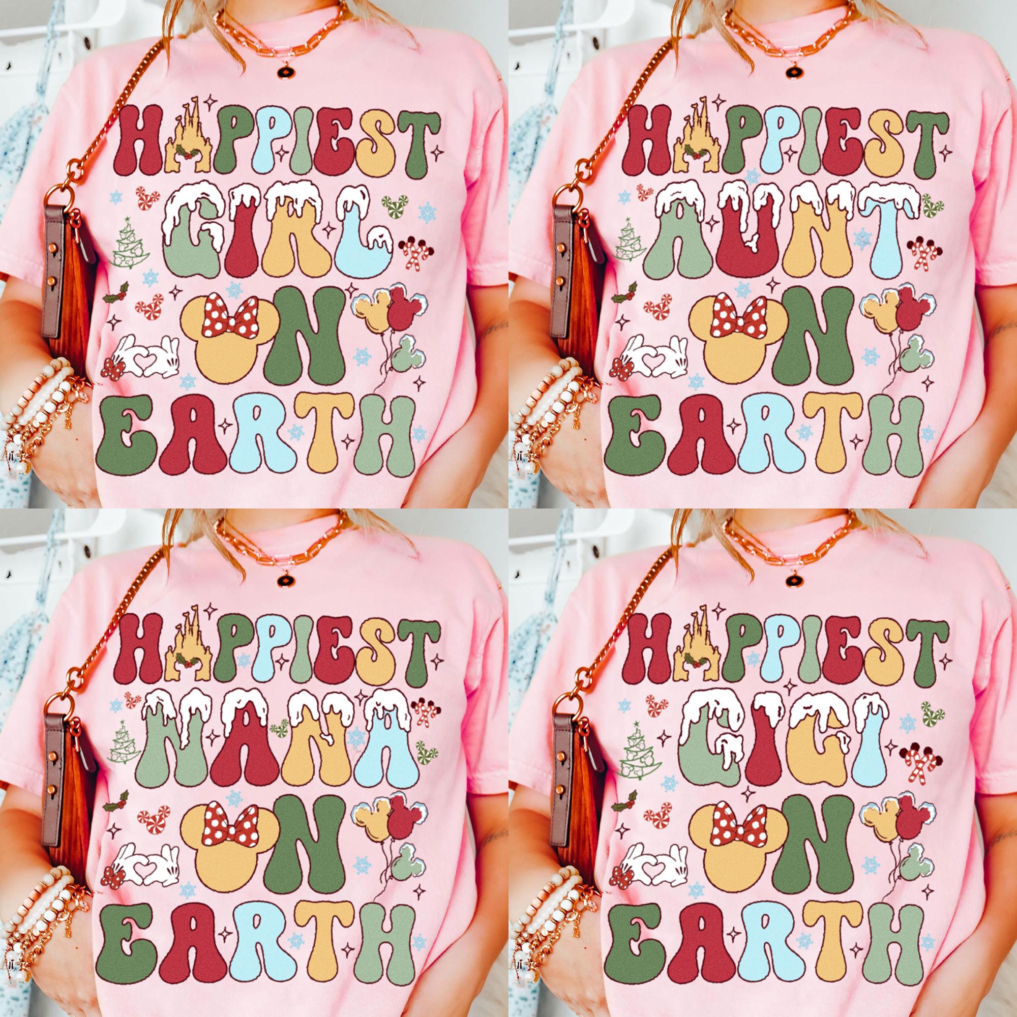 Happiest Mom Aunt Gigi Nana On Earth Xmas Comfort Color Shirt, Very Merry Christmas Party, Disneyland Trip Shirt 2025