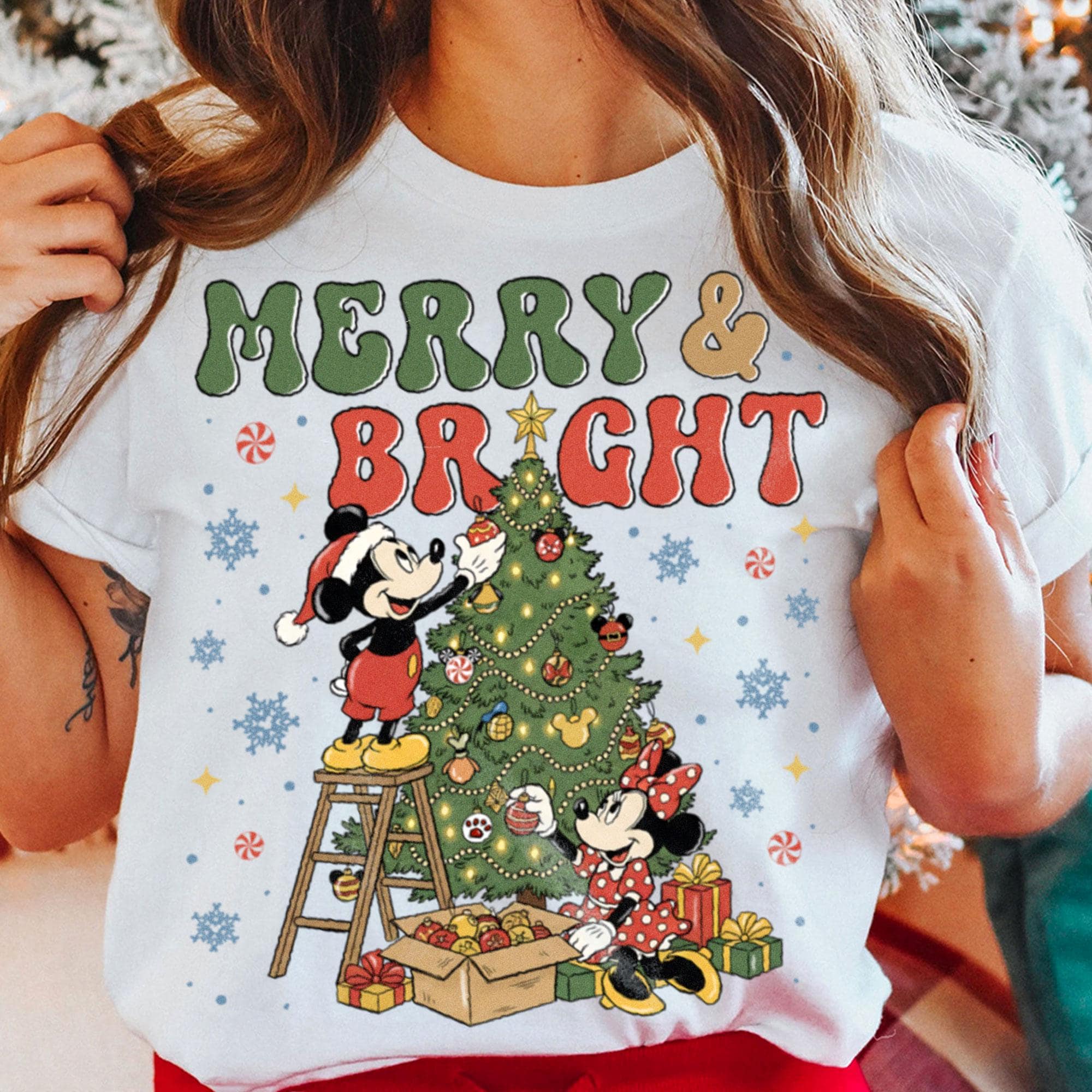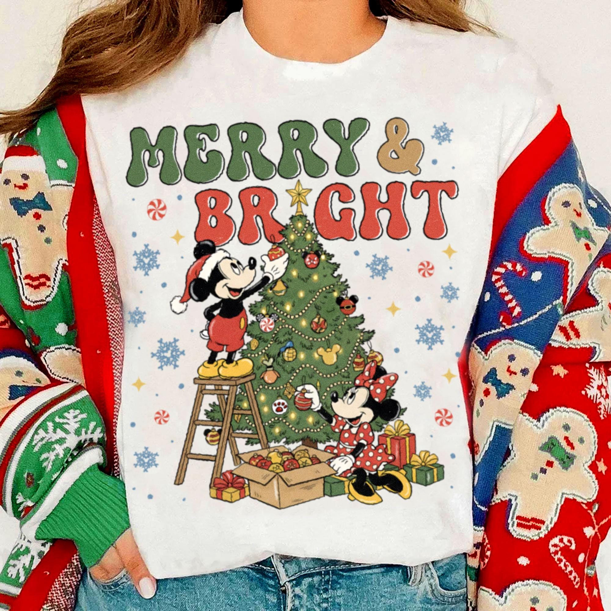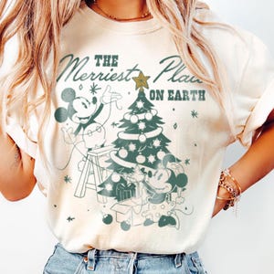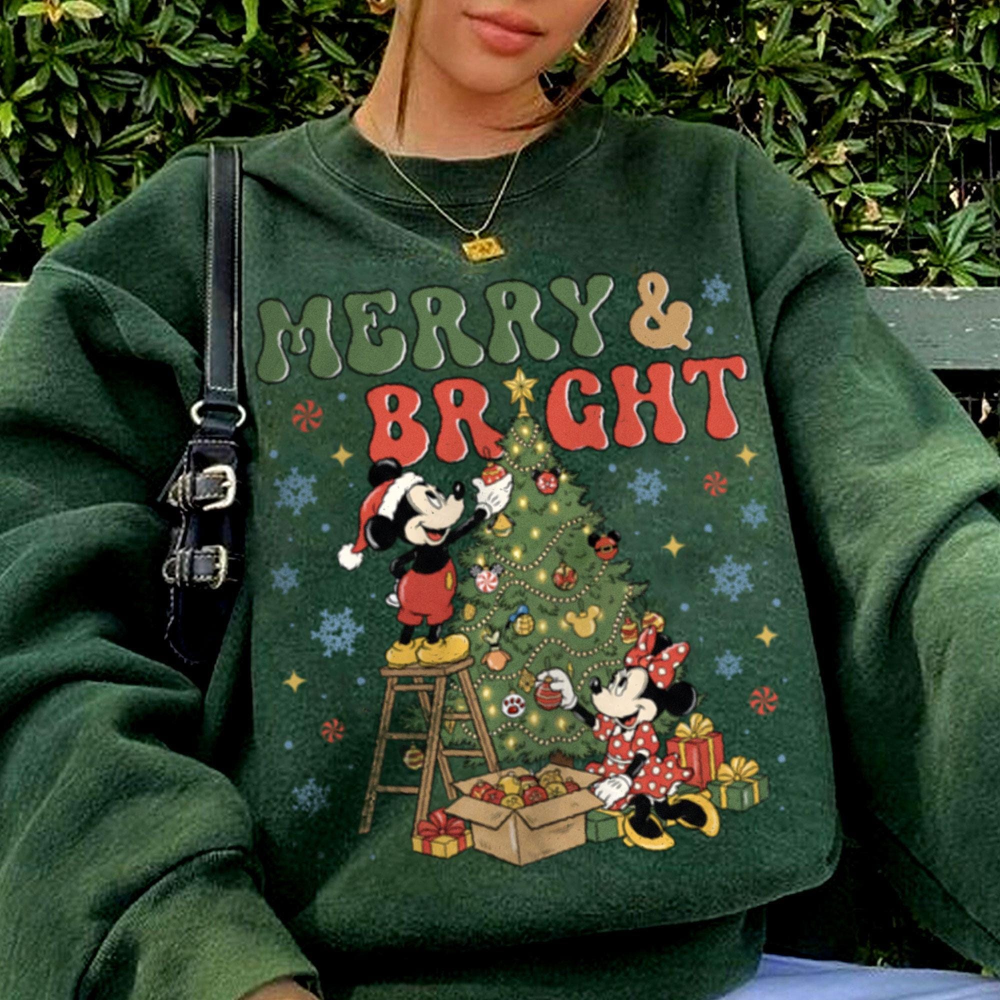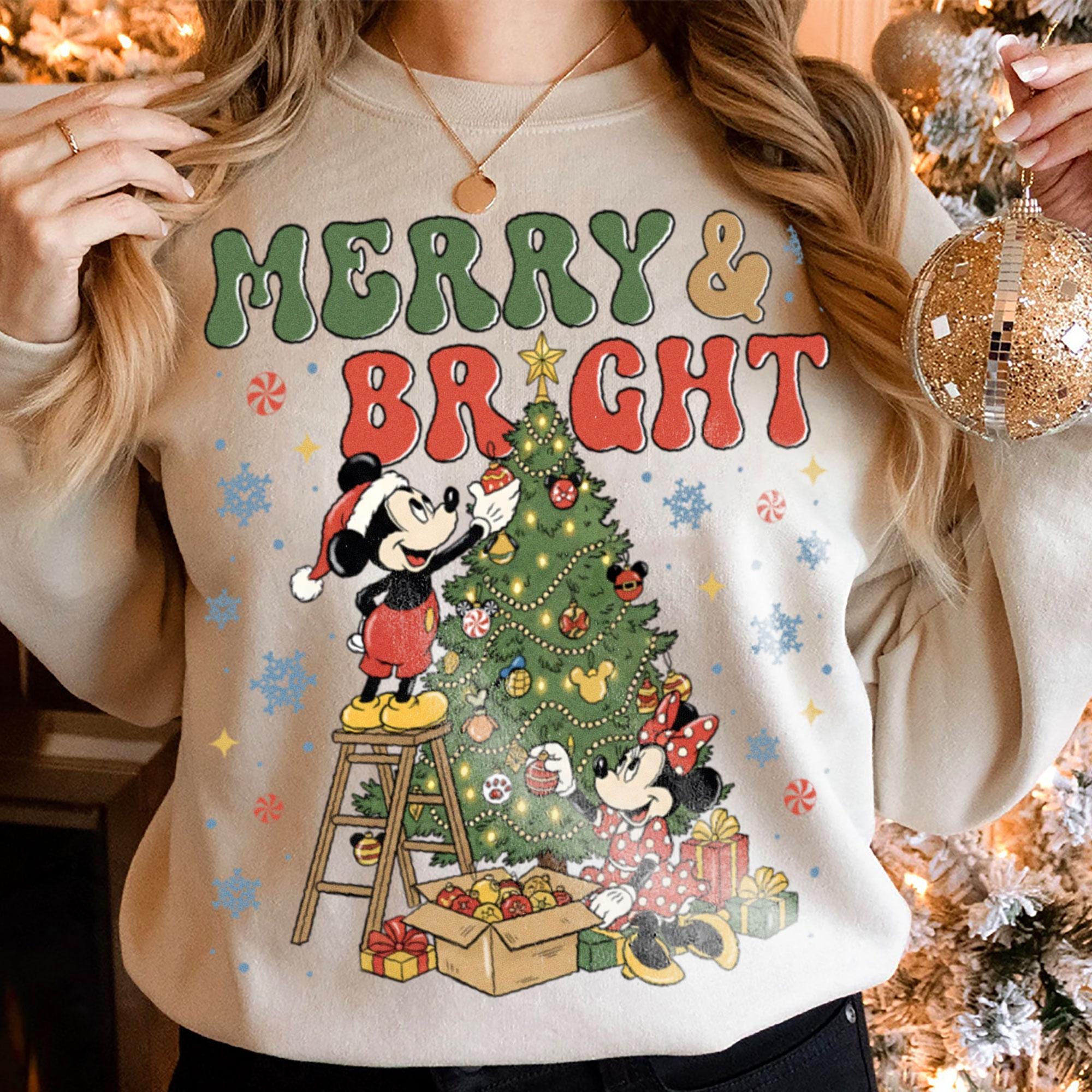 Mickey Minnie Around Xmas Tree Merry And Bright Comfort Color Shirt, Very Merry Christmas Party, Disneyland Trip Shirt 2025