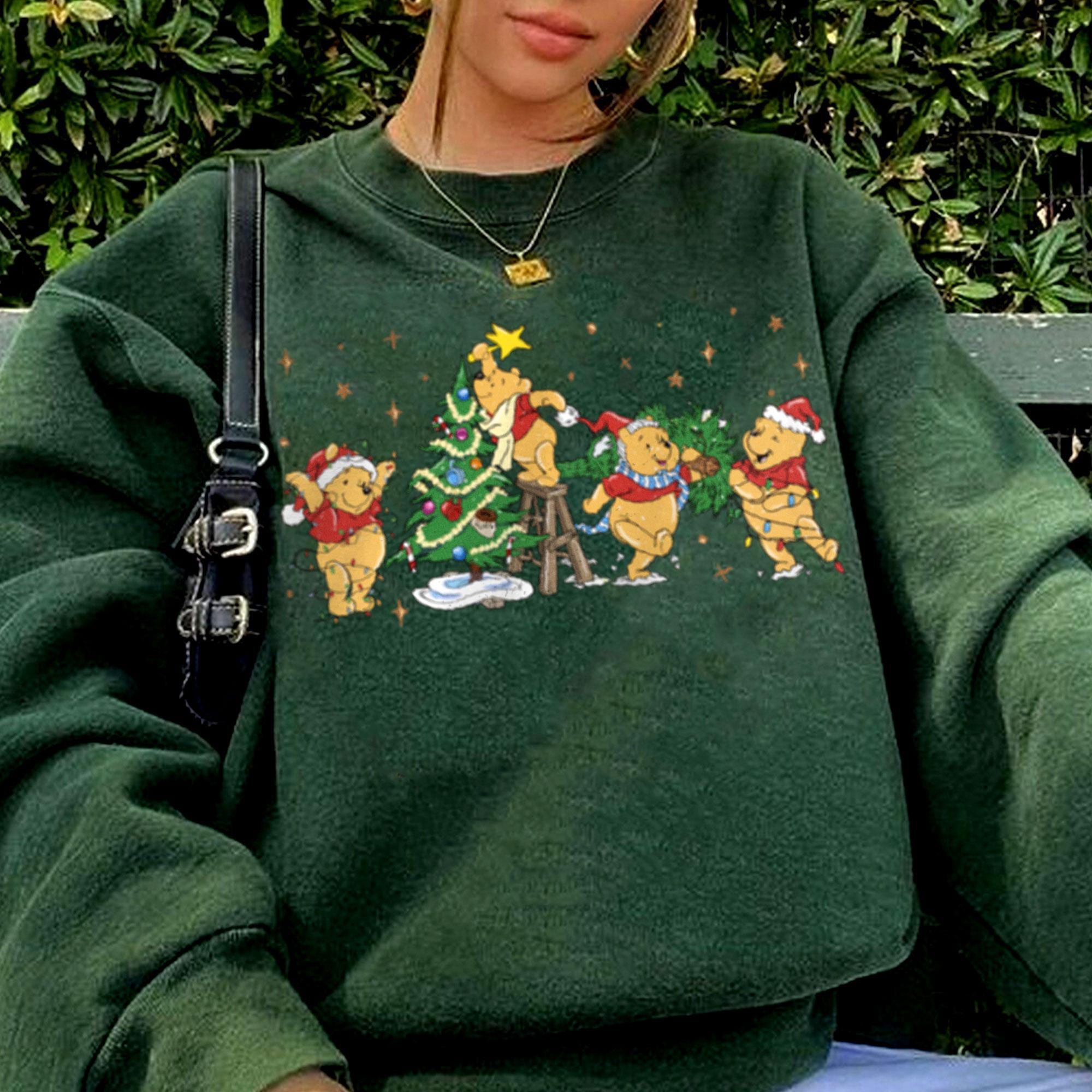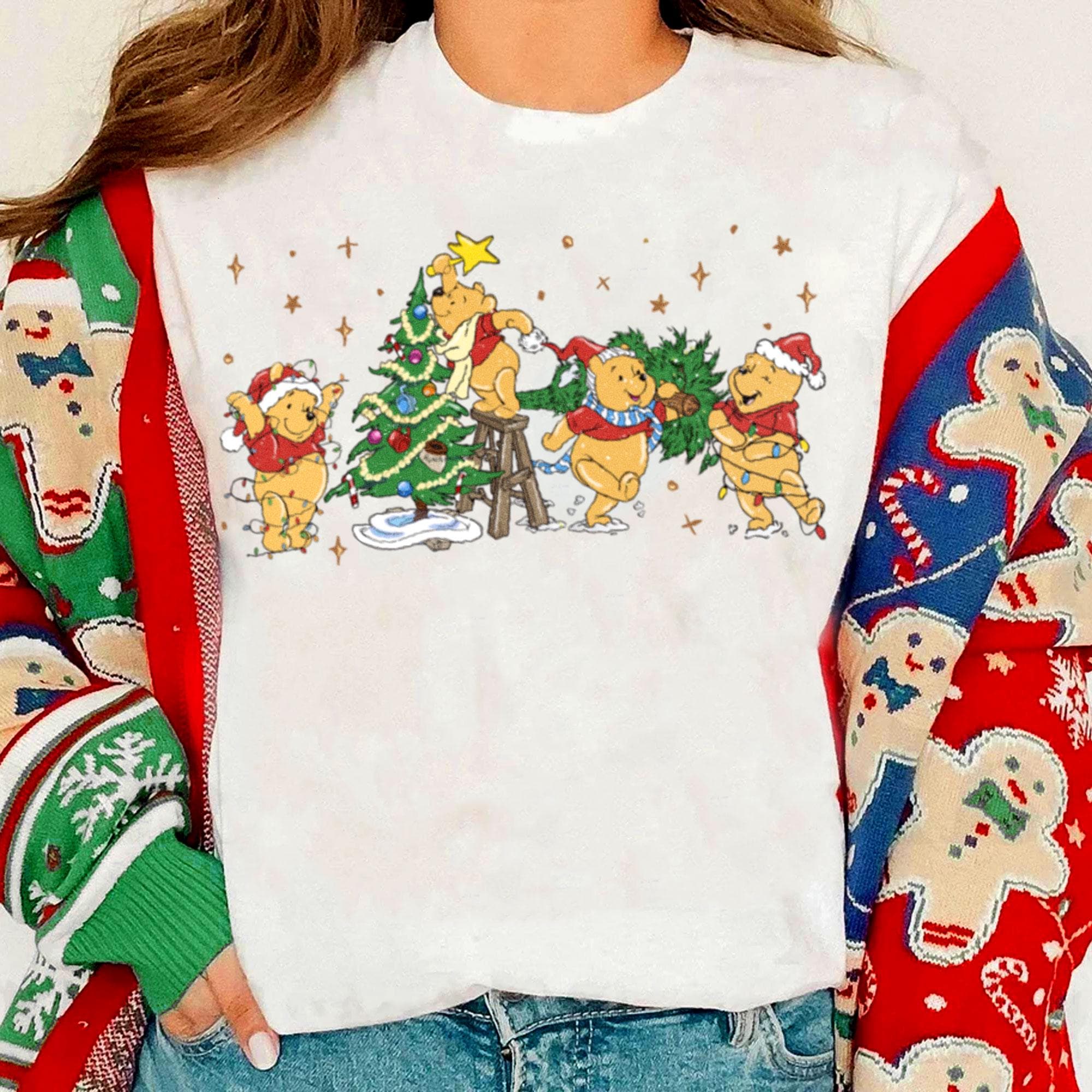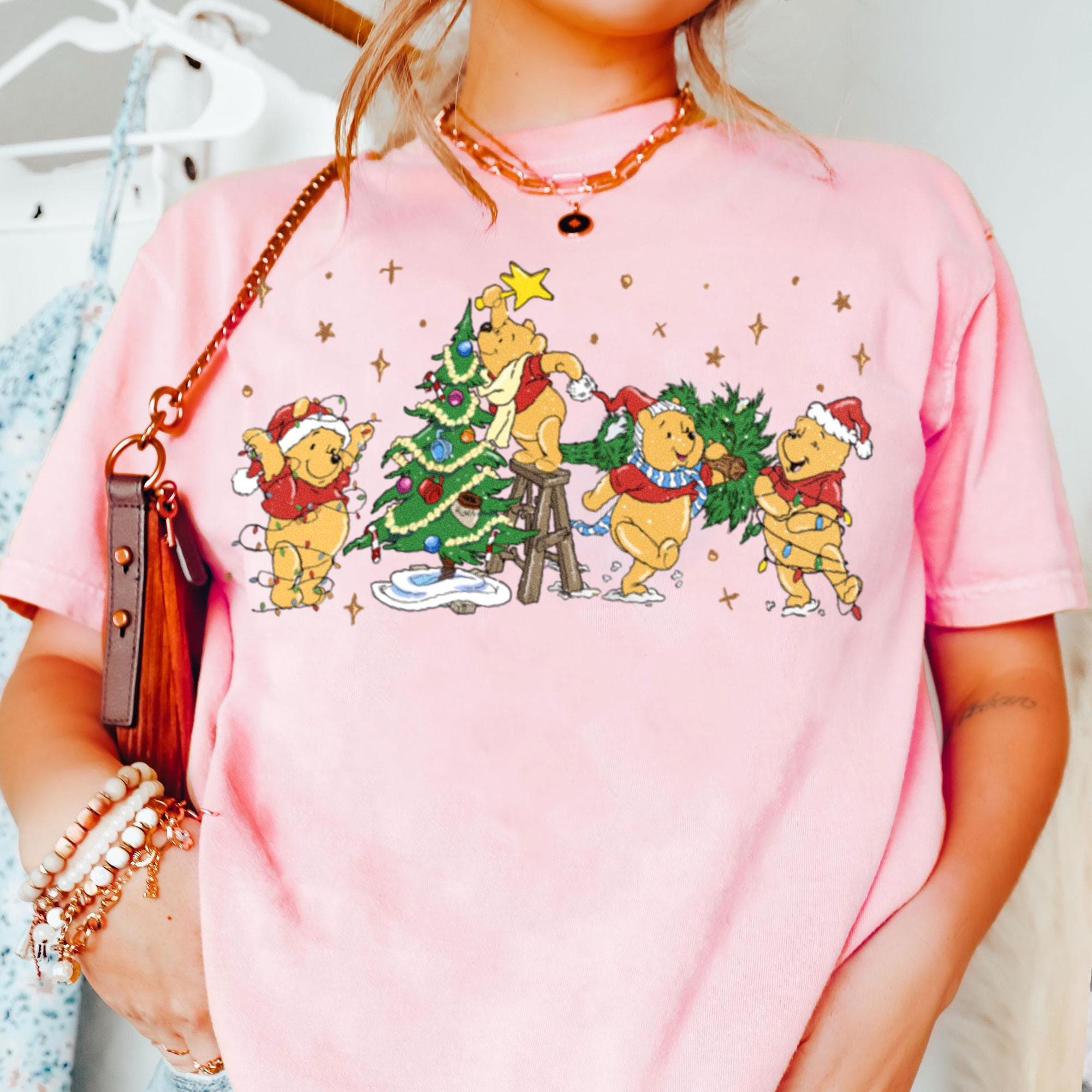 Pooh Roll Xmas Light Tis The Season Xmas Tree Comfort Color Shirt, Very Merry Christmas Party, Disneyland Trip Shirt 2025