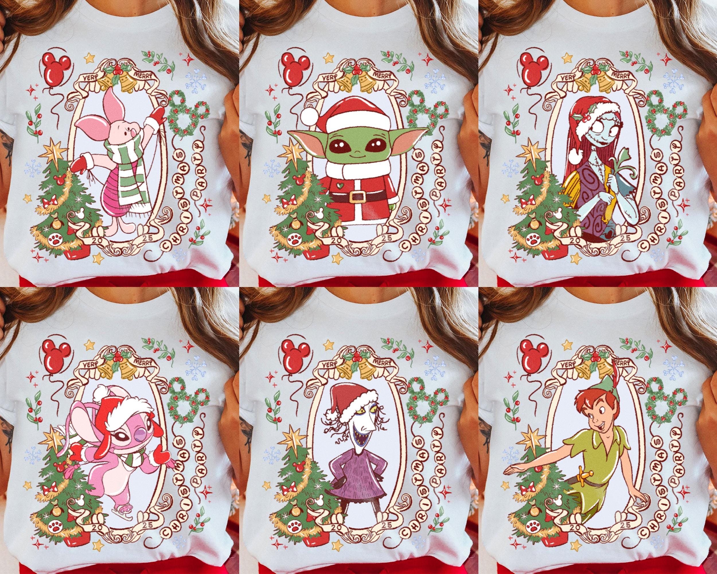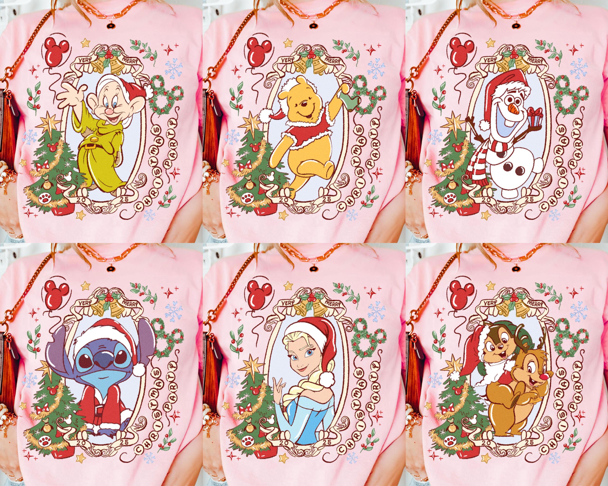 Custom All Disney Characters Santa Christmas Party 2025 Comfort Color Shirt, Very Merry Christmas Party, Disneyland Trip Shirt 2025