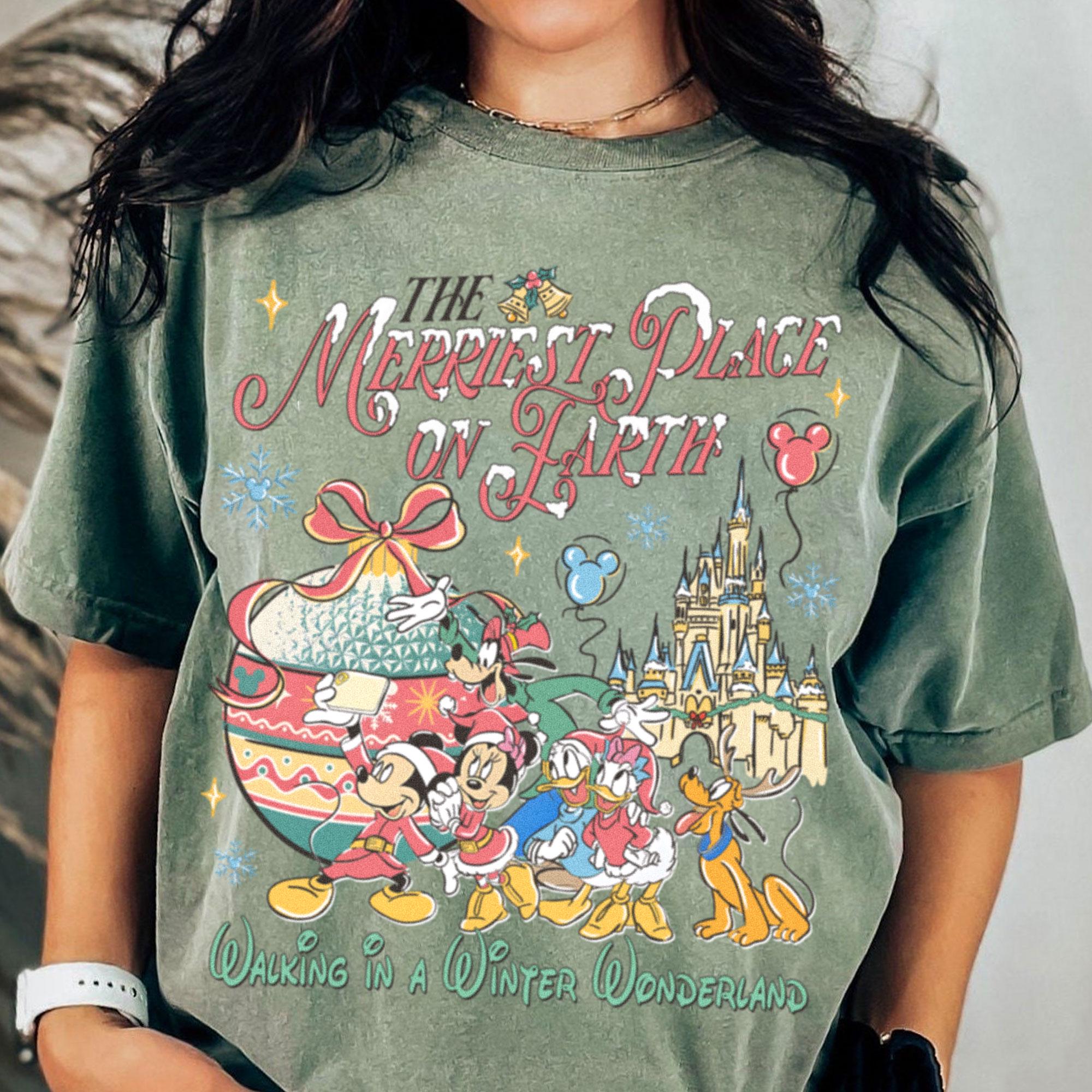 The Merriest Place On Earth Mickey Friend In Epcot Park Comfort Color Shirt, Very Merry Christmas Party, Disneyland Trip Shirt 2025