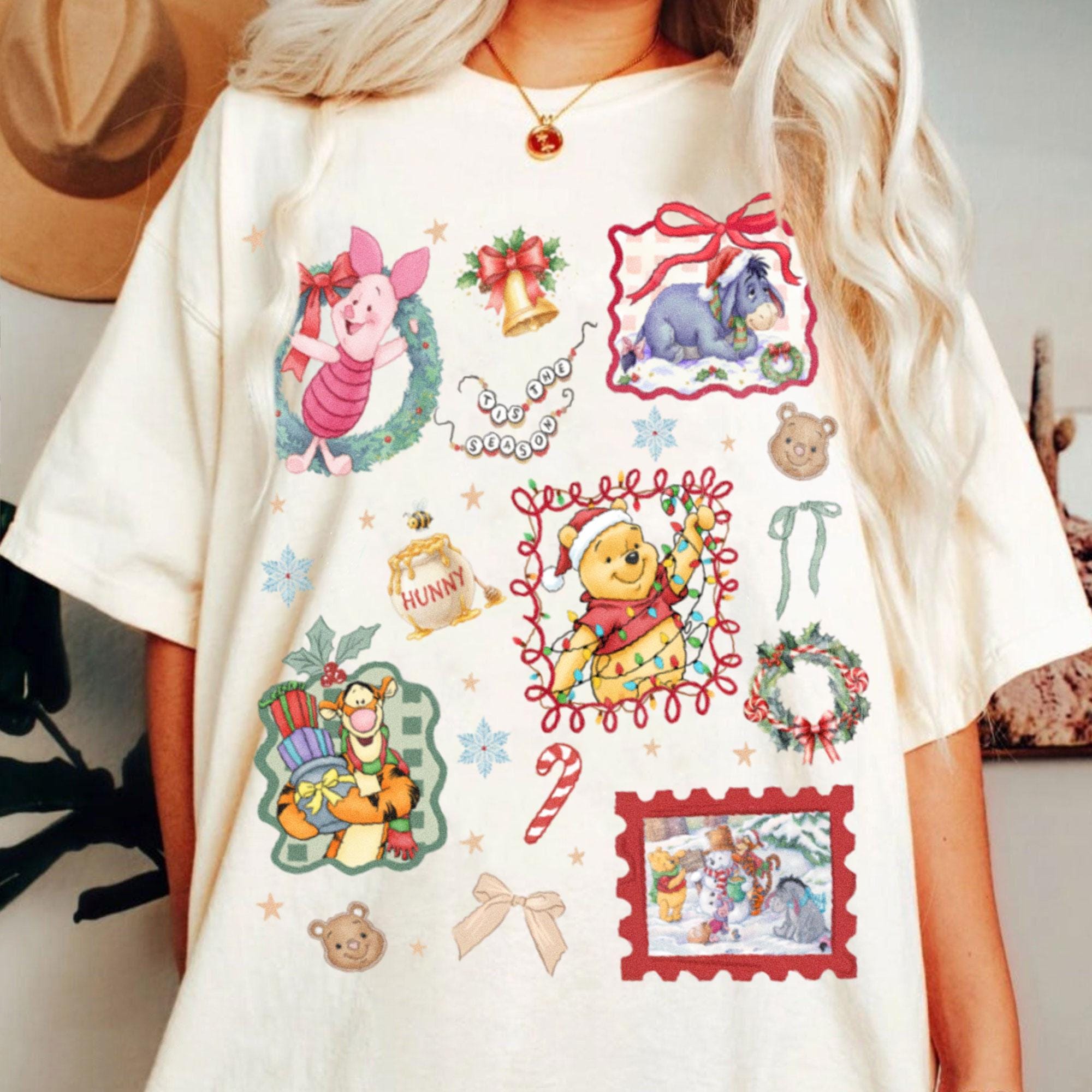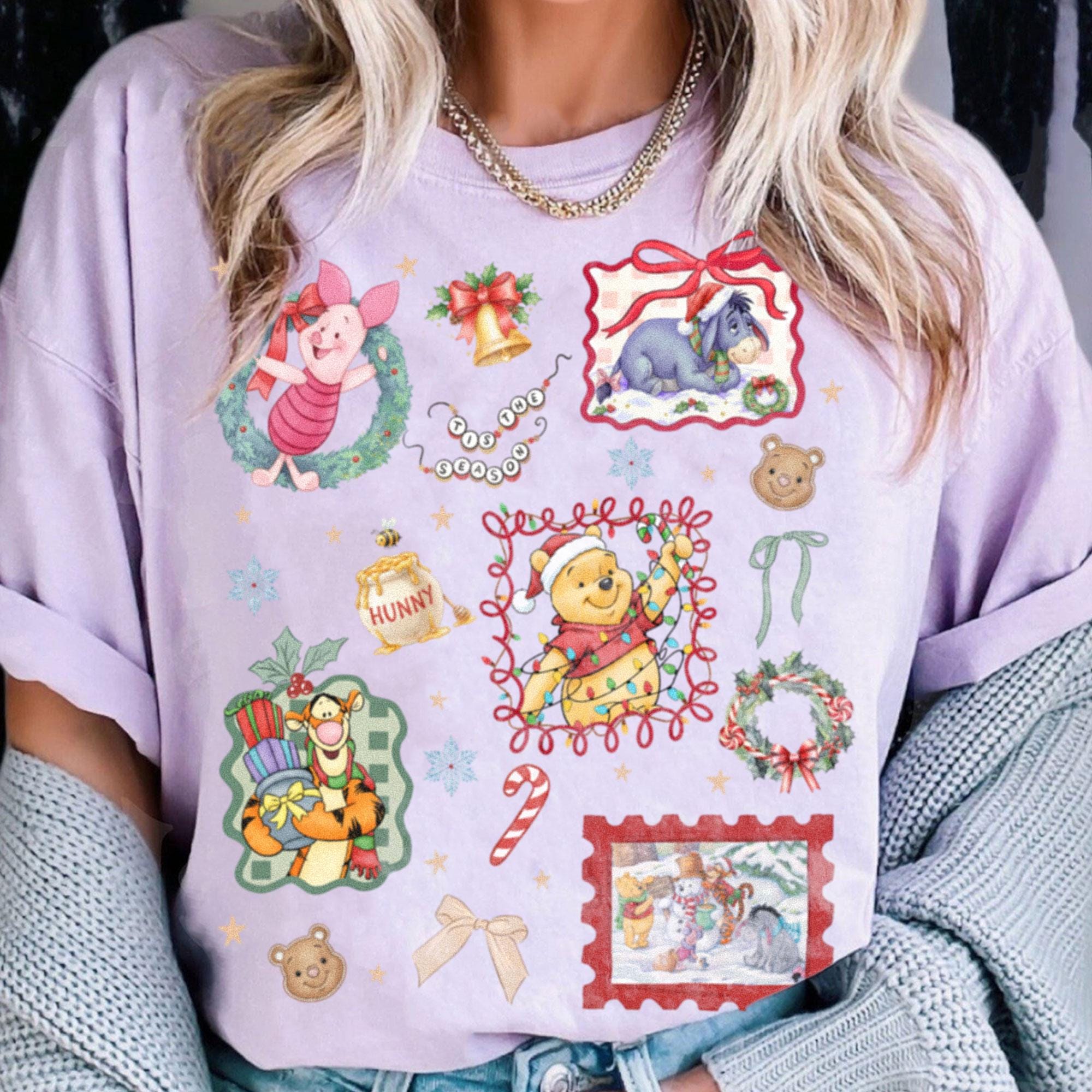 Pooh Piglet Eeyore Tigger Ho Ho Ho Xmas Tis The Season Comfort Color Shirt, Very Merry Christmas Party, Disneyland Trip Shirt 2025