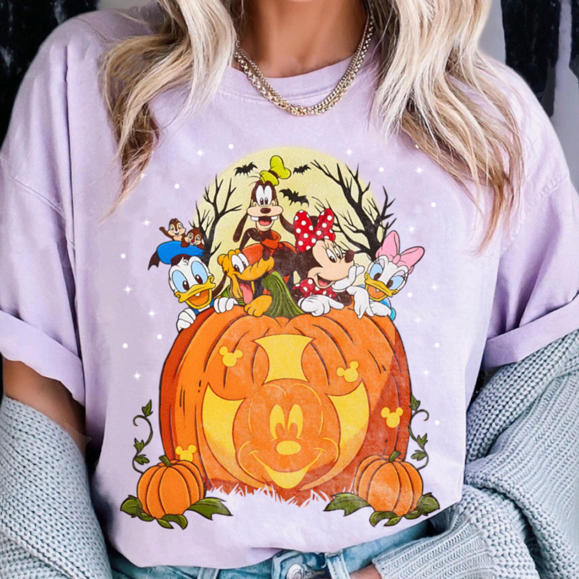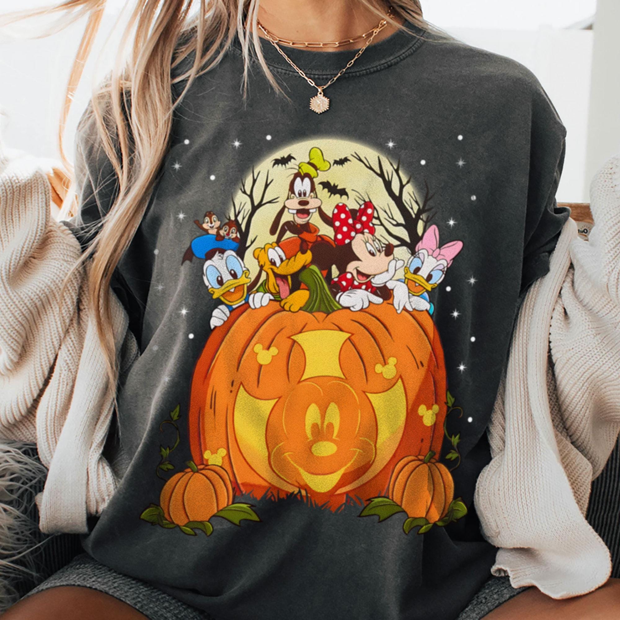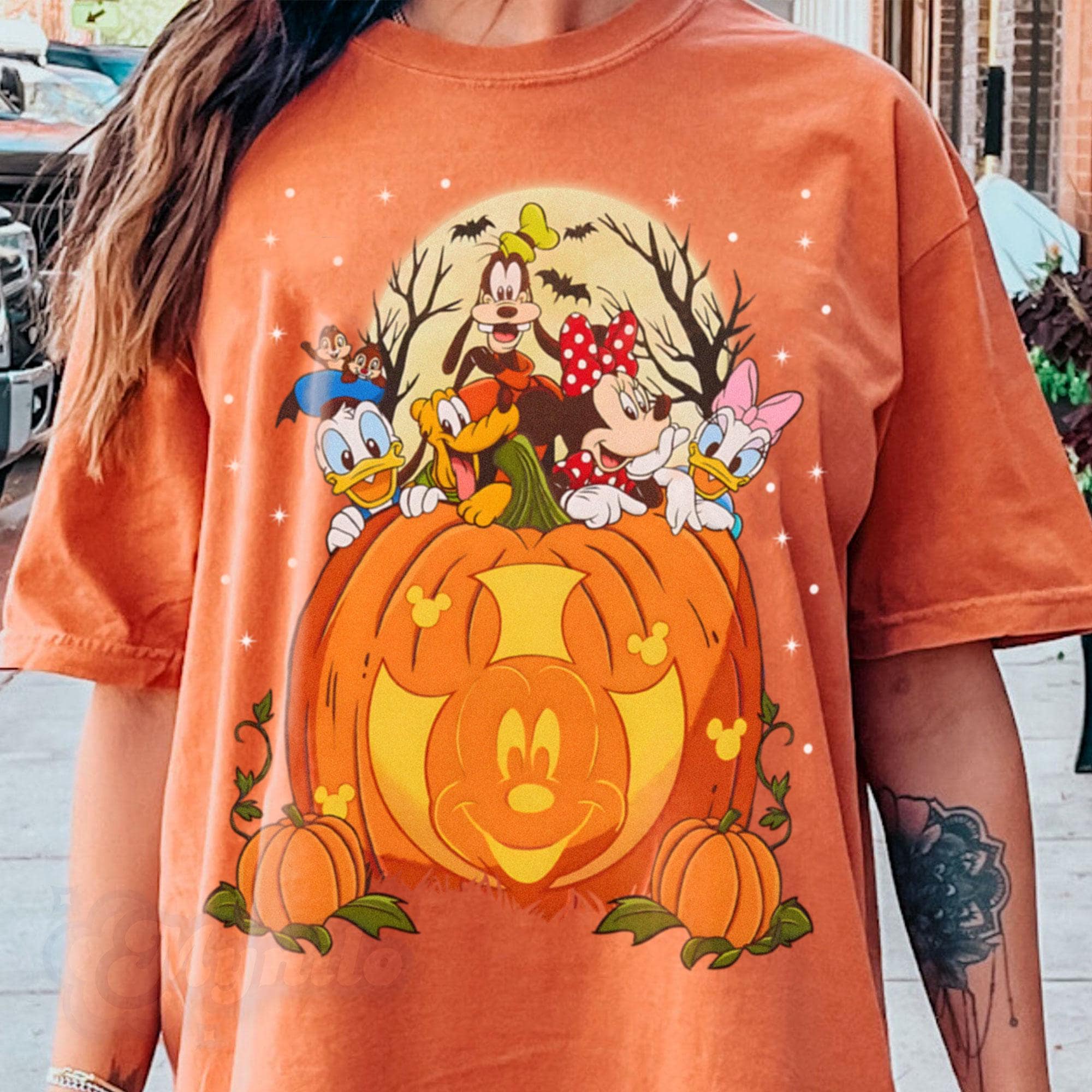 Pluto Donald Goofy Daisy Friend Big Pumpkin Mickey Face Comfort Color T-Shirt, Trending Unisex Tee, Disneyland Vacation Trip Gift 2025