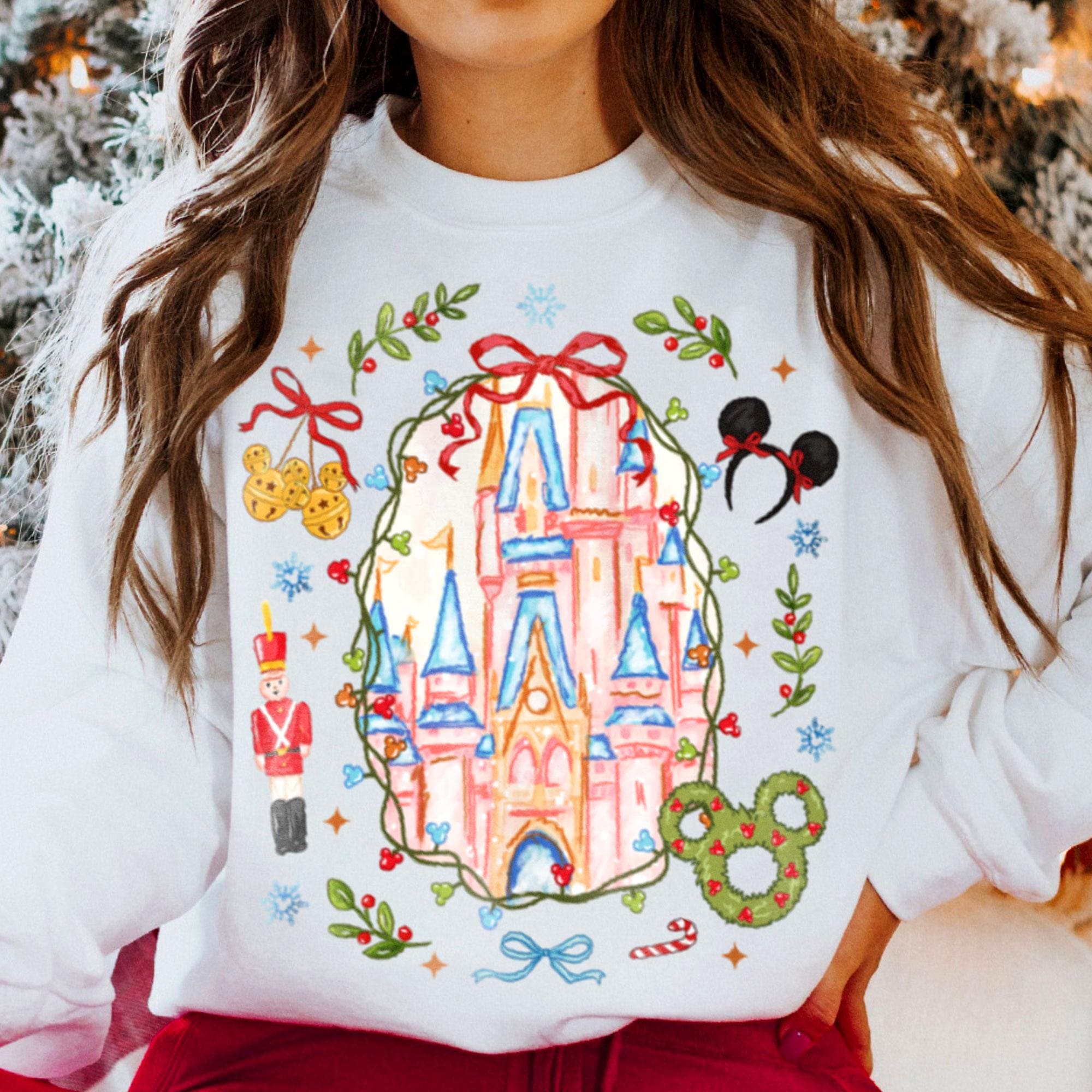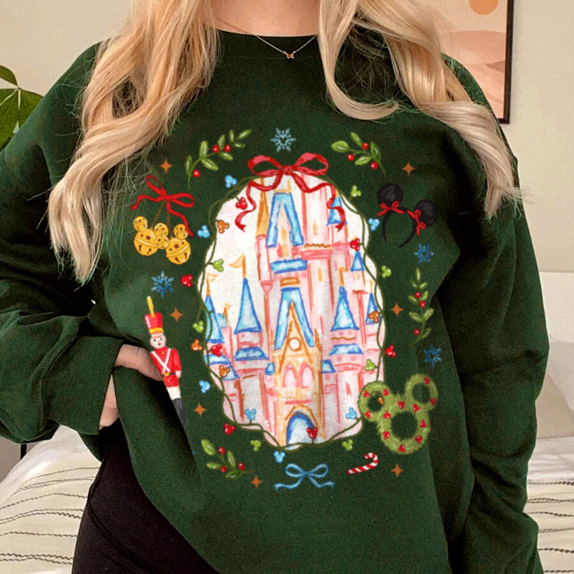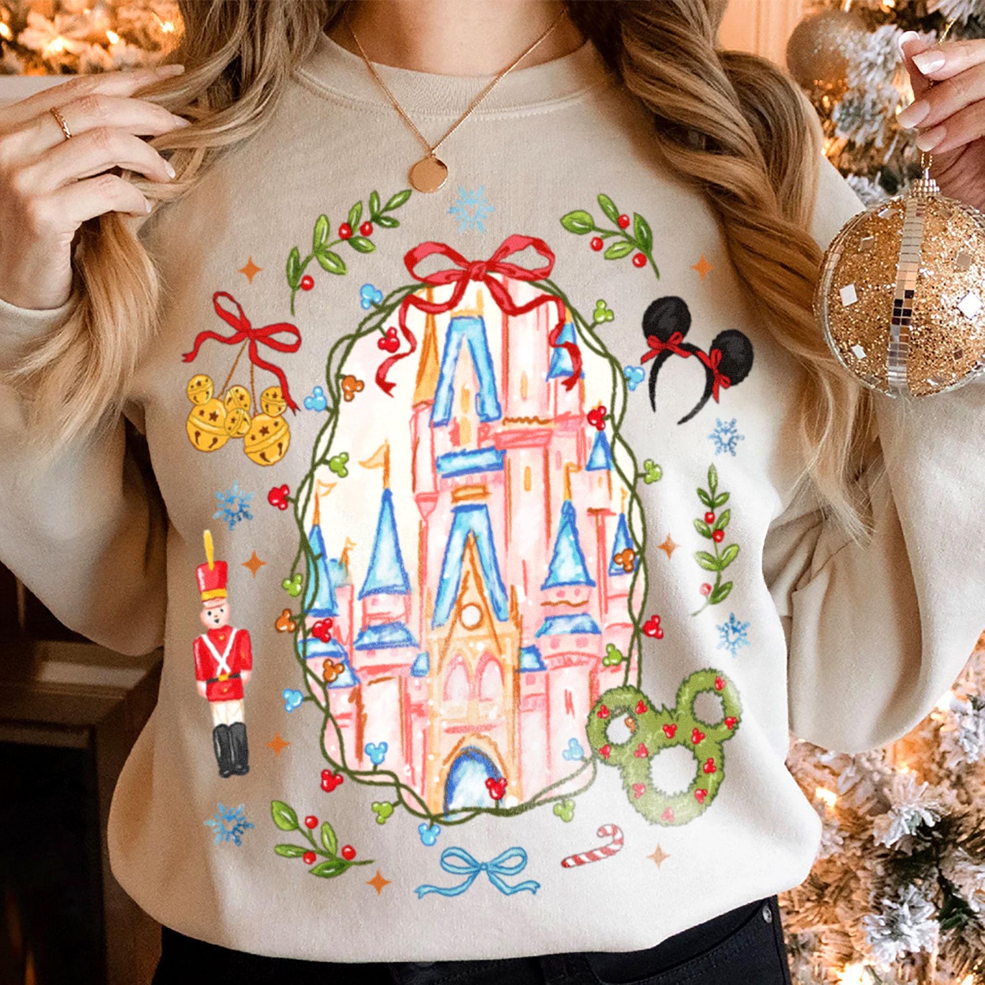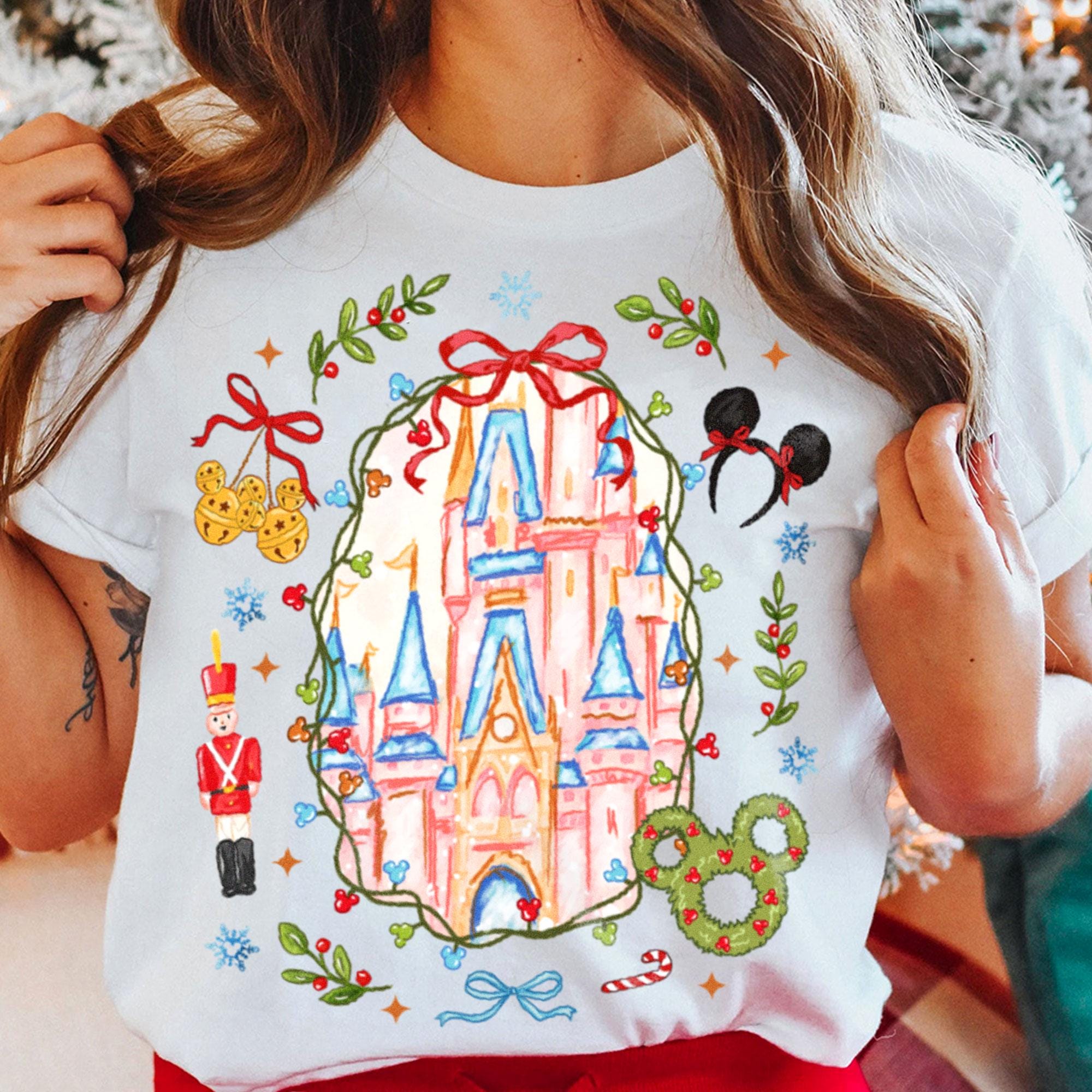 Disney Castle Little Thing Coquette Bow Xmas Comfort Color Shirt, Very Merry Christmas Party, Disneyland Trip Shirt 2025