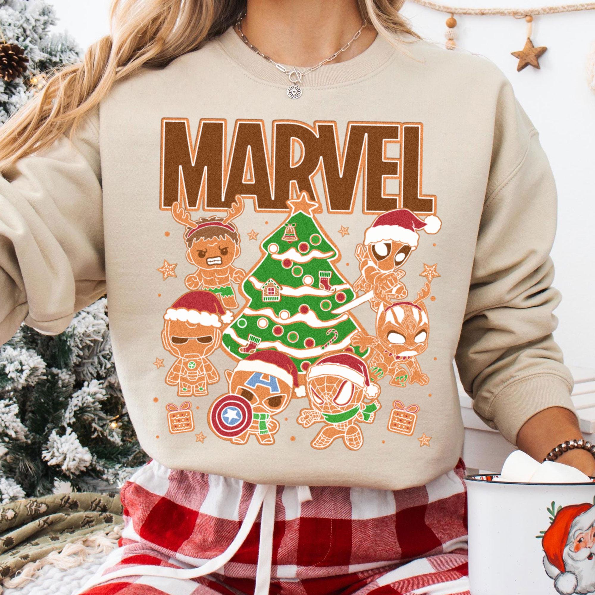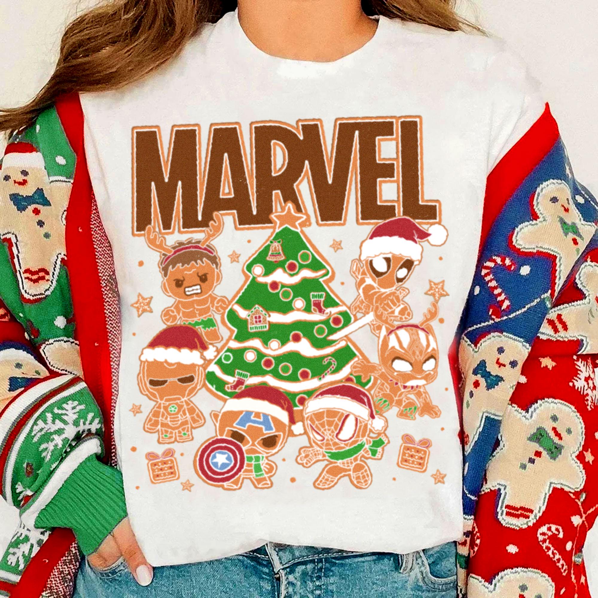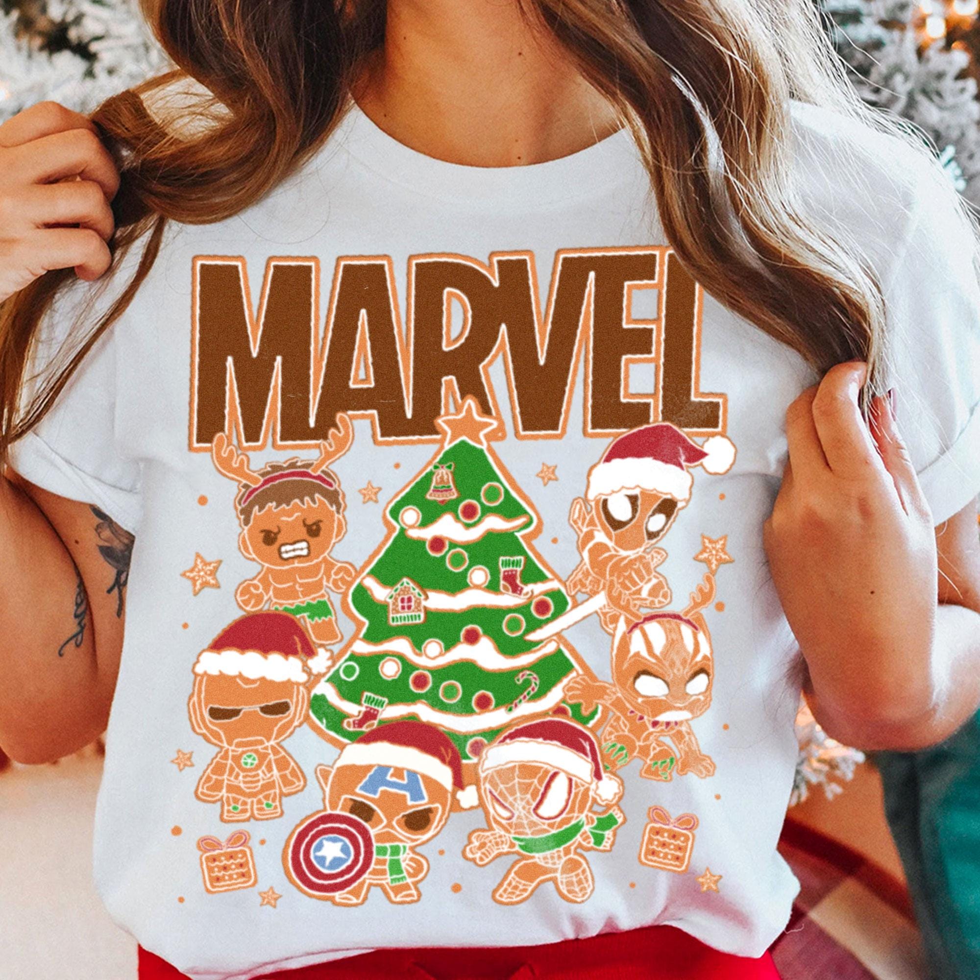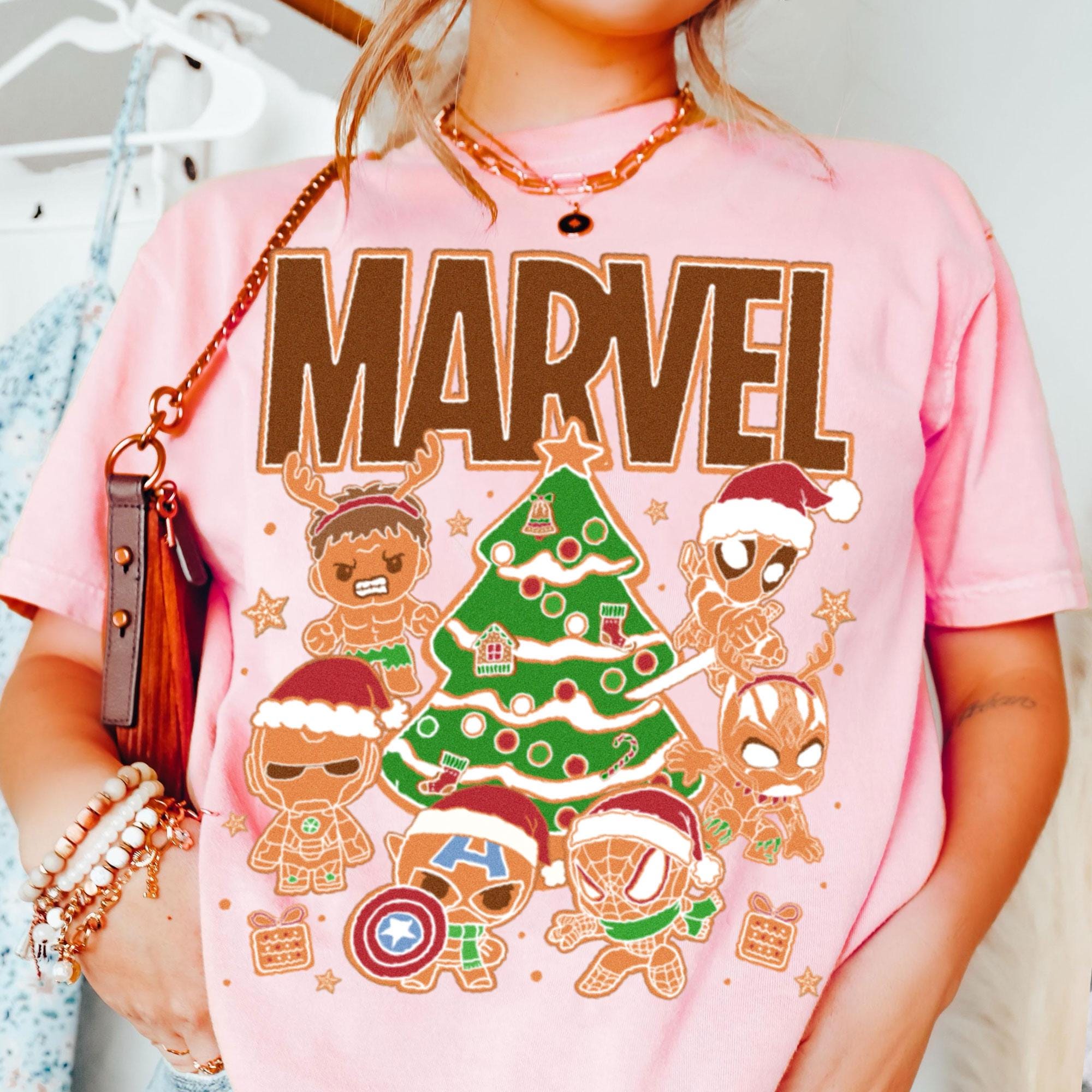 Marvel Friends Gingerbread Comfort Color Shirt, Very Merry Christmas Party, Disneyland Trip Shirt 2025