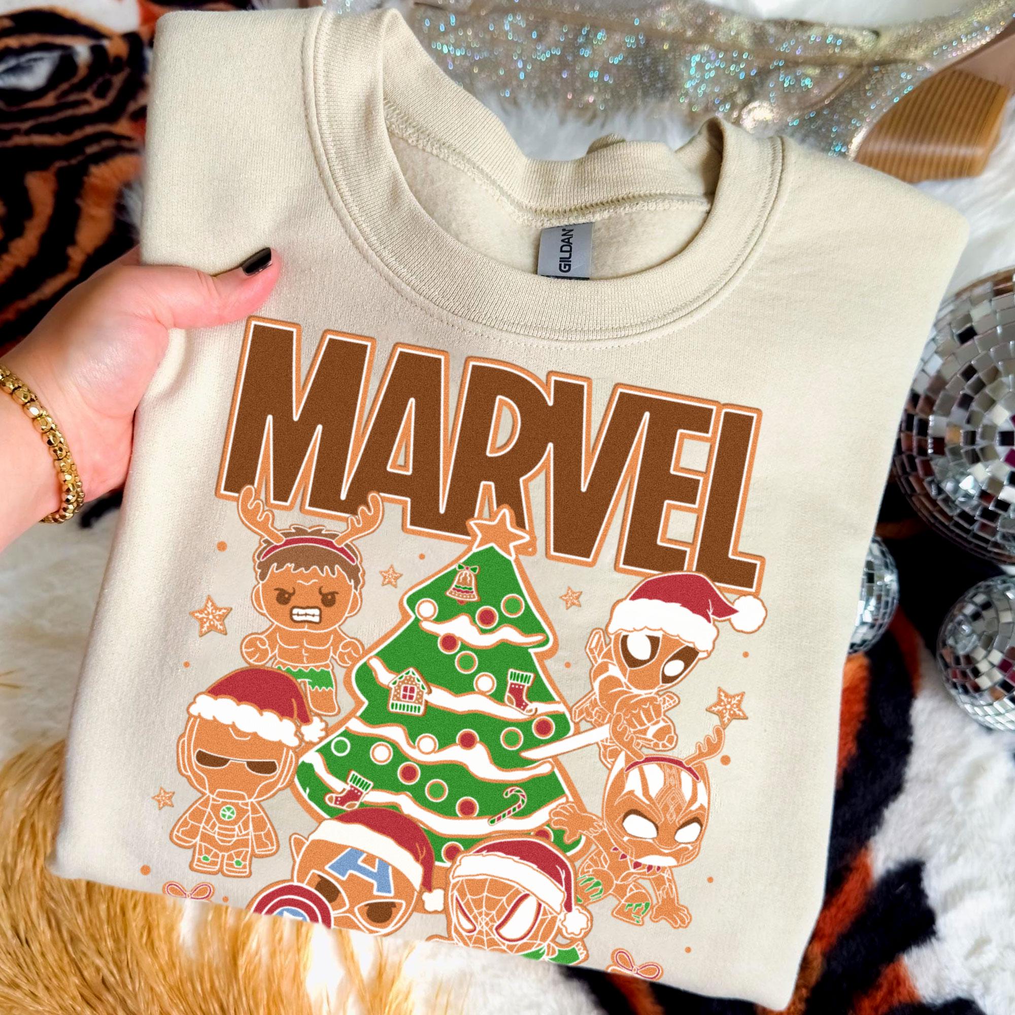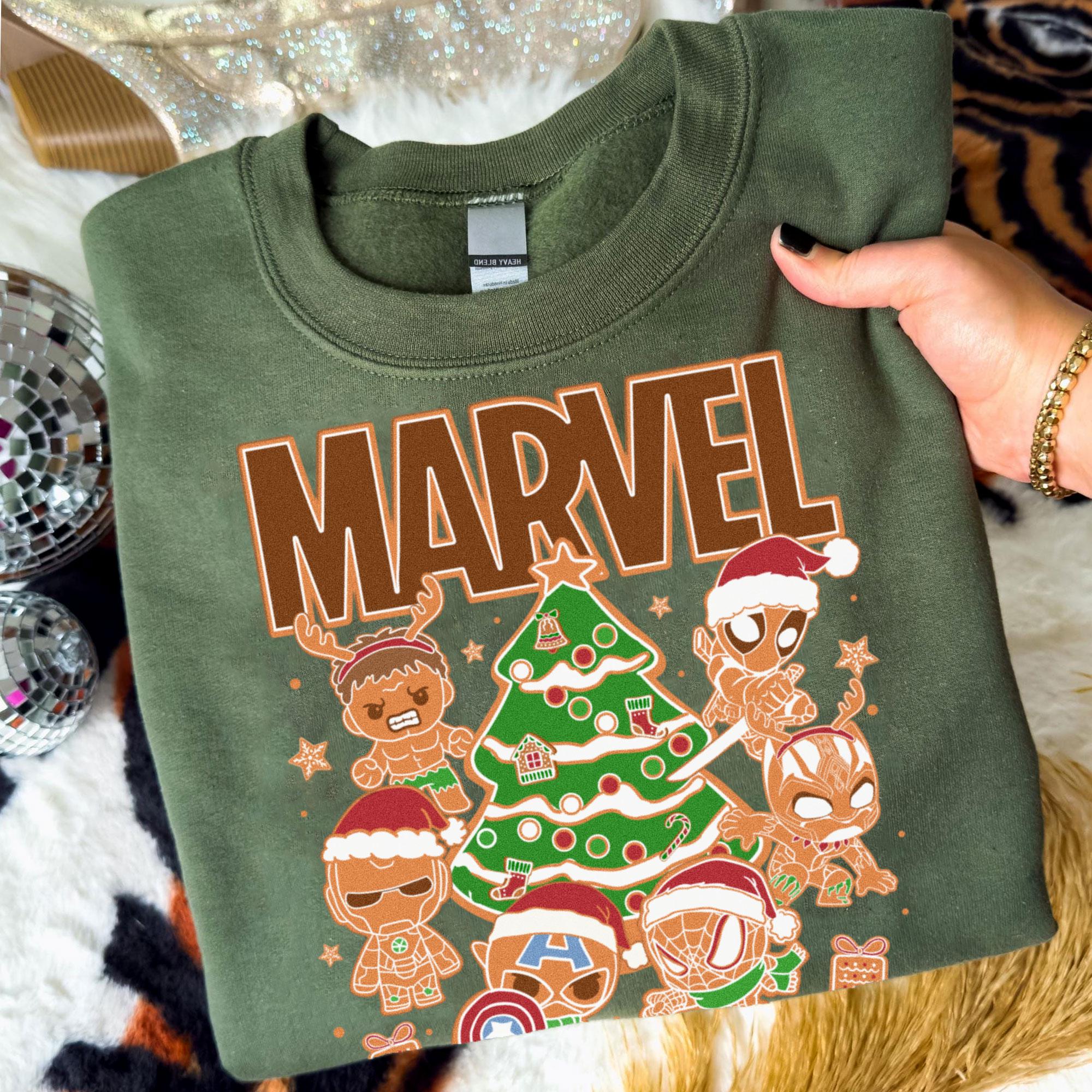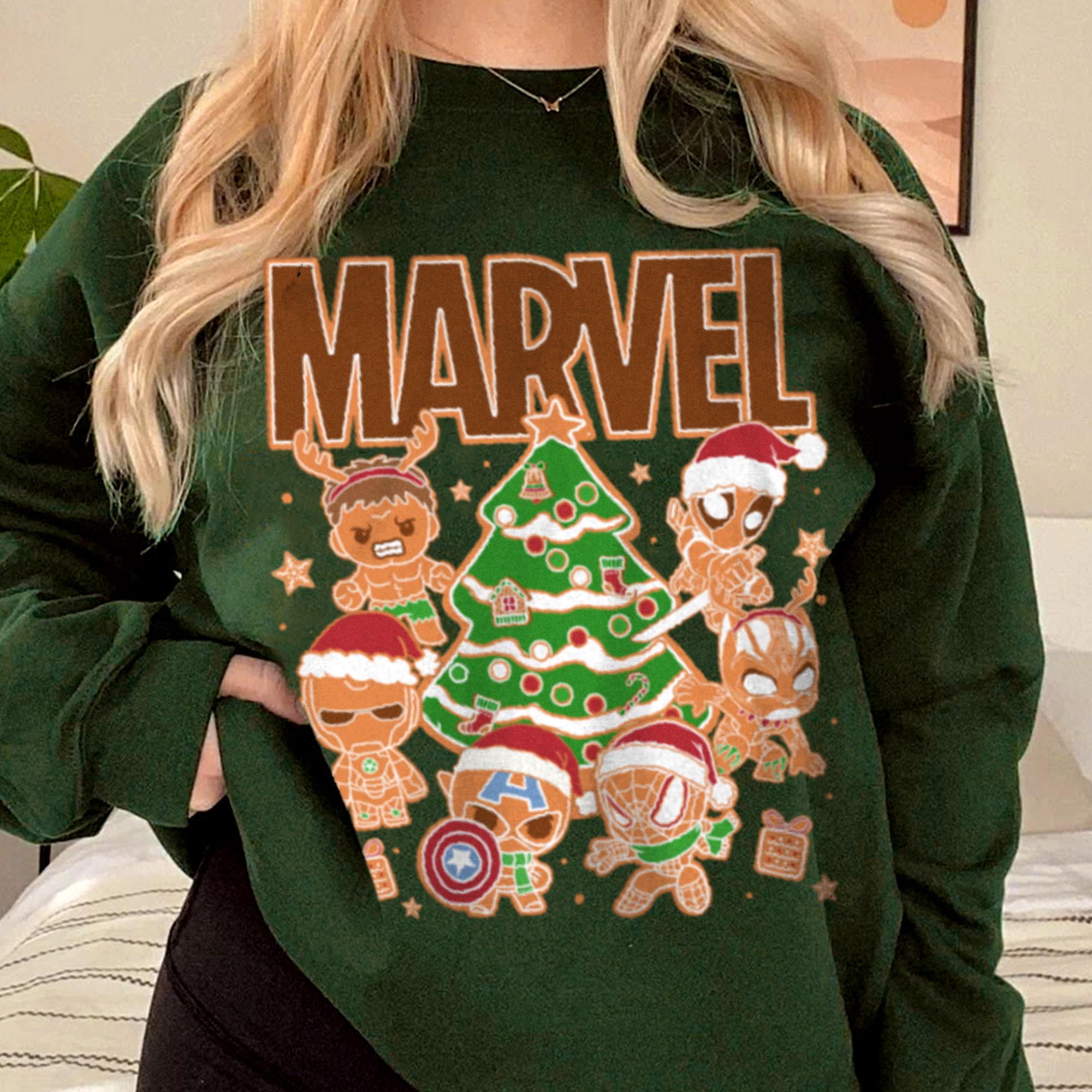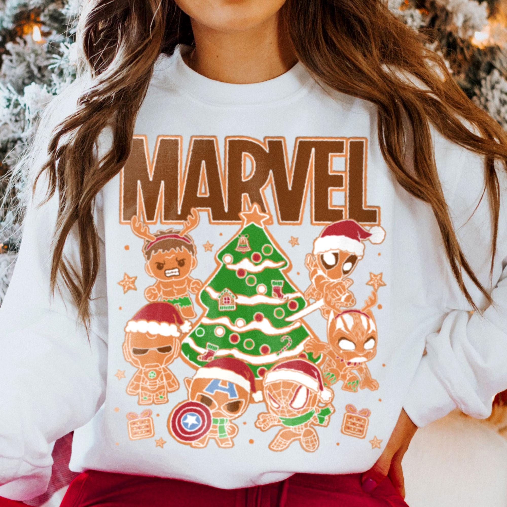 Marvel Friends Gingerbread Comfort Color Shirt, Very Merry Christmas Party, Disneyland Trip Shirt 2025