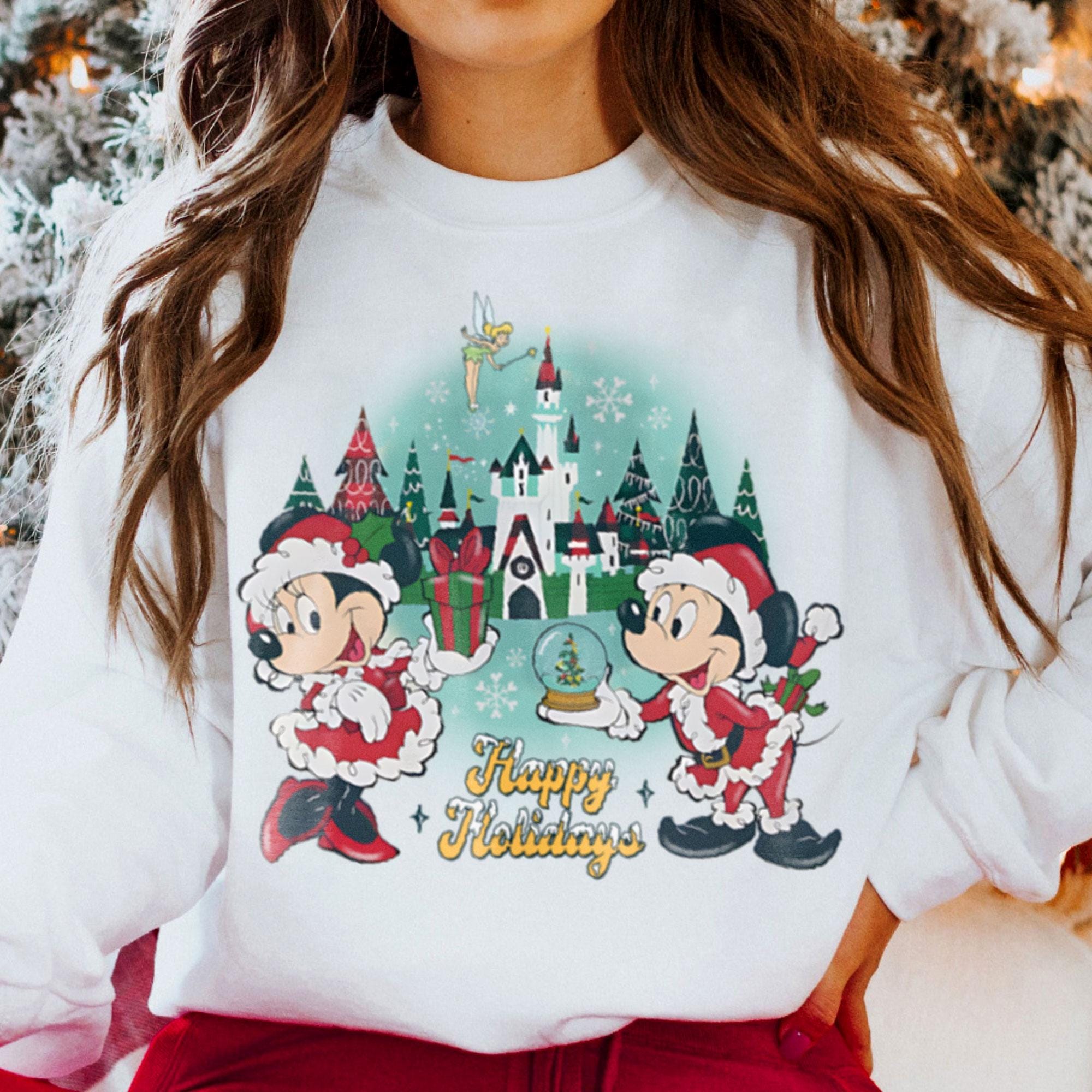 Mickey Minnie Happy Holidays Disney Castle Comfort Color Shirt, Very Merry Christmas Party, Disneyland Trip Shirt 2025
