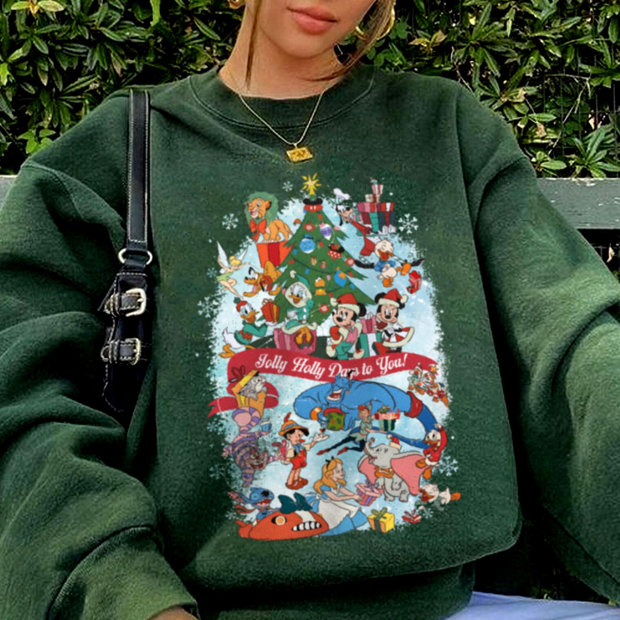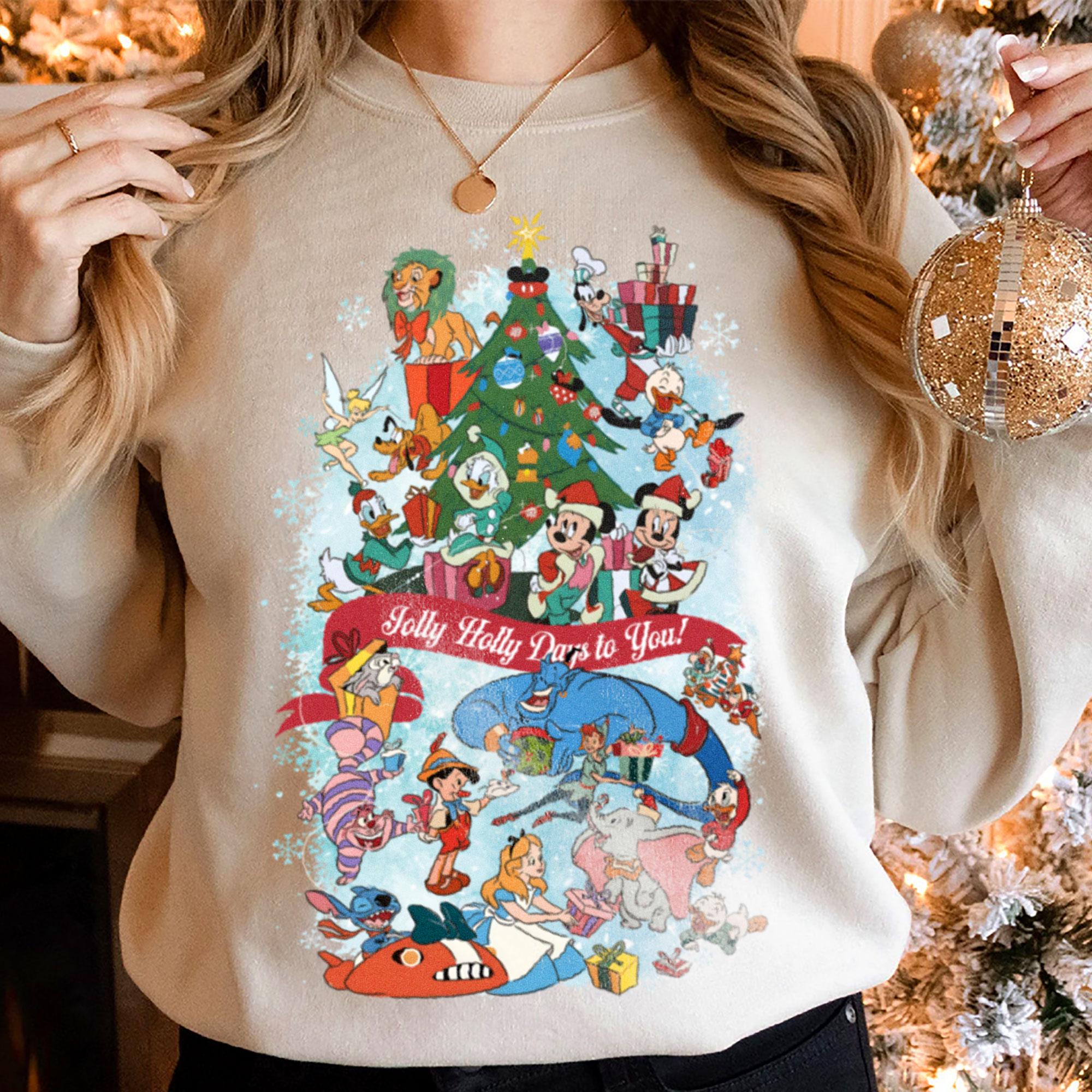 Jolly Holly Days To You All Disney Character Xmas Comfort Color Shirt, Very Merry Christmas Party, Disneyland Trip Shirt 2025