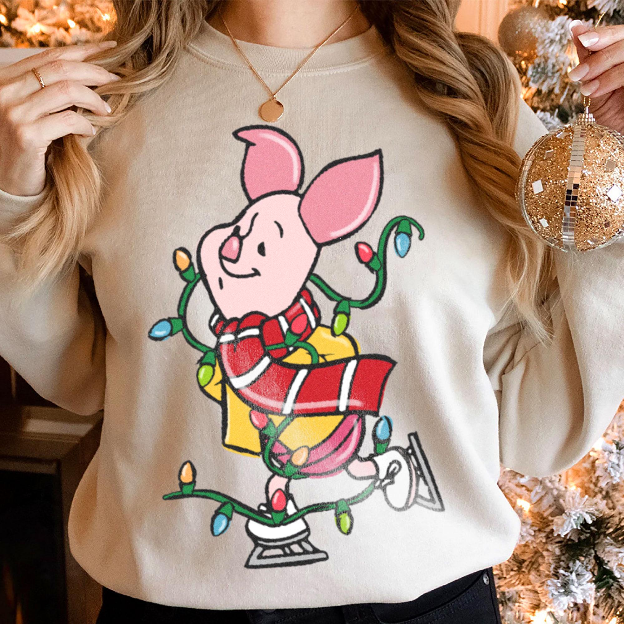 Piglet Roll Xmas Light Comfort Color Shirt, Very Merry Christmas Party, Disneyland Trip Shirt 2025