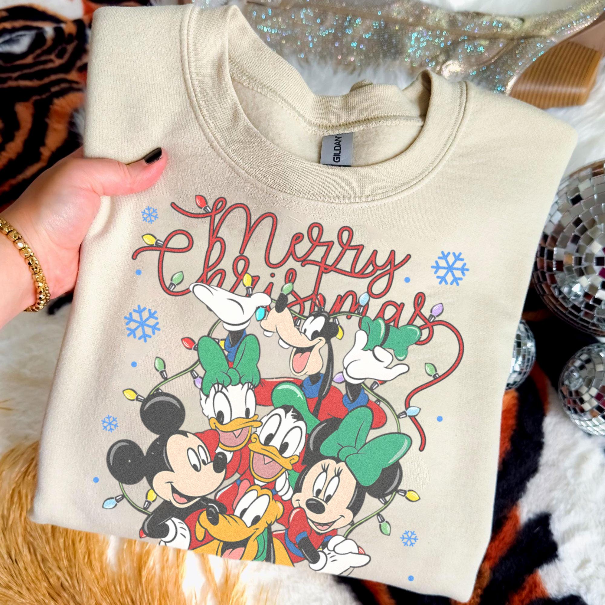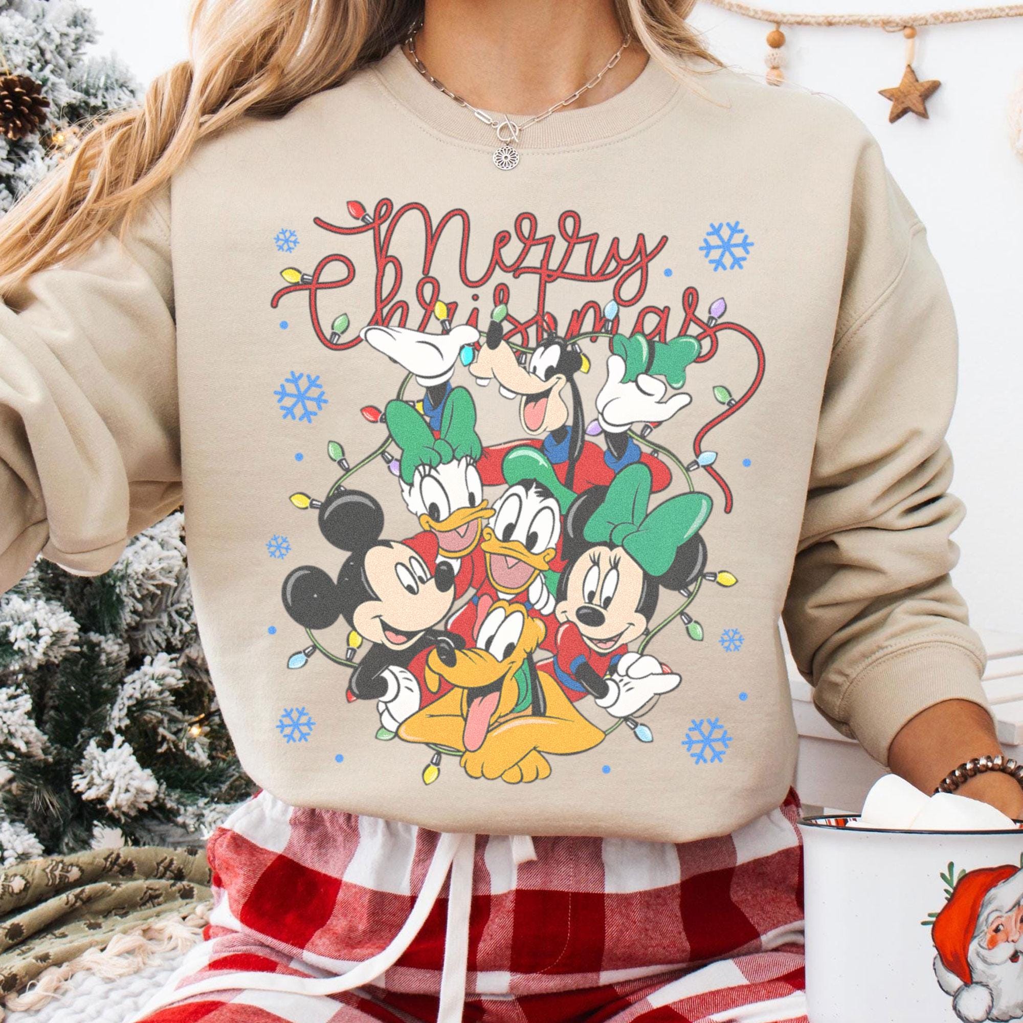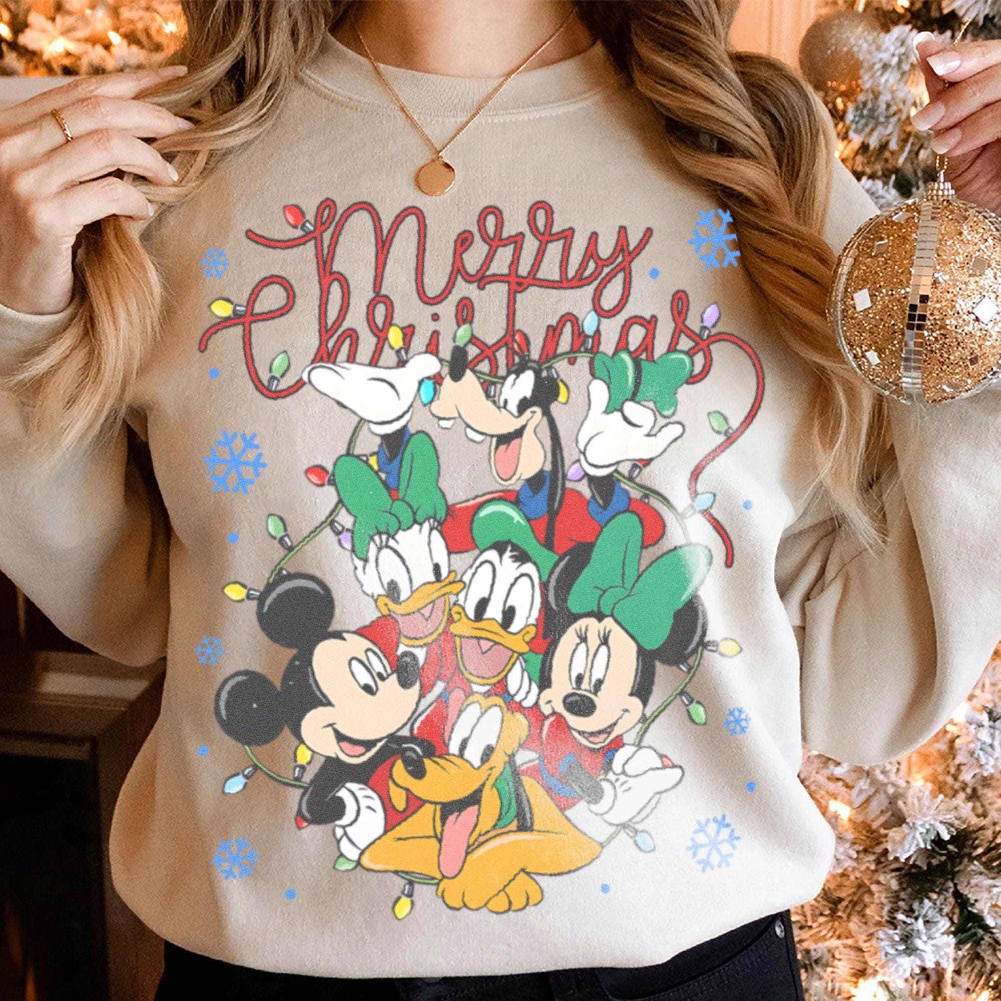 Merry Xmas Donald Daisy Pluto Goofy Xmas Light Comfort Color Shirt, Very Merry Christmas Party, Disneyland Trip Shirt 2025