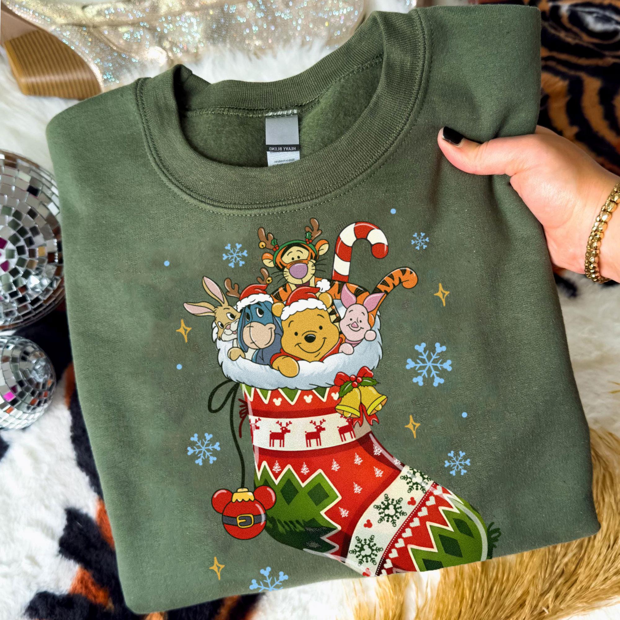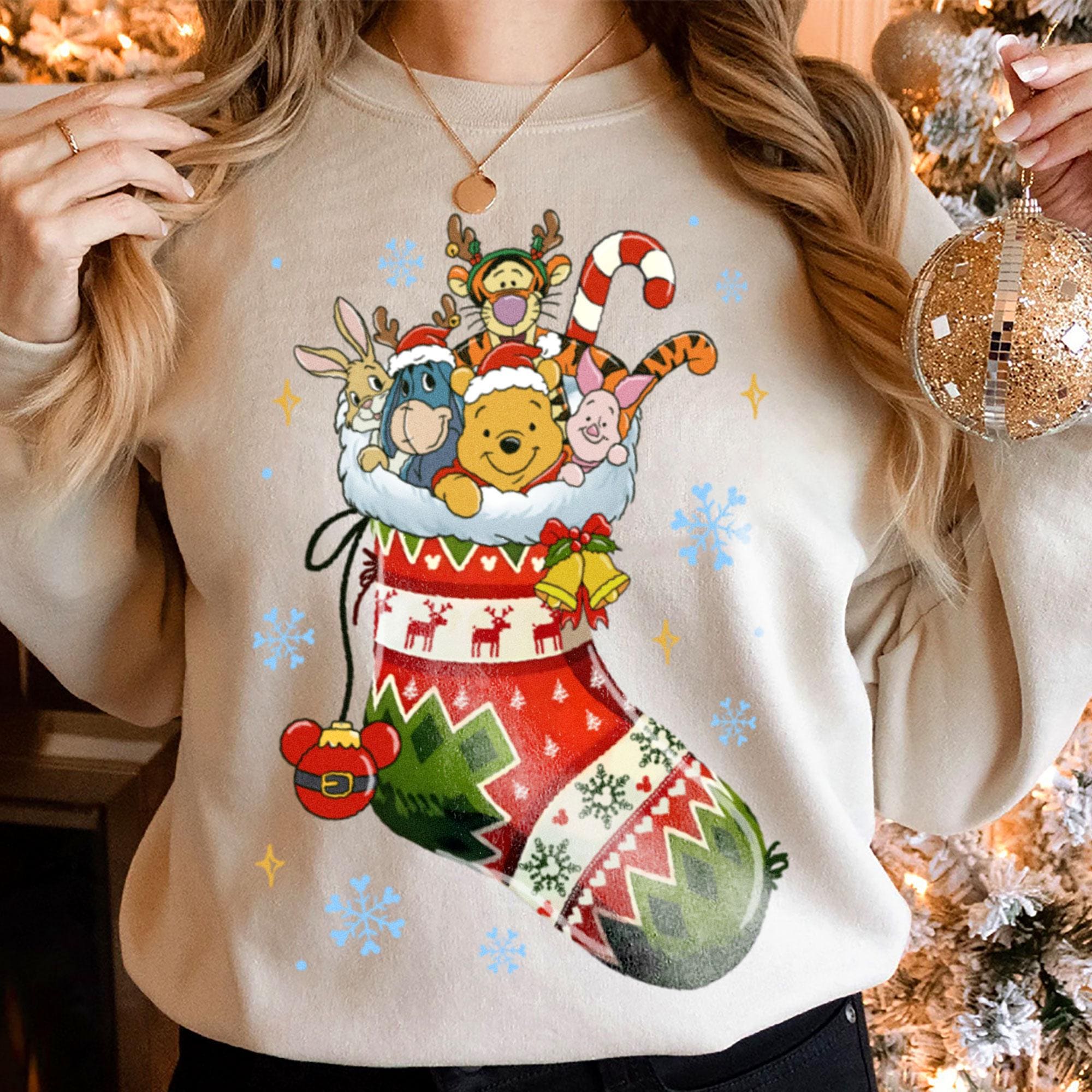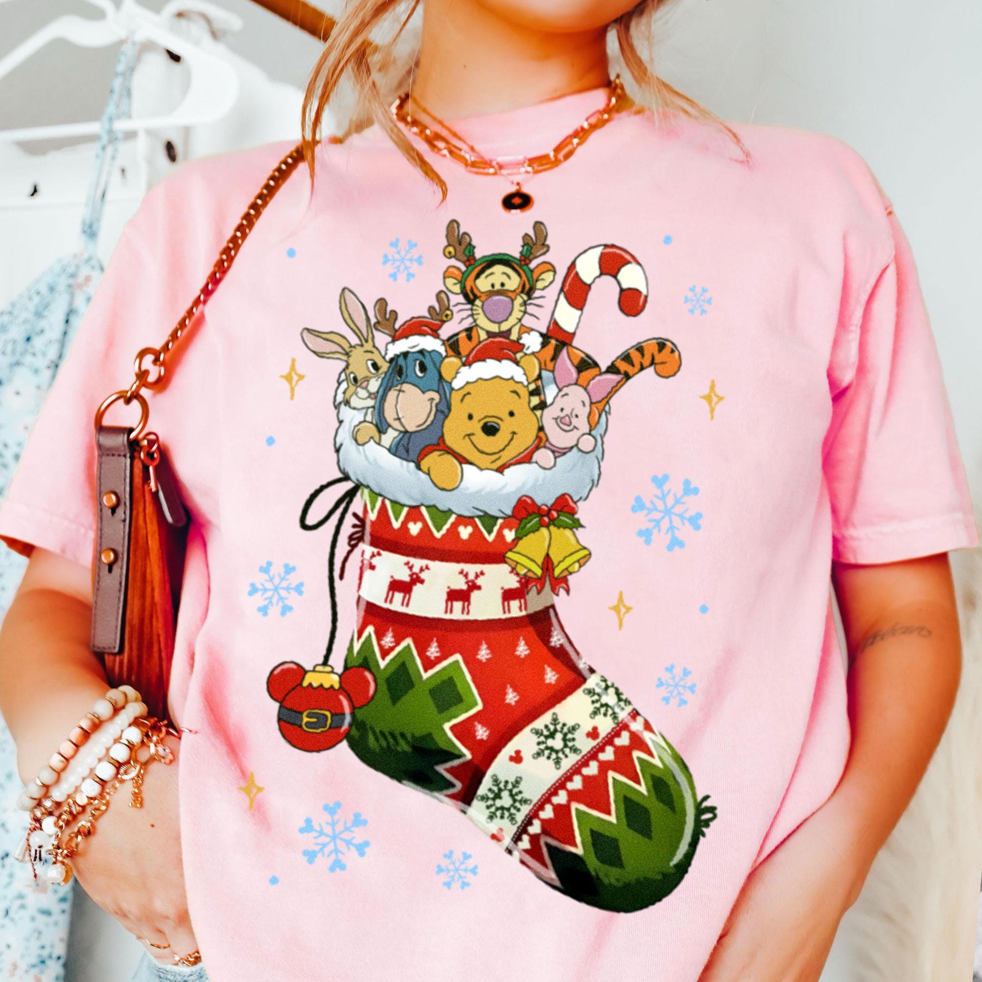 Pooh Piglet Tigger Eeyore Friends Cute Xmas Sock Comfort Color Shirt, Very Merry Christmas Party, Disneyland Trip Shirt 2025