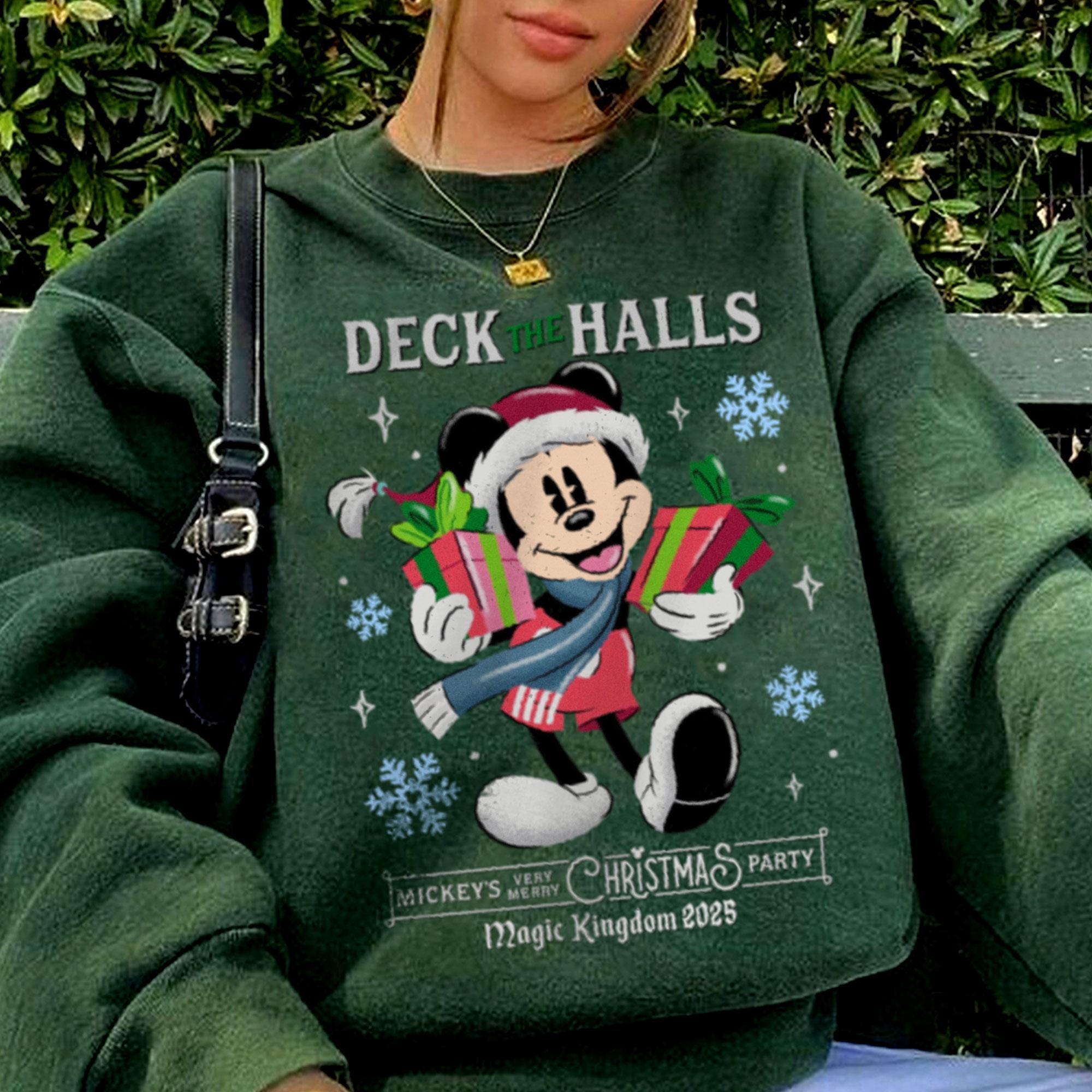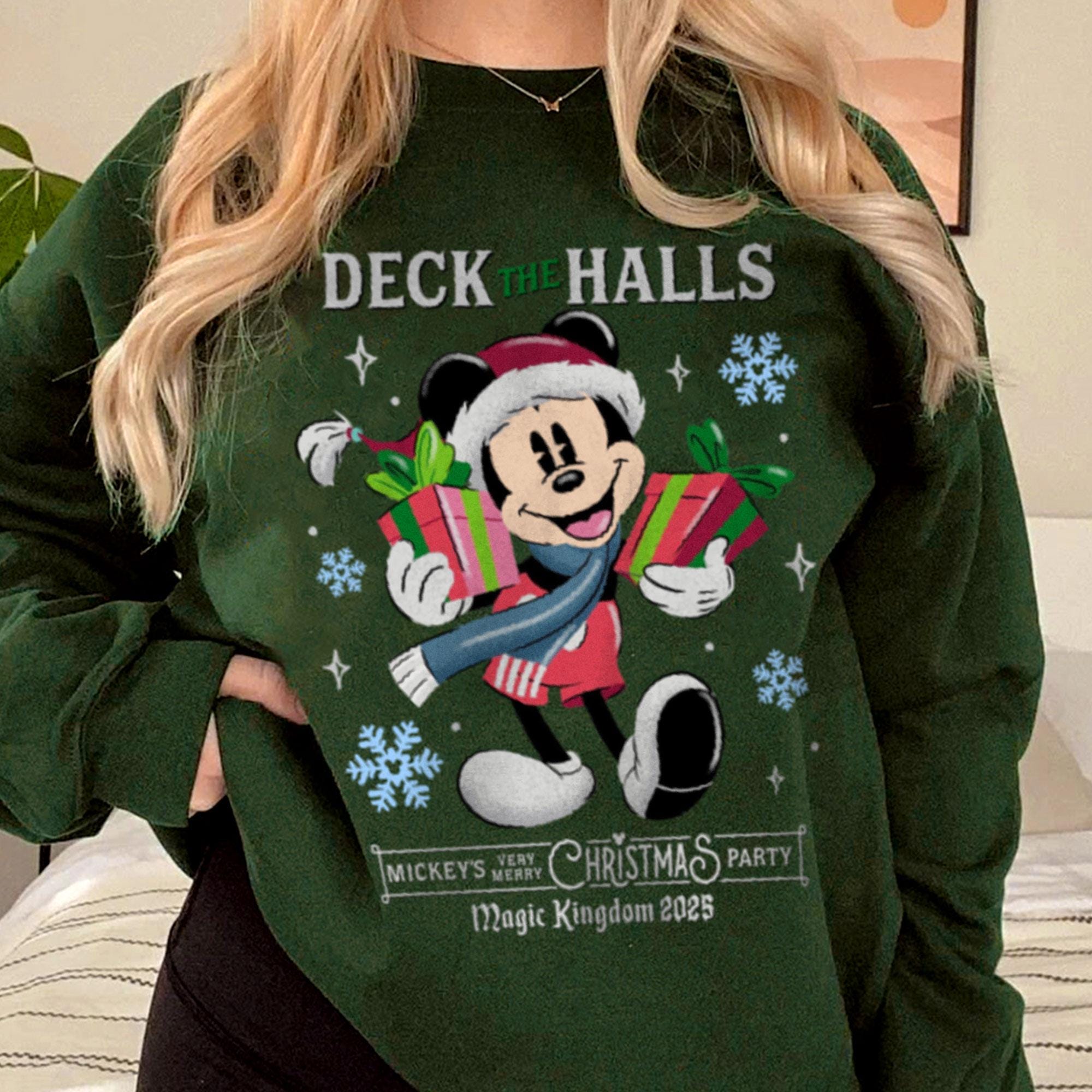 Mickey Santa Hat Magic Kingdom Deck The Halls Comfort Color Shirt, Very Merry Christmas Party, Disneyland Trip Shirt 2025