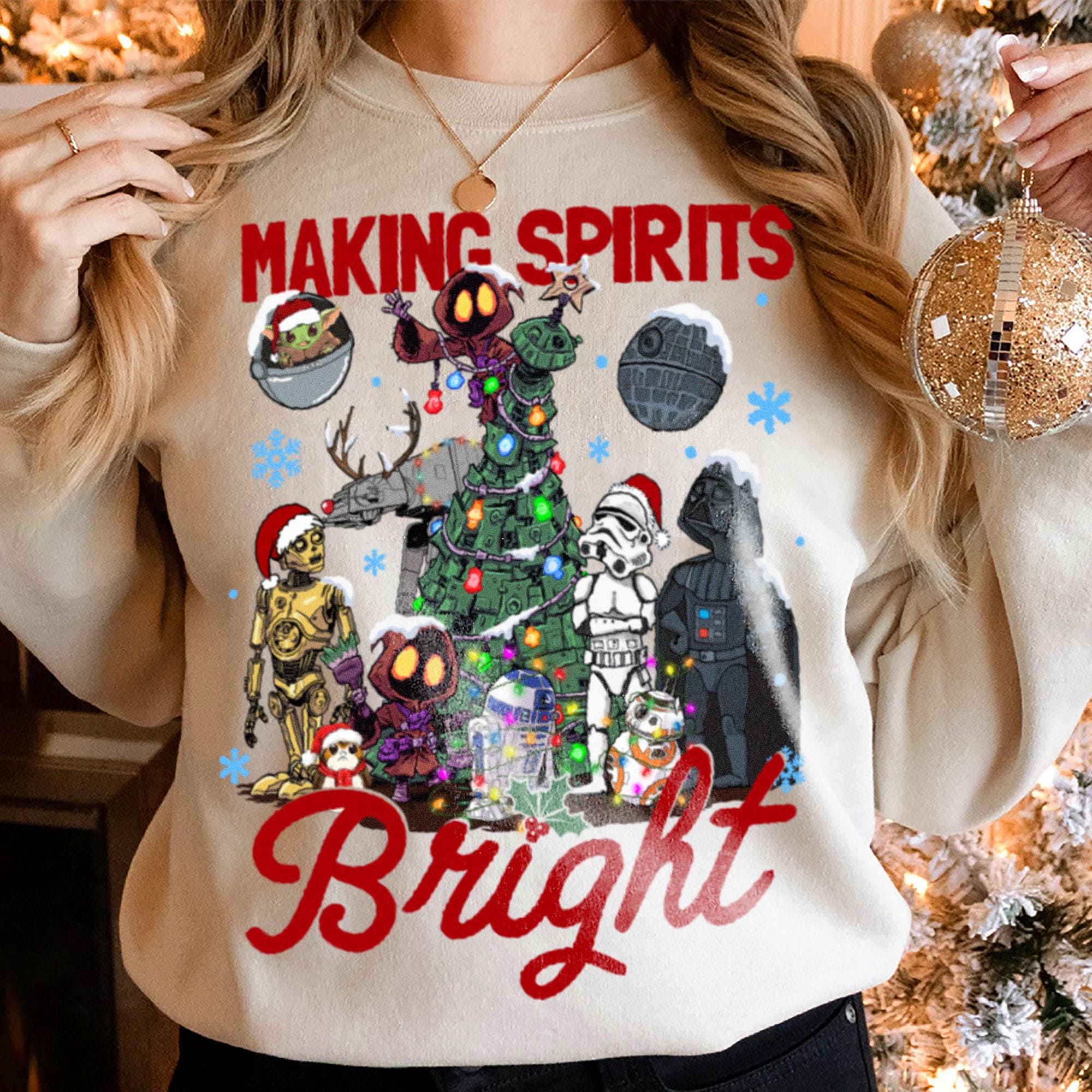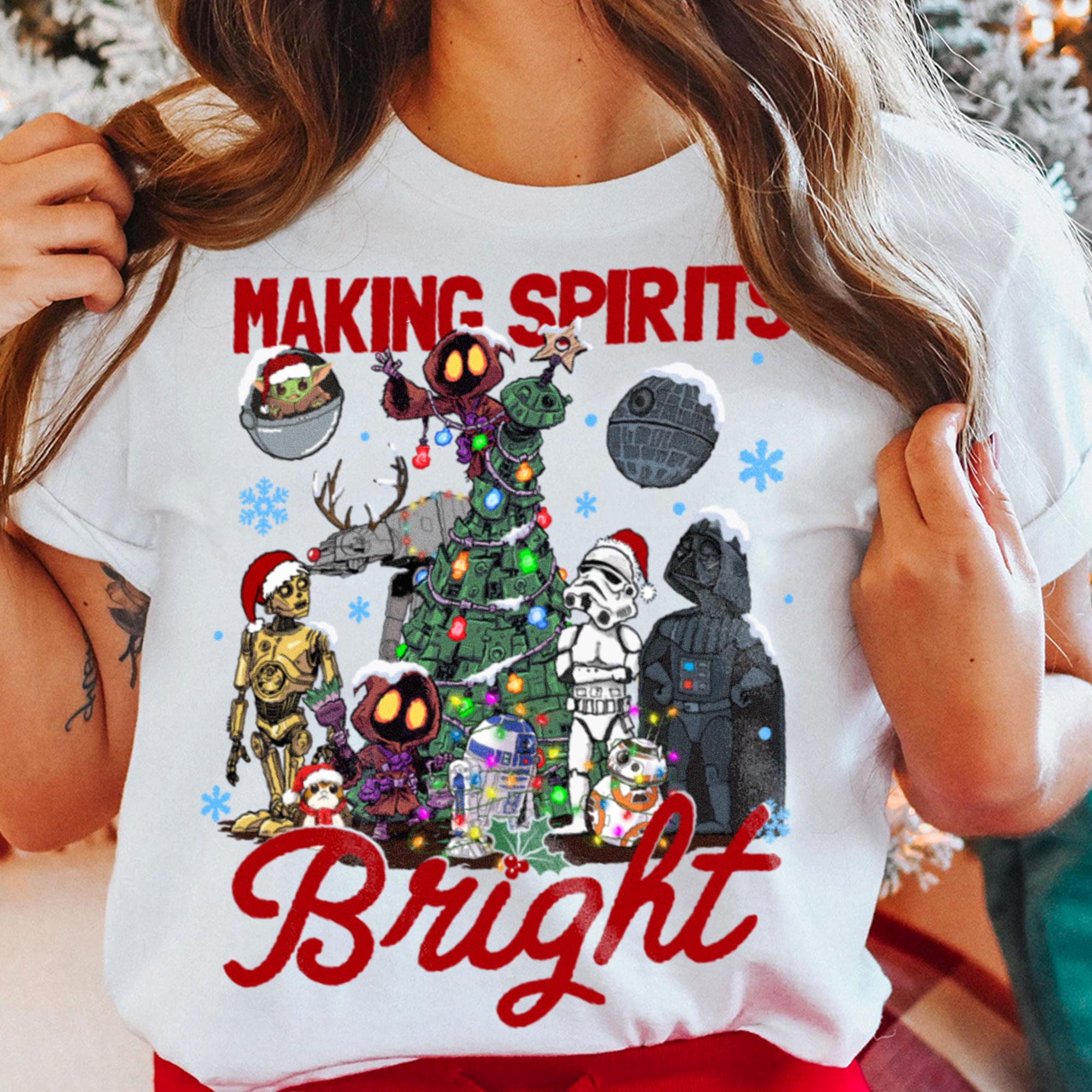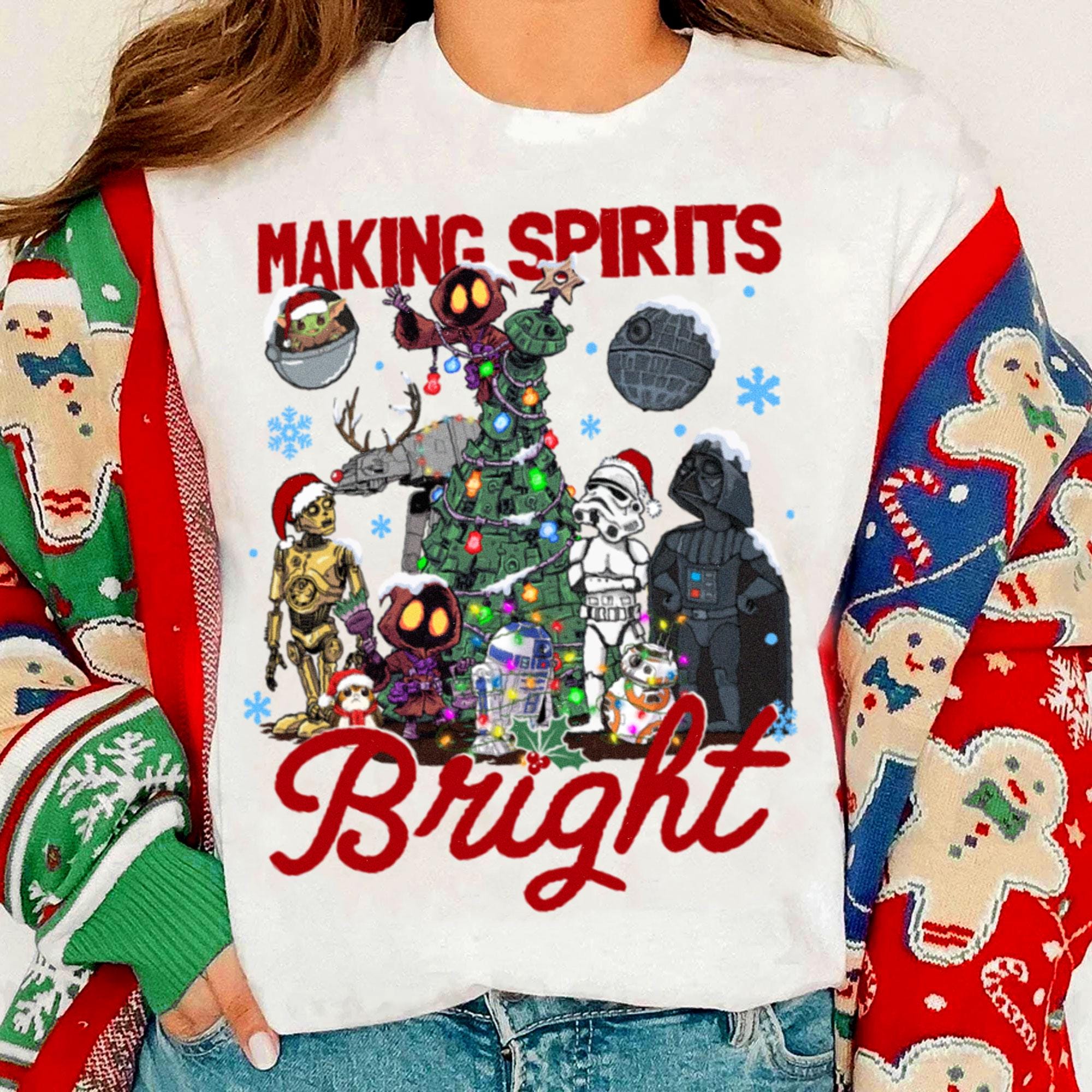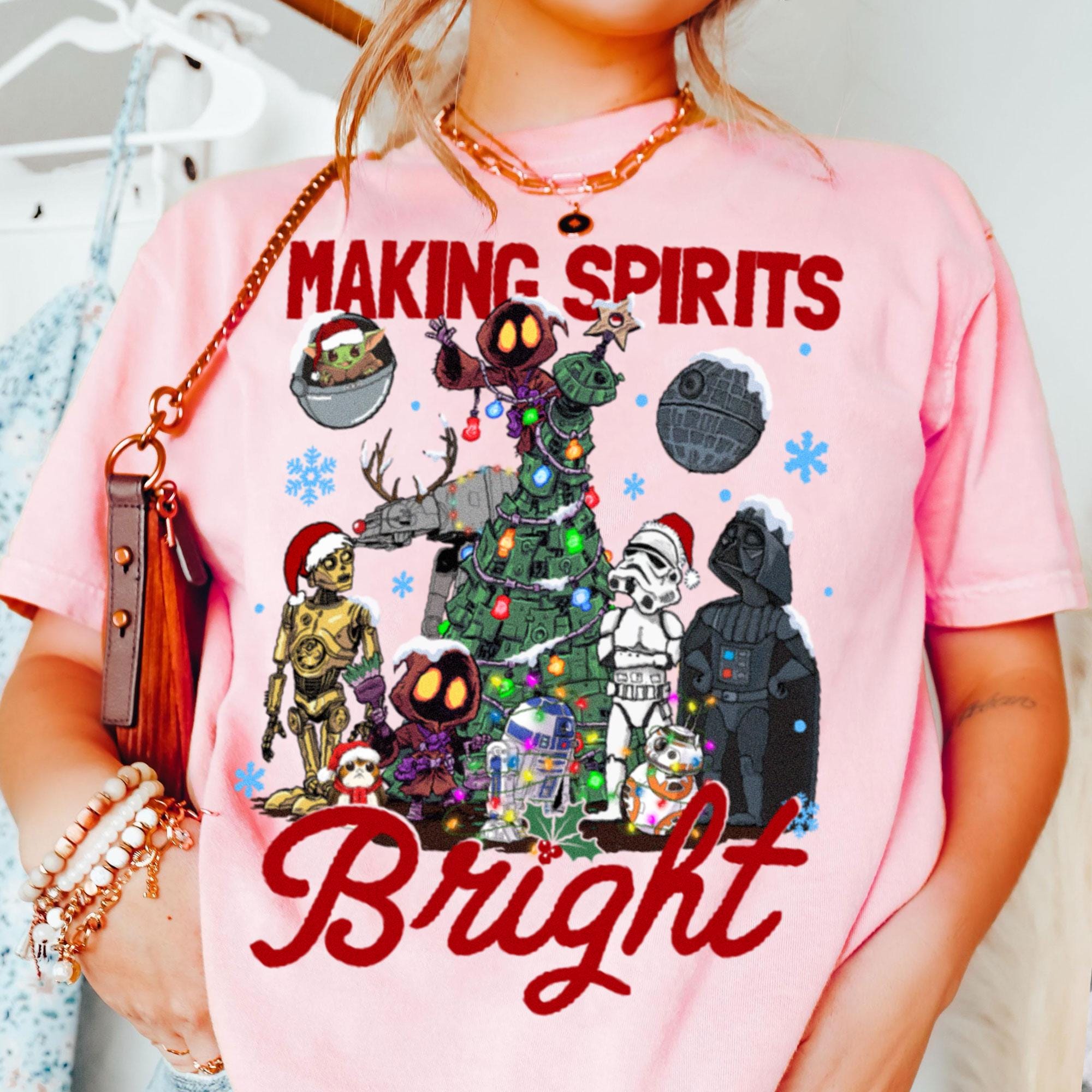 Star Wars Darth Vader Droid Yoda Xmas Tree Making Spirits Bright Comfort Color Shirt, Very Merry Christmas Party, Disneyland Trip Shirt 2025