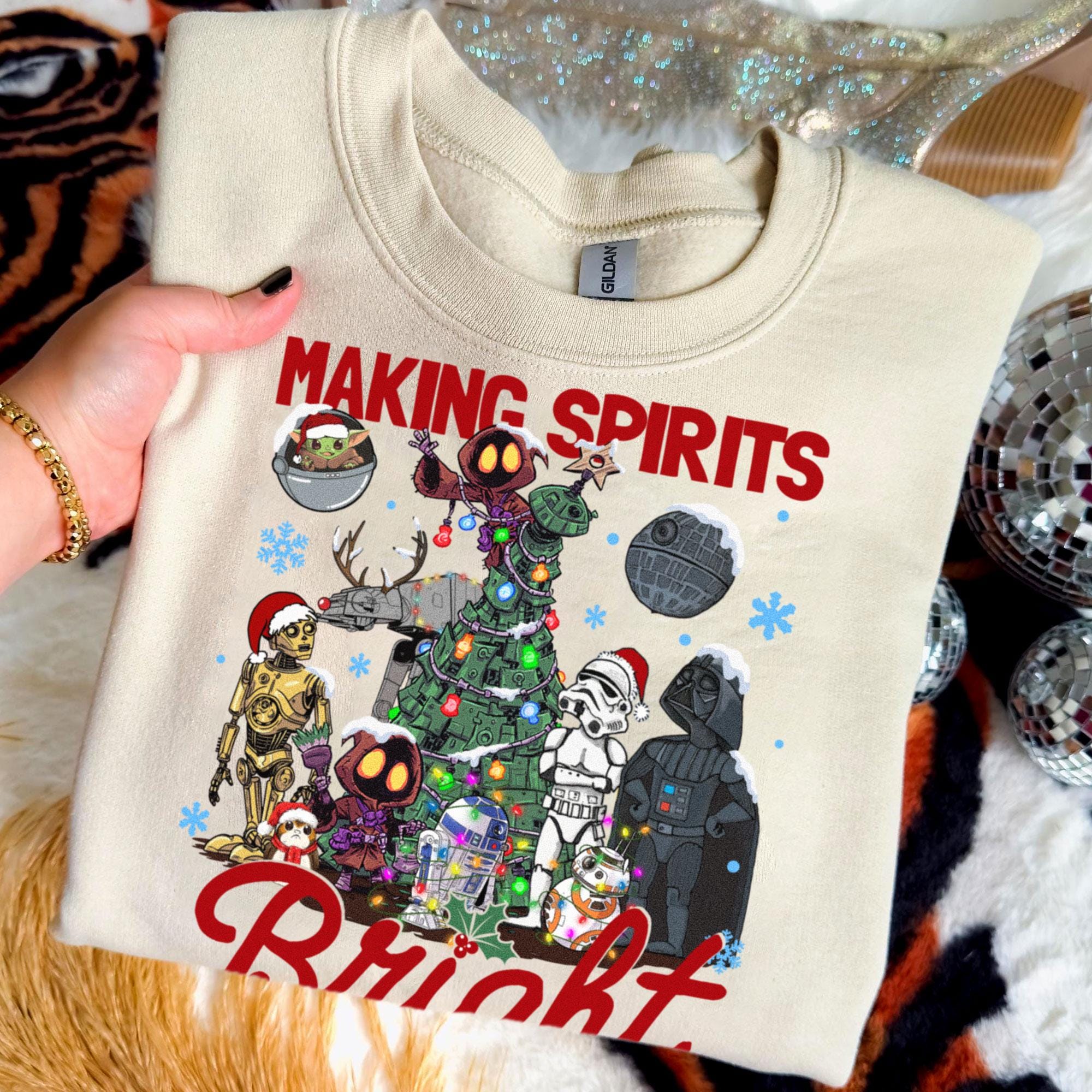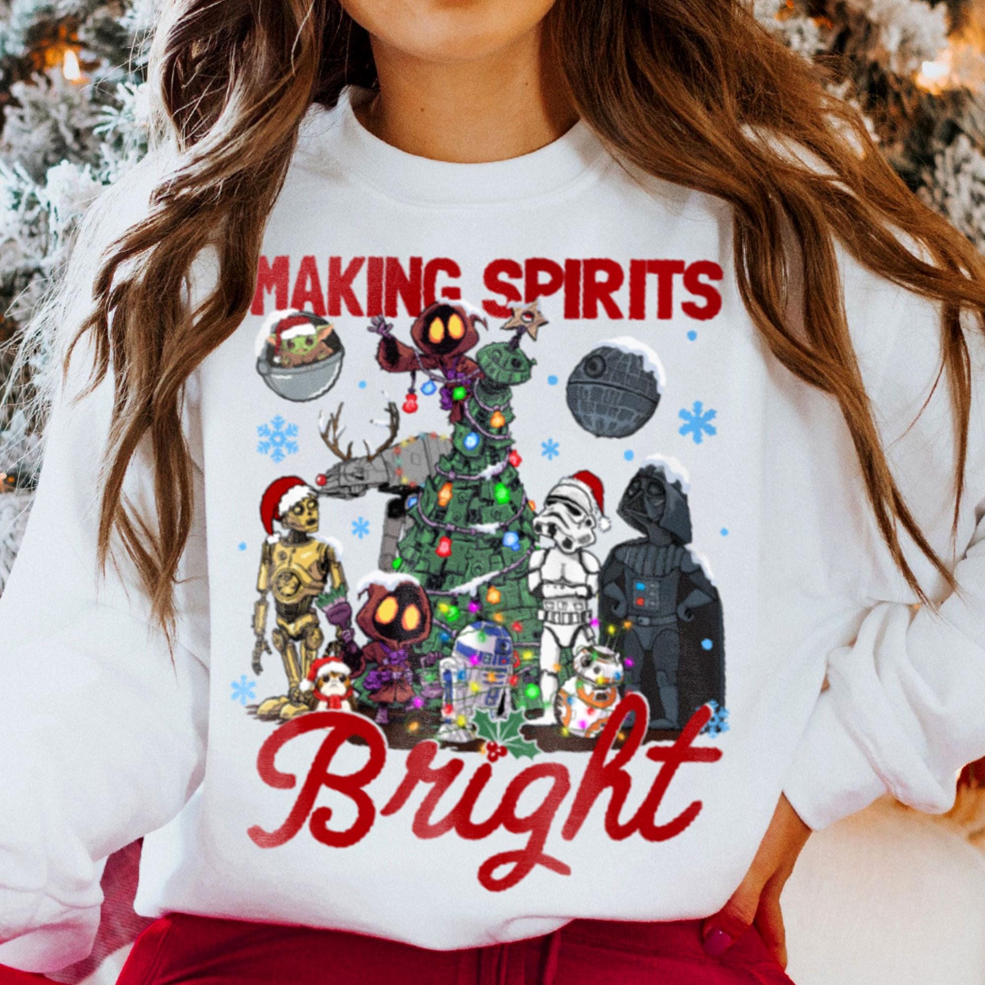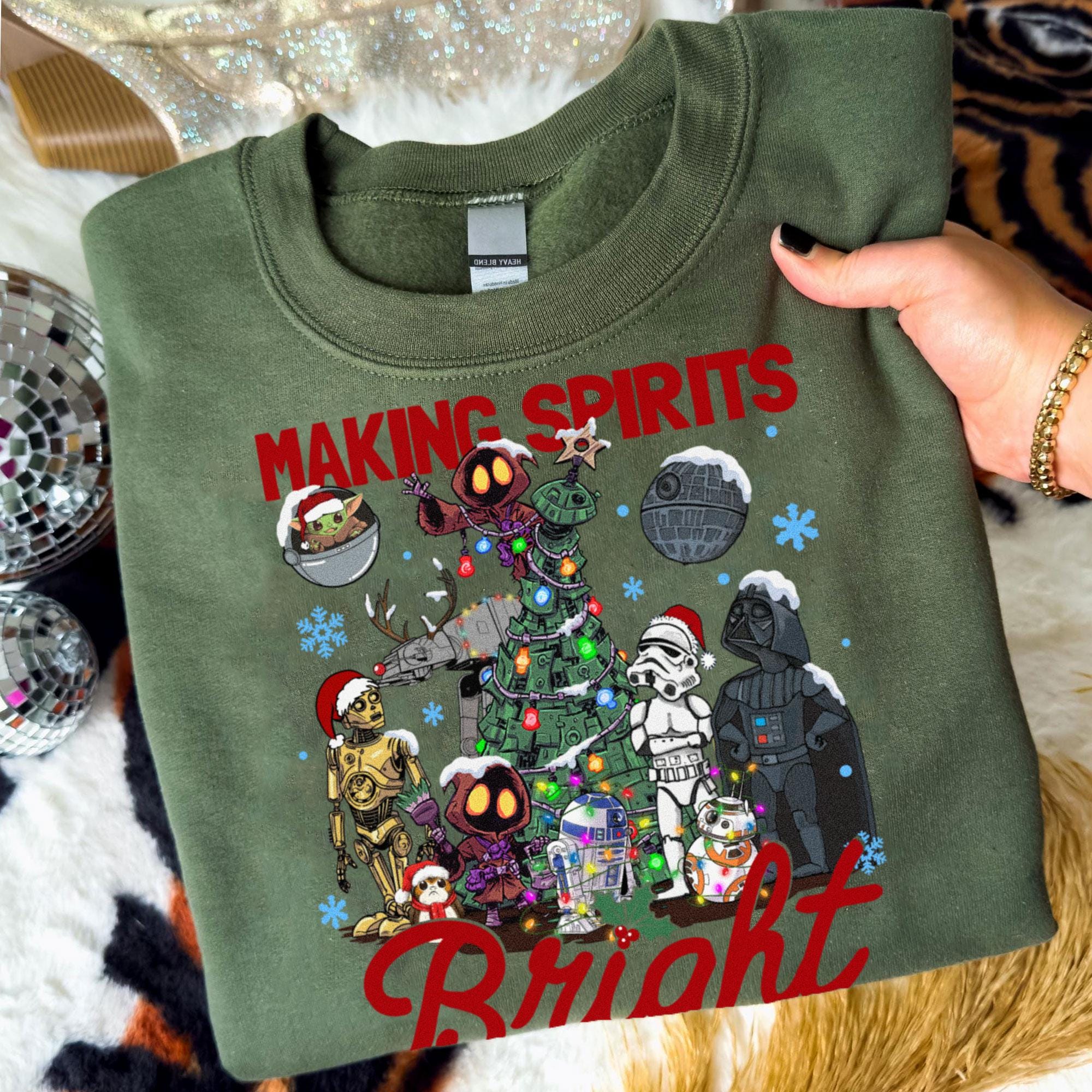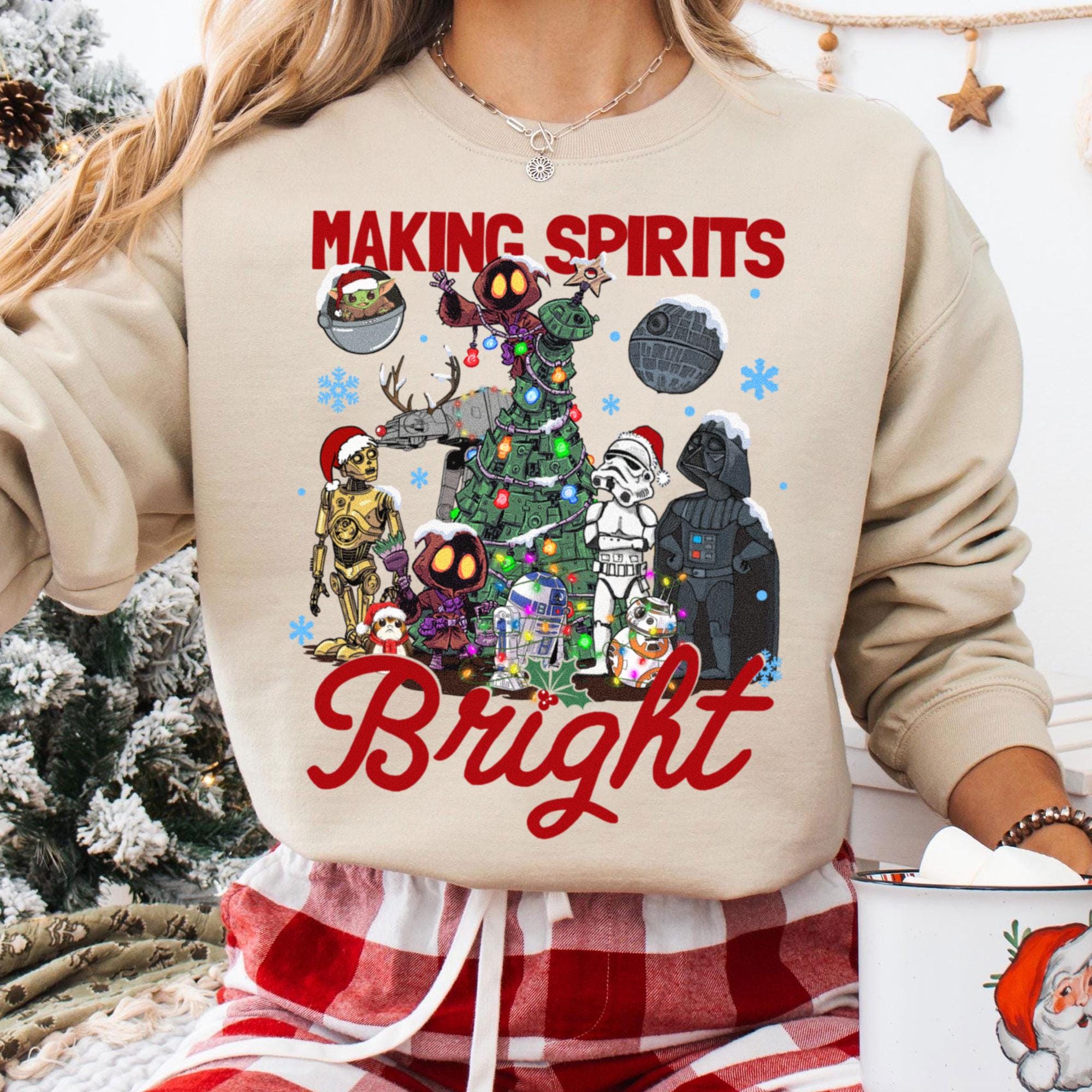 Star Wars Darth Vader Droid Yoda Xmas Tree Making Spirits Bright Comfort Color Shirt, Very Merry Christmas Party, Disneyland Trip Shirt 2025
