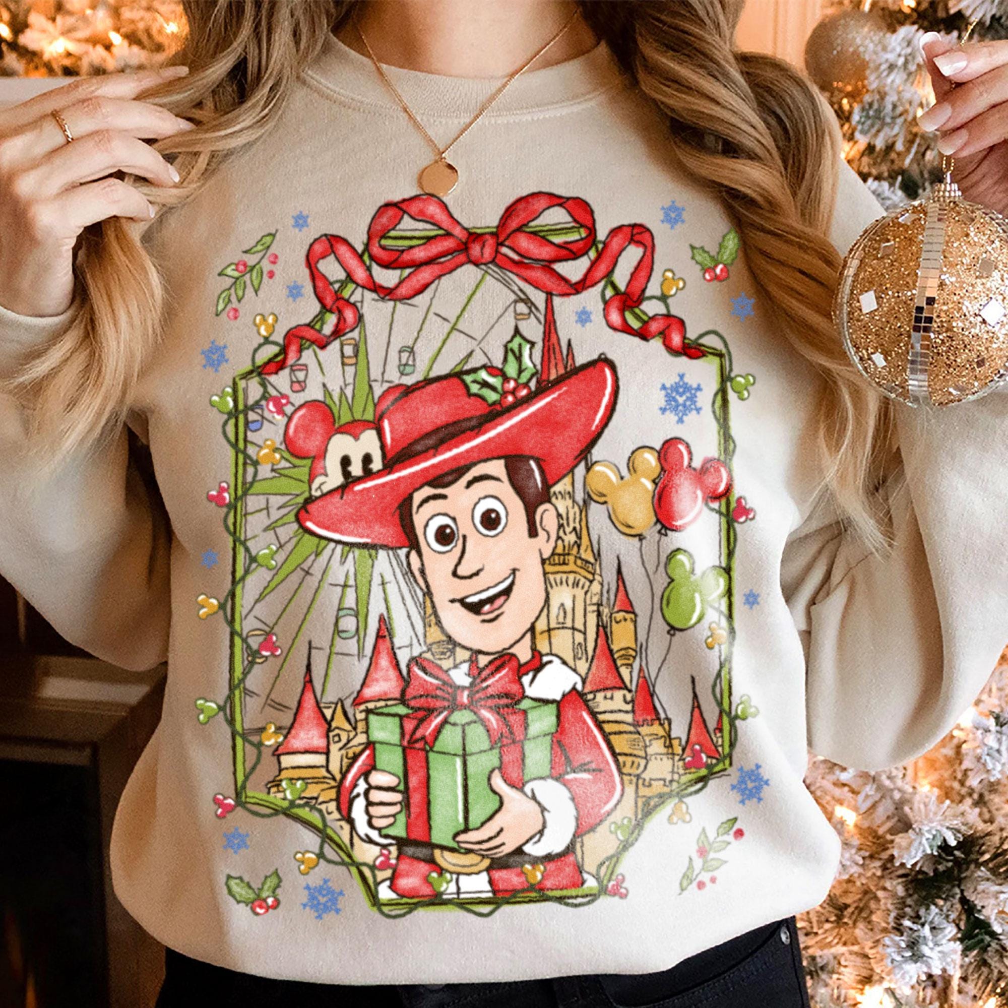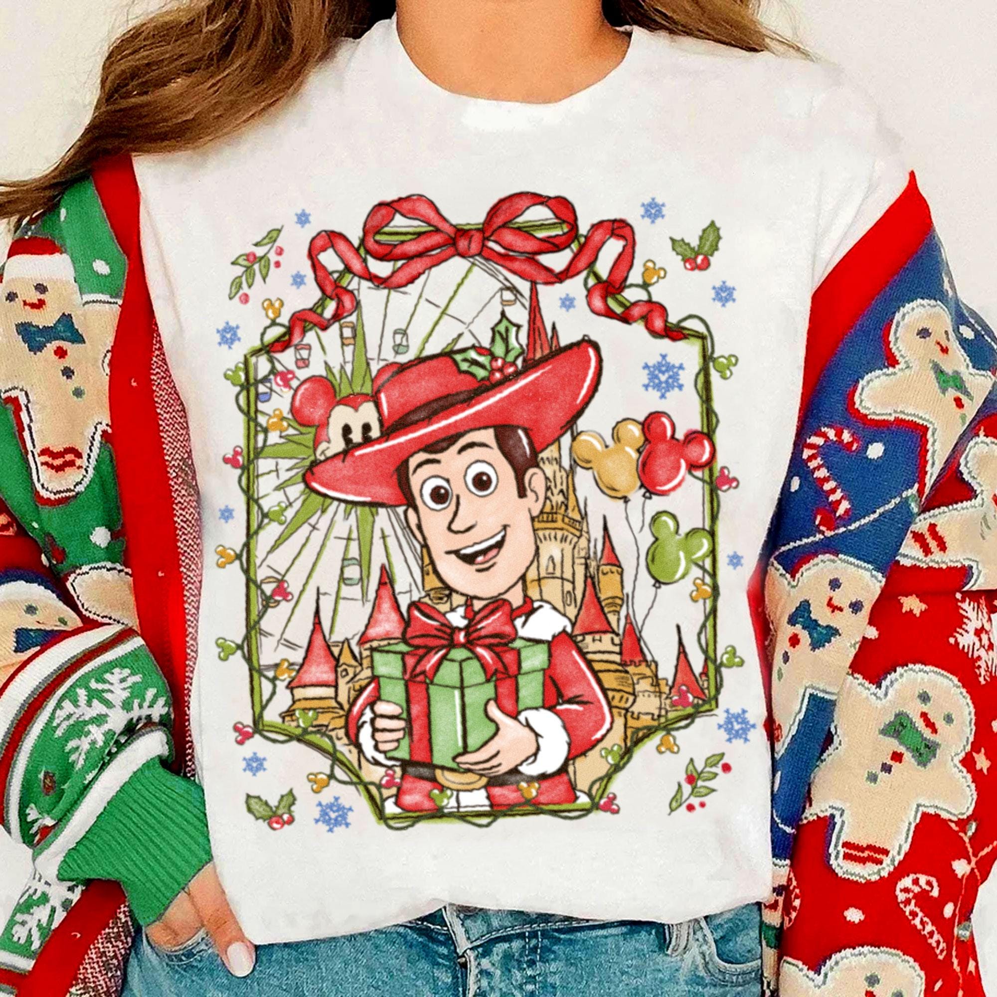 Woody Tis The Season Disney Castle Xmas Light Wreath Comfort Color Shirt, Very Merry Christmas Party, Disneyland Trip Shirt 2025