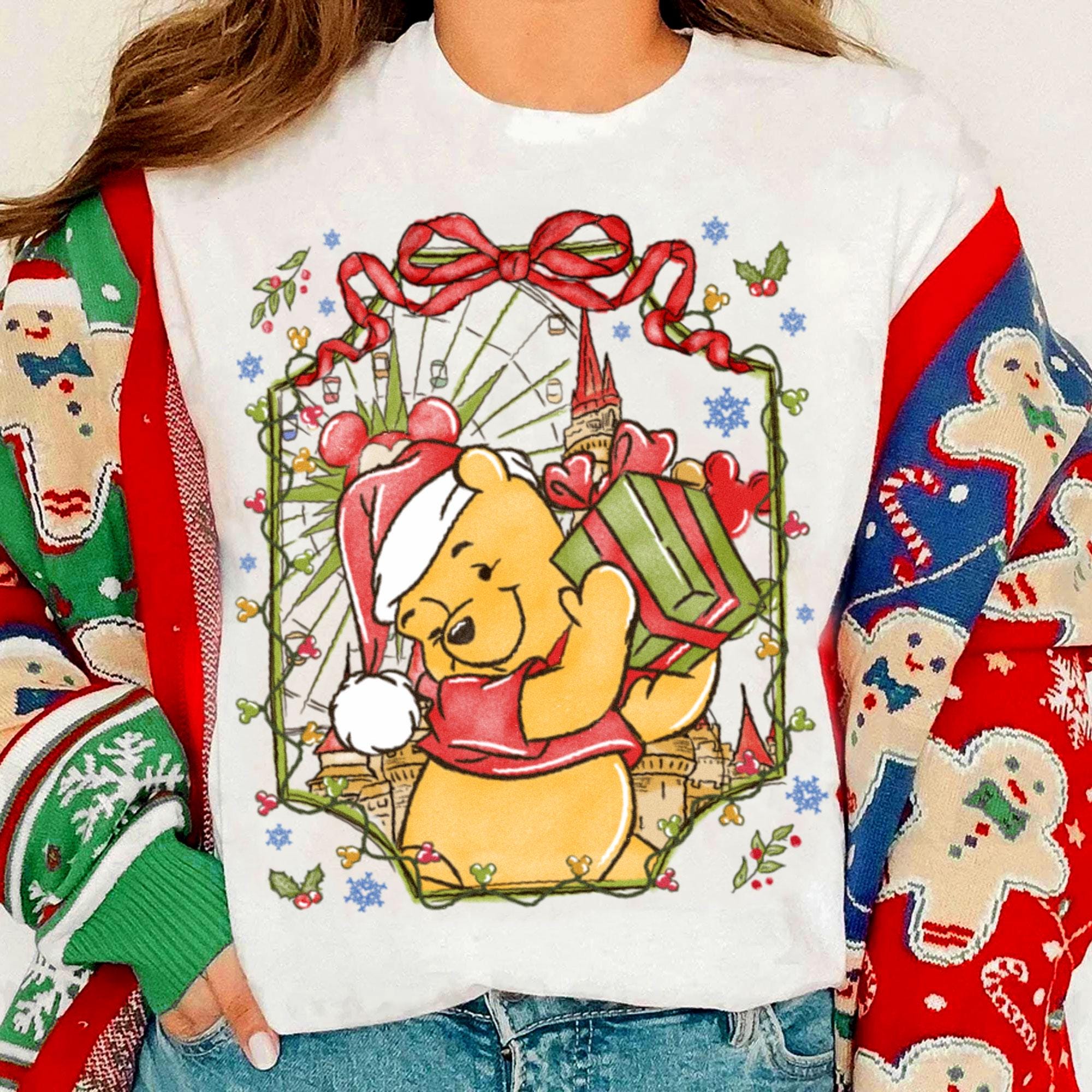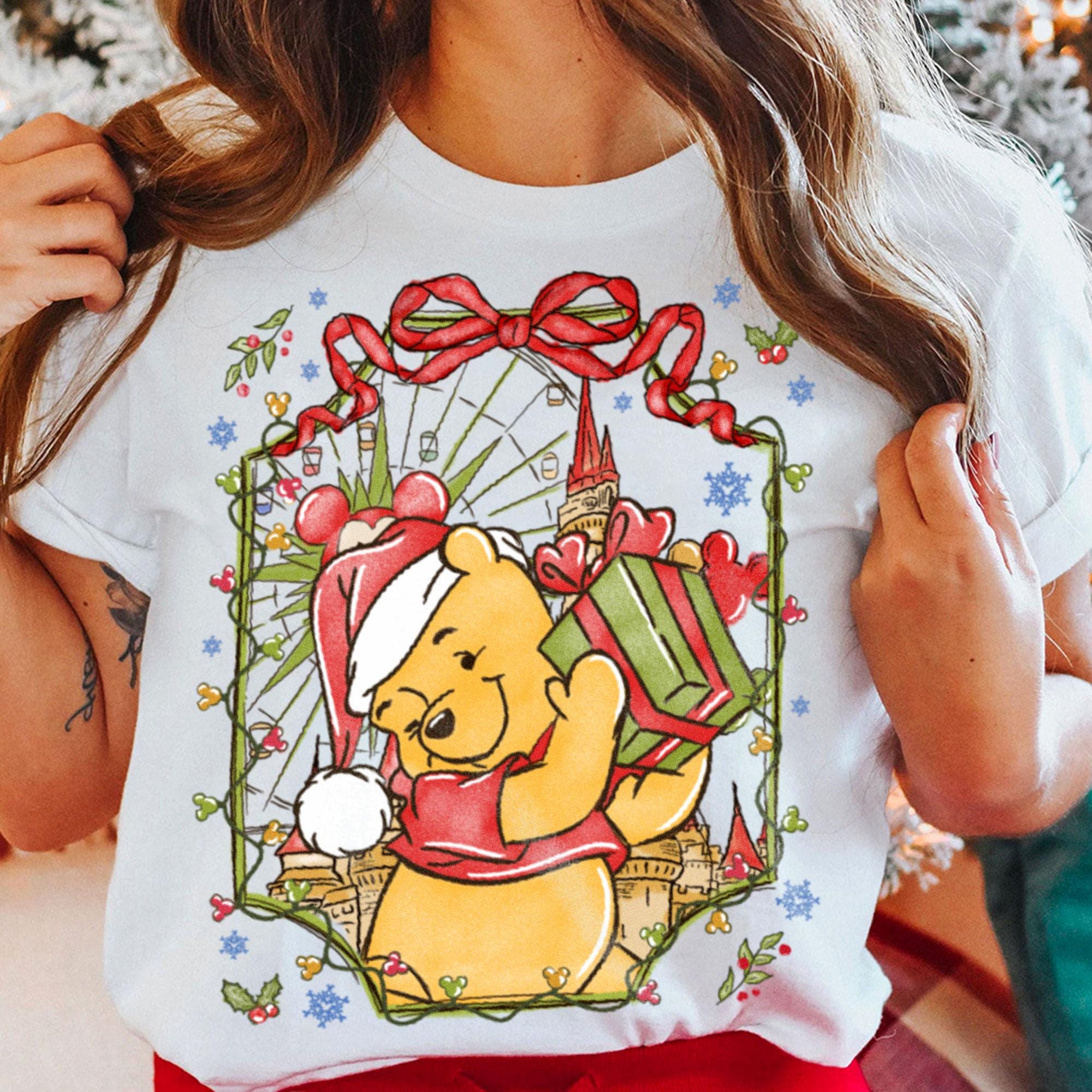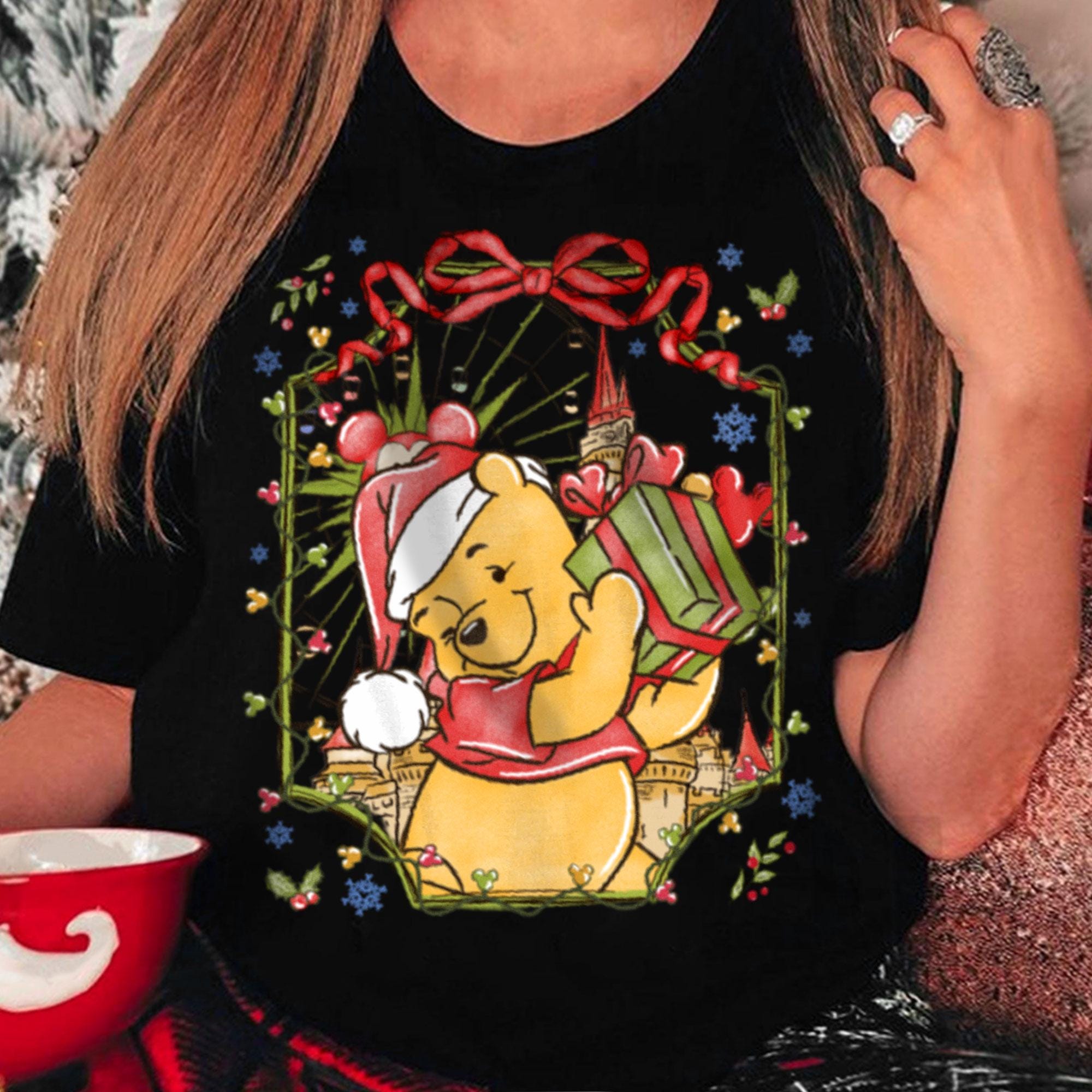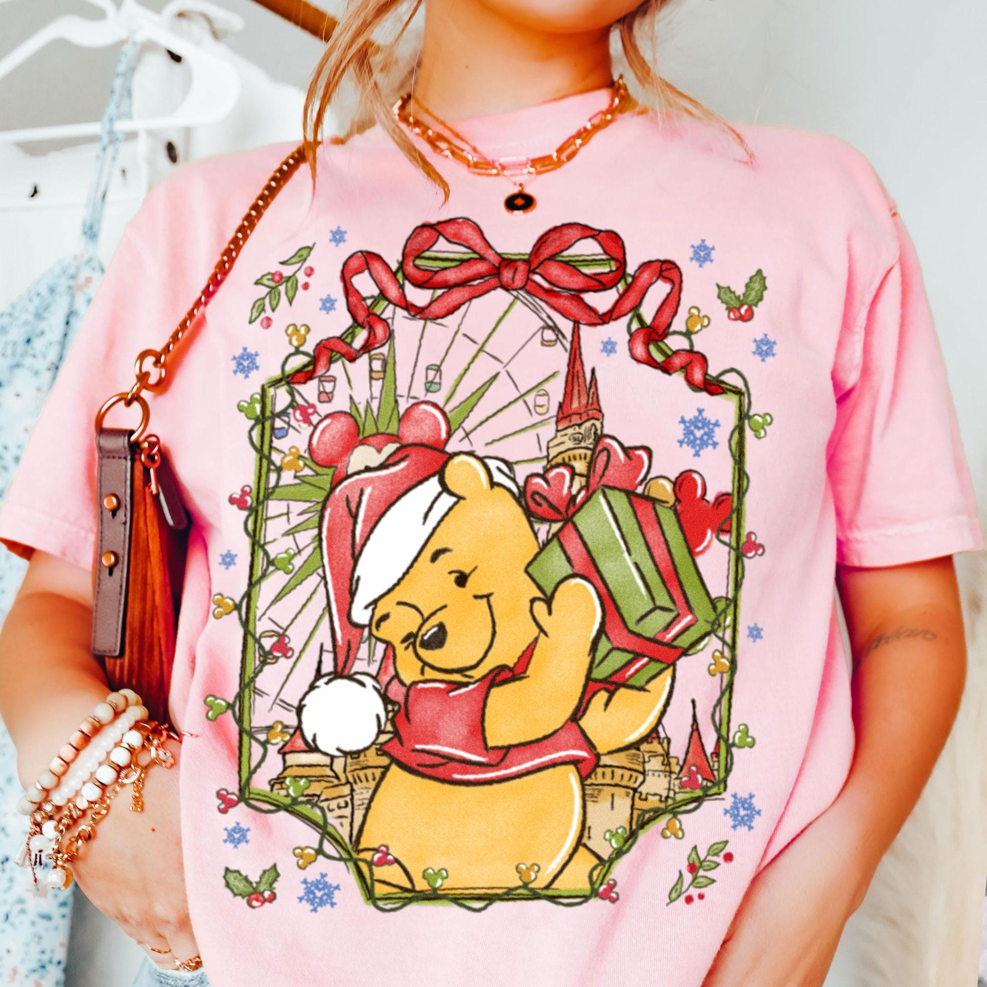 Pooh Santa Tis The Season Disney Castle Xmas Light Wreath Comfort Color Shirt, Very Merry Christmas Party, Disneyland Trip Shirt 2025