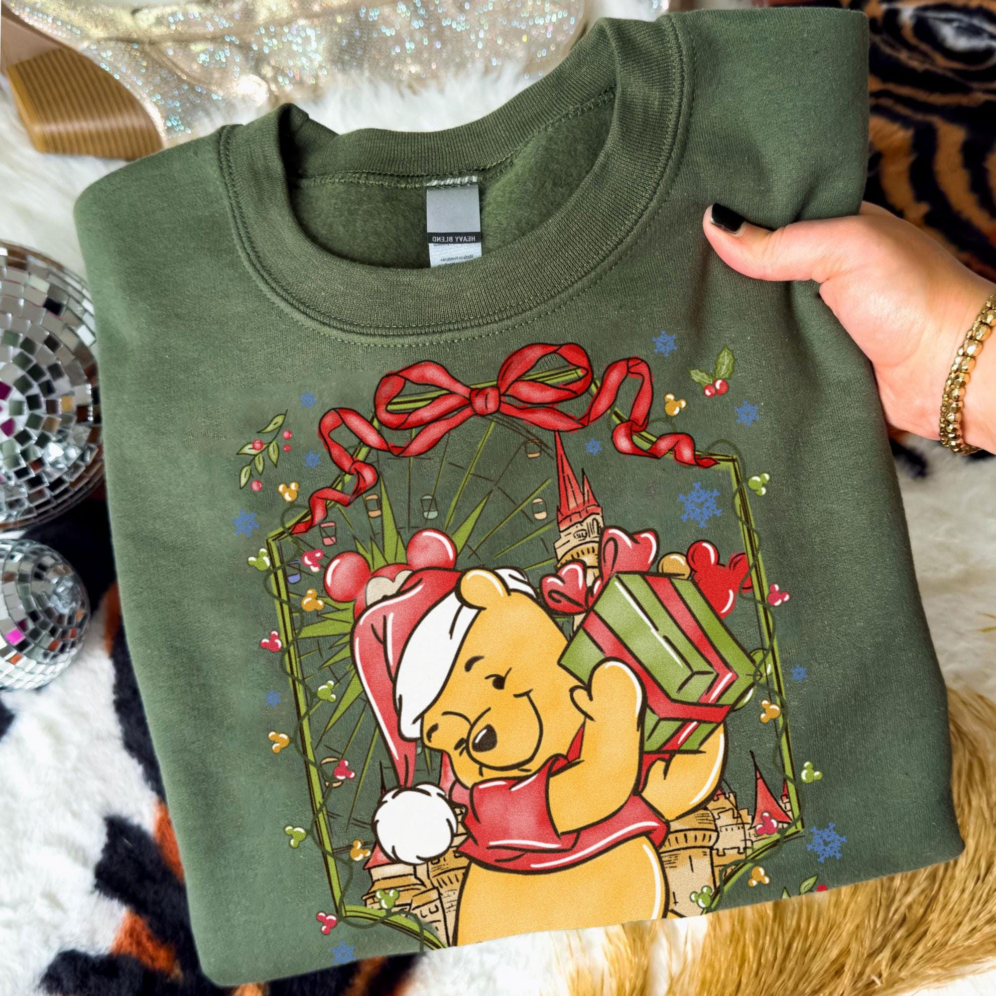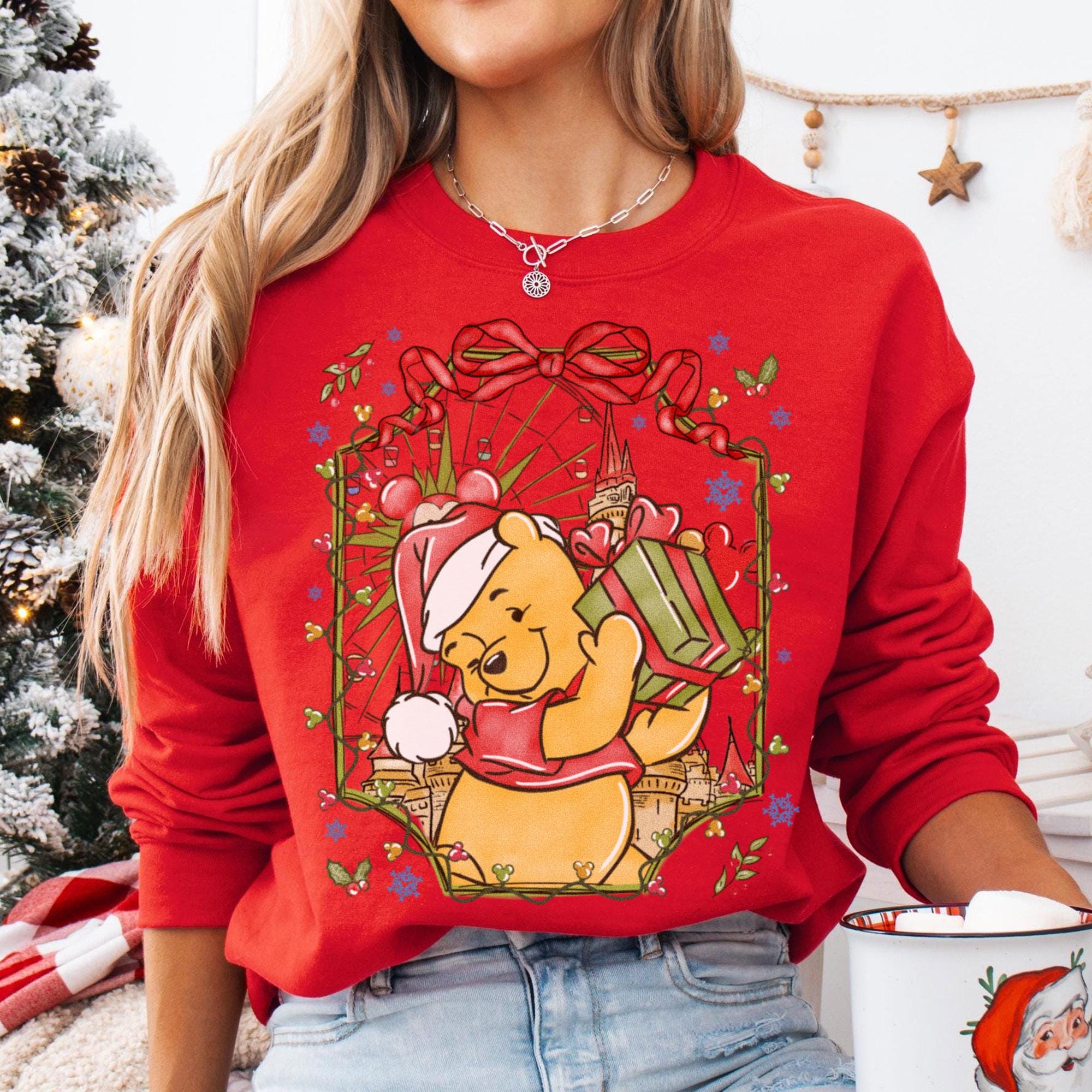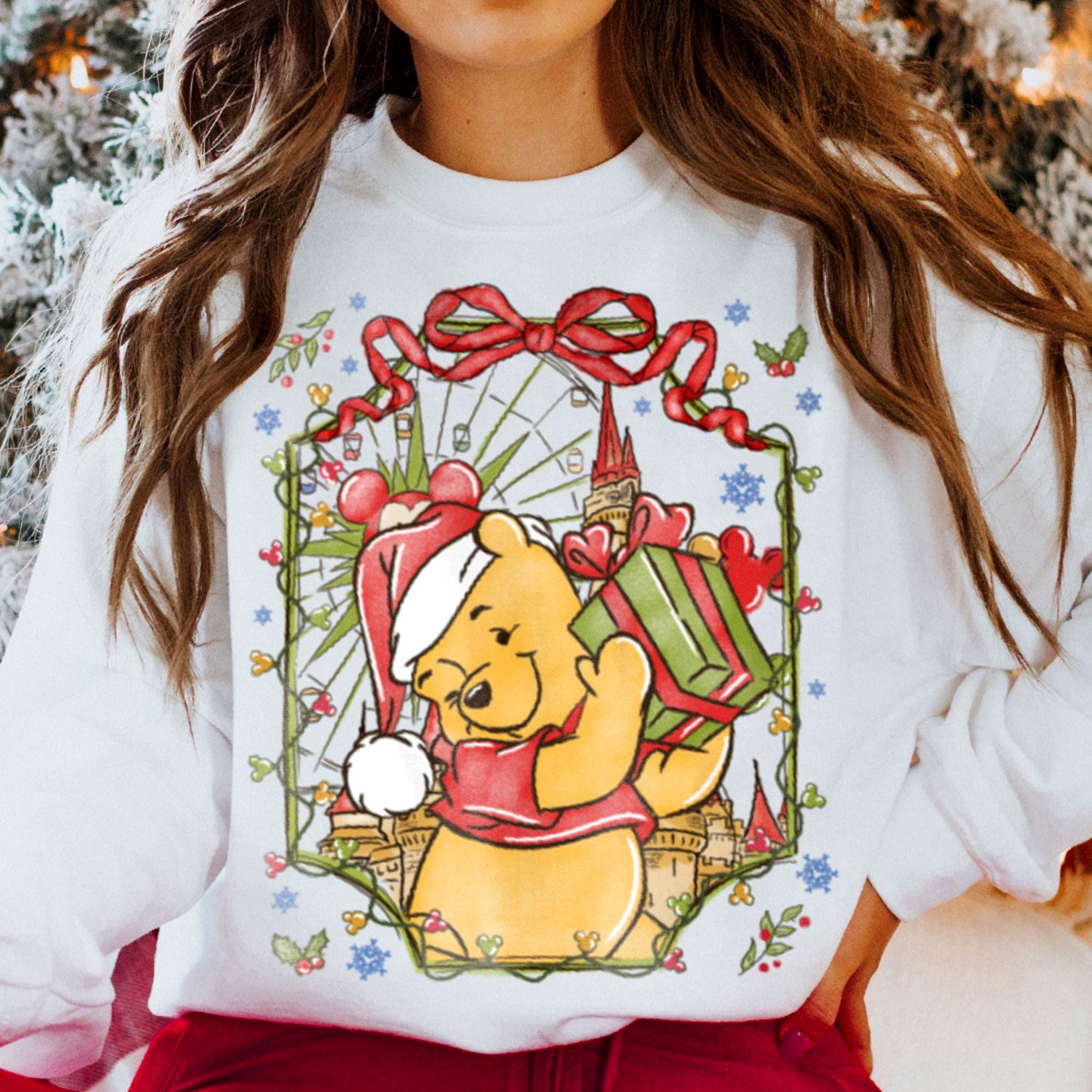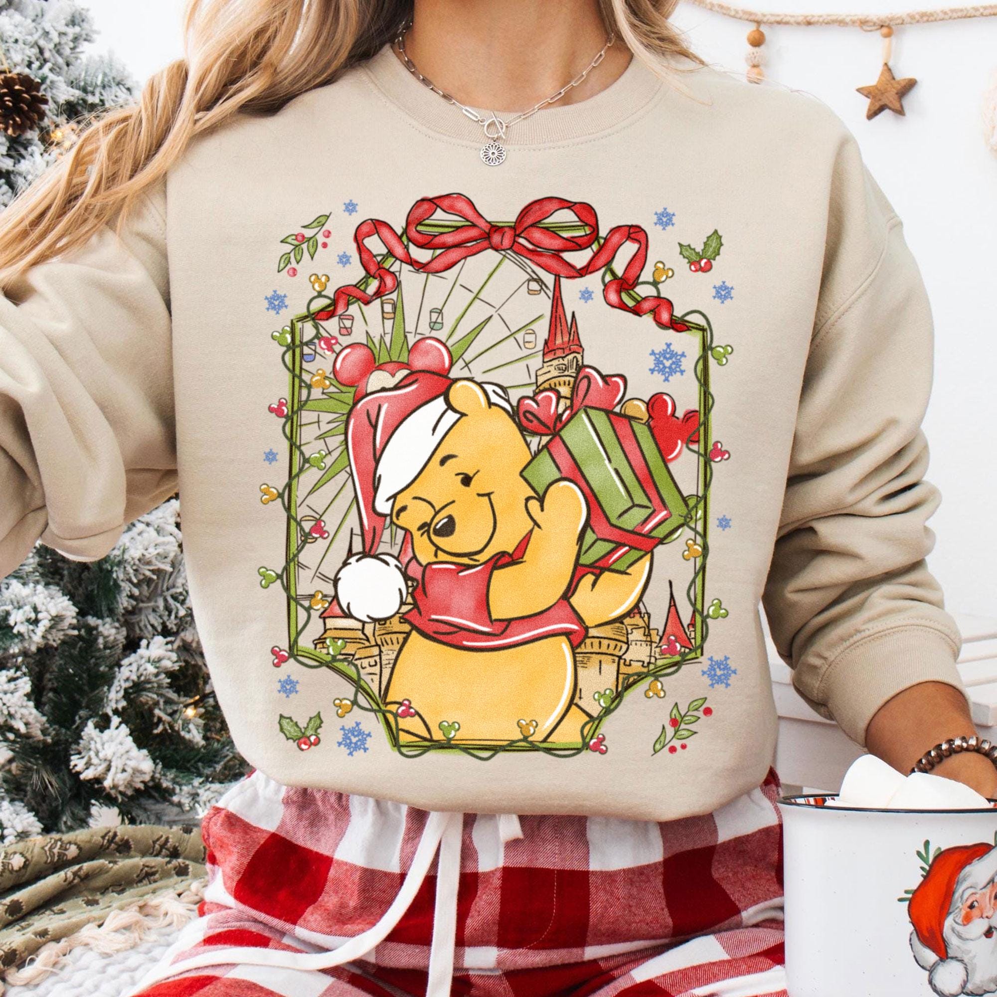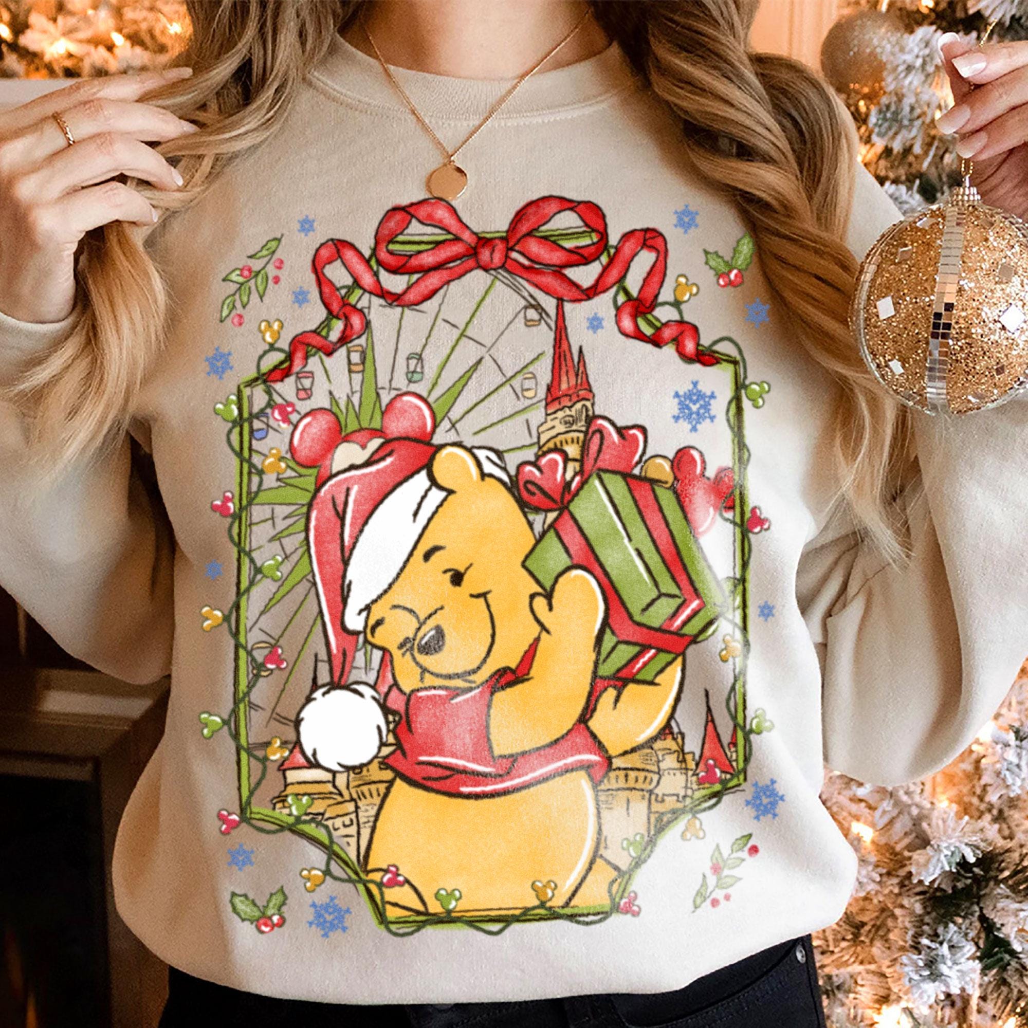 Pooh Santa Tis The Season Disney Castle Xmas Light Wreath Comfort Color Shirt, Very Merry Christmas Party, Disneyland Trip Shirt 2025