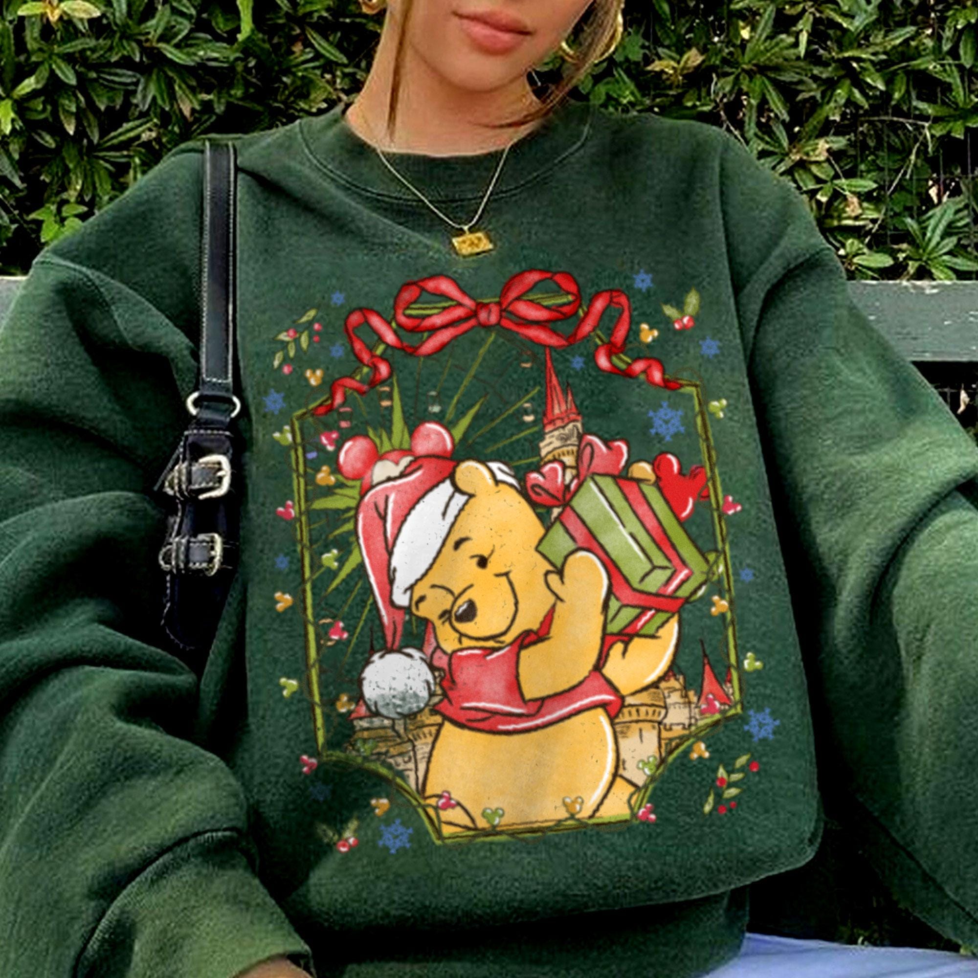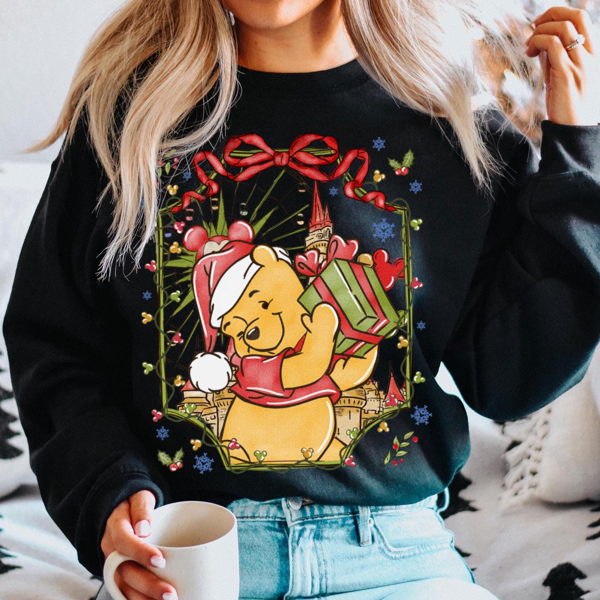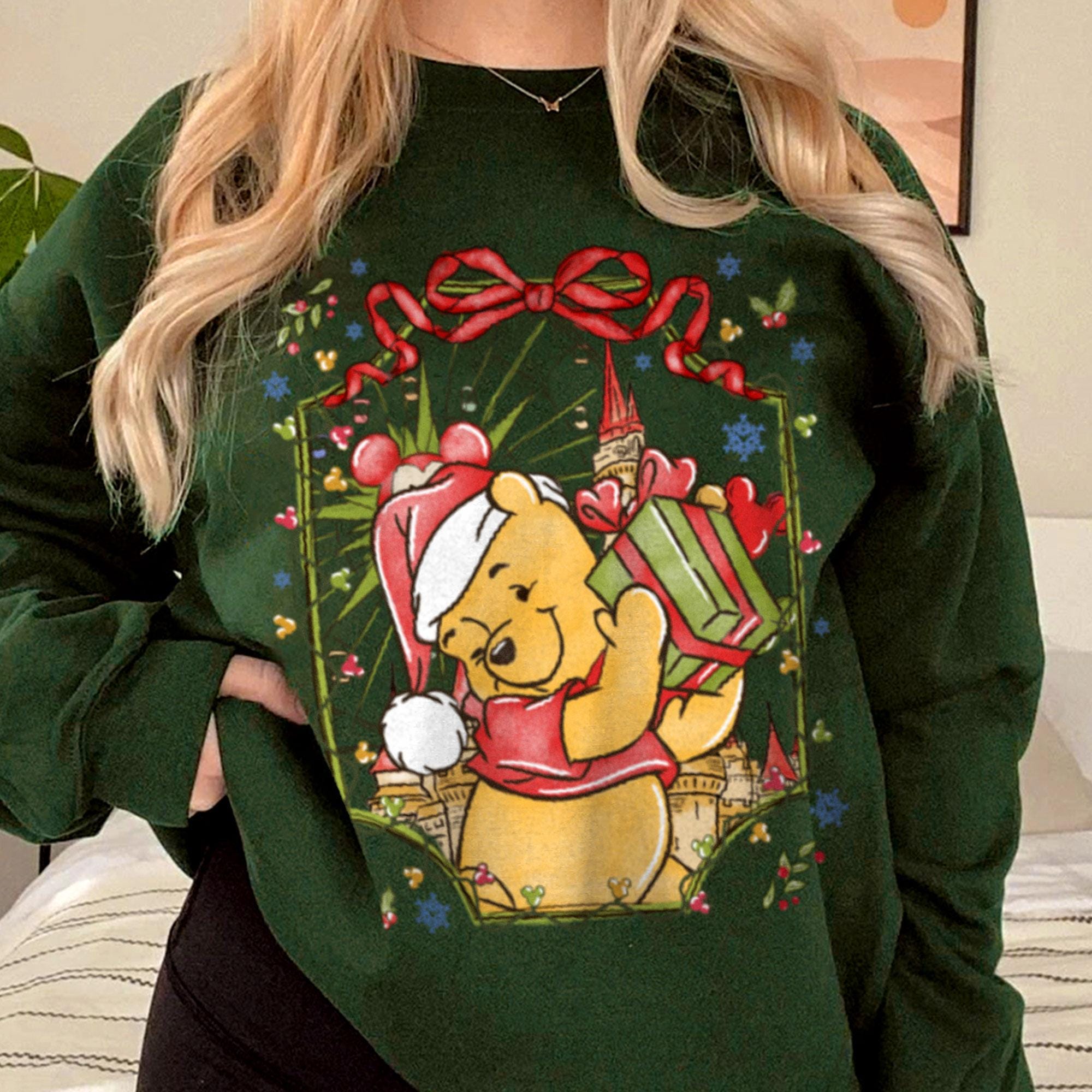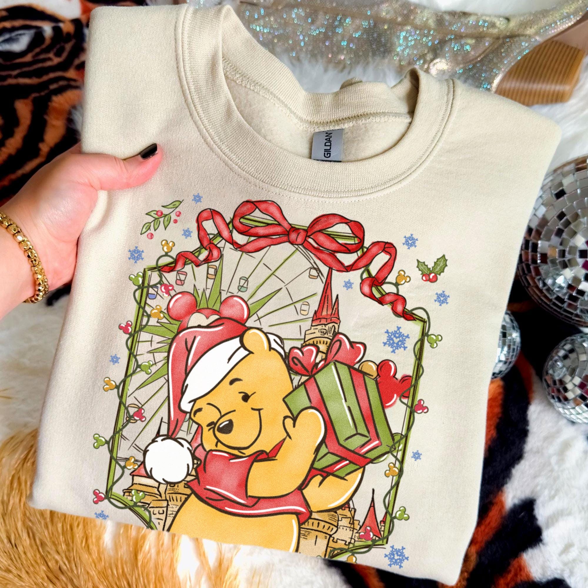 Pooh Santa Tis The Season Disney Castle Xmas Light Wreath Comfort Color Shirt, Very Merry Christmas Party, Disneyland Trip Shirt 2025