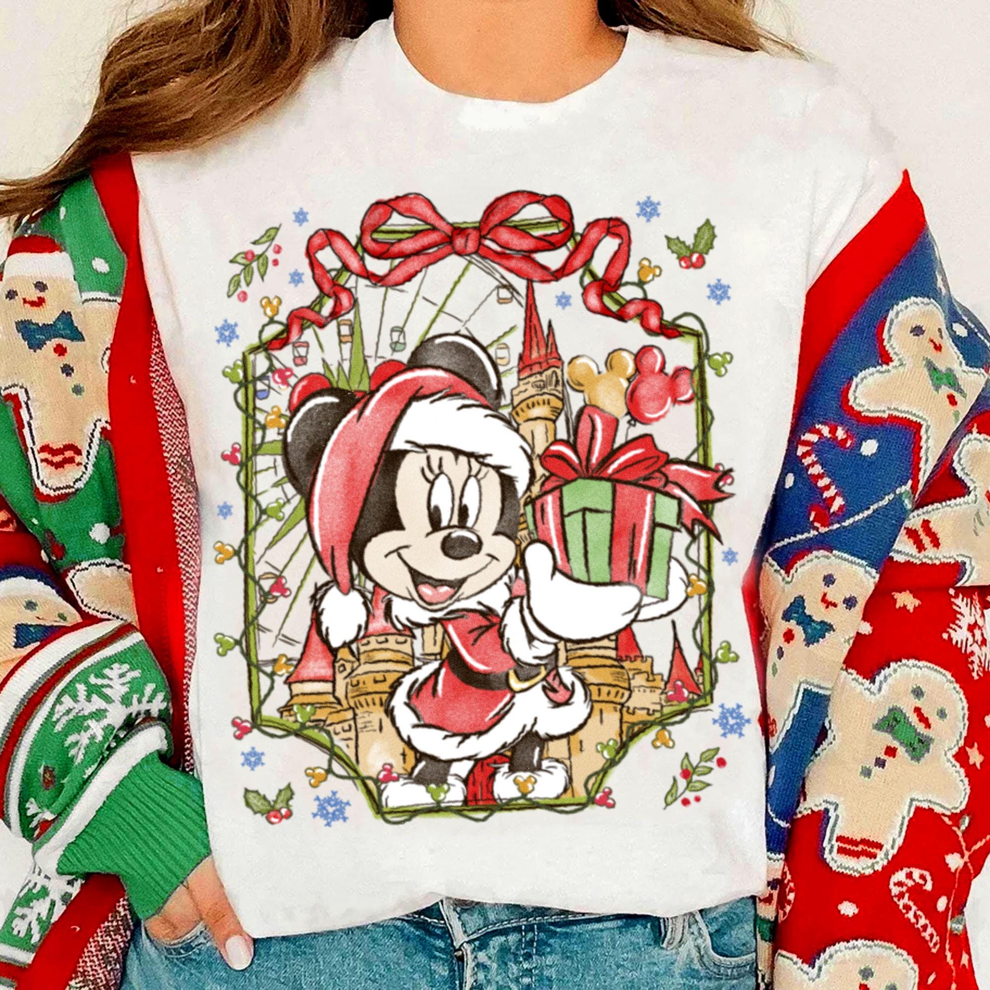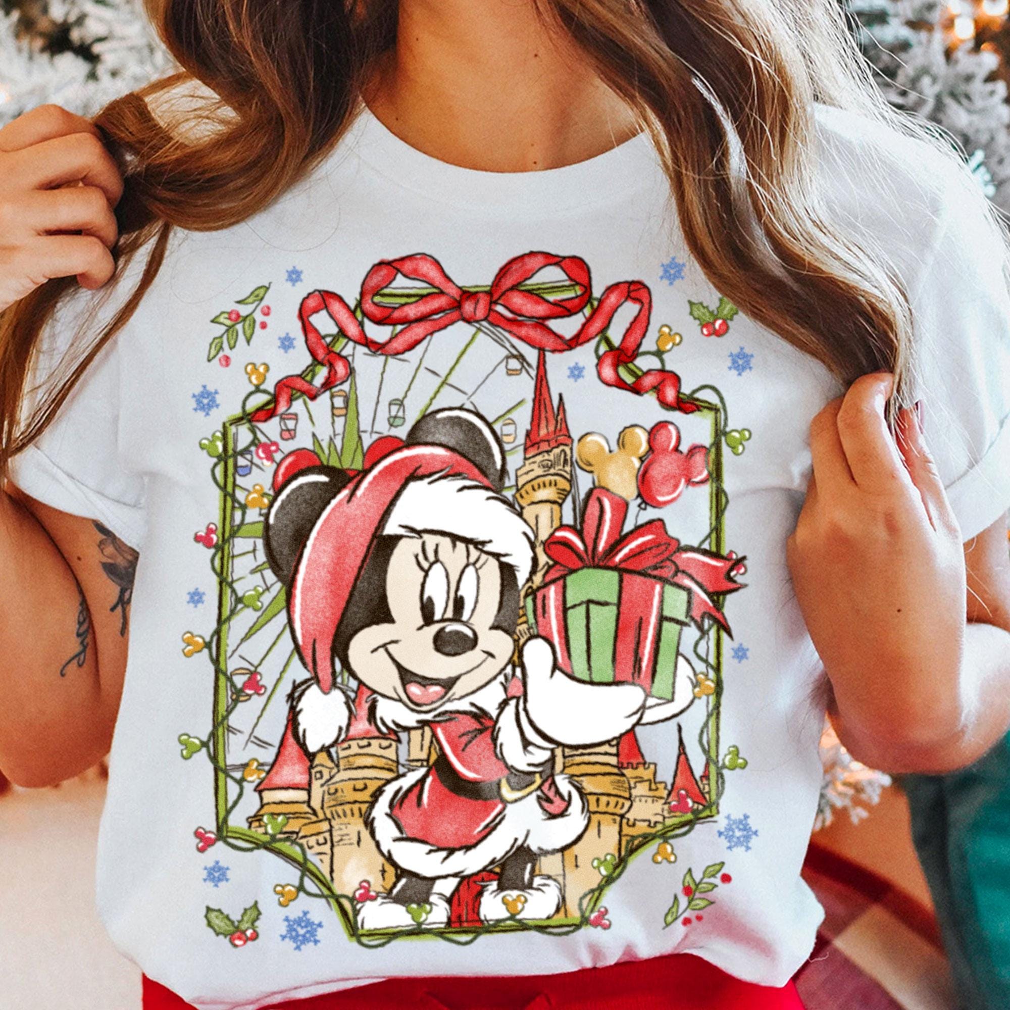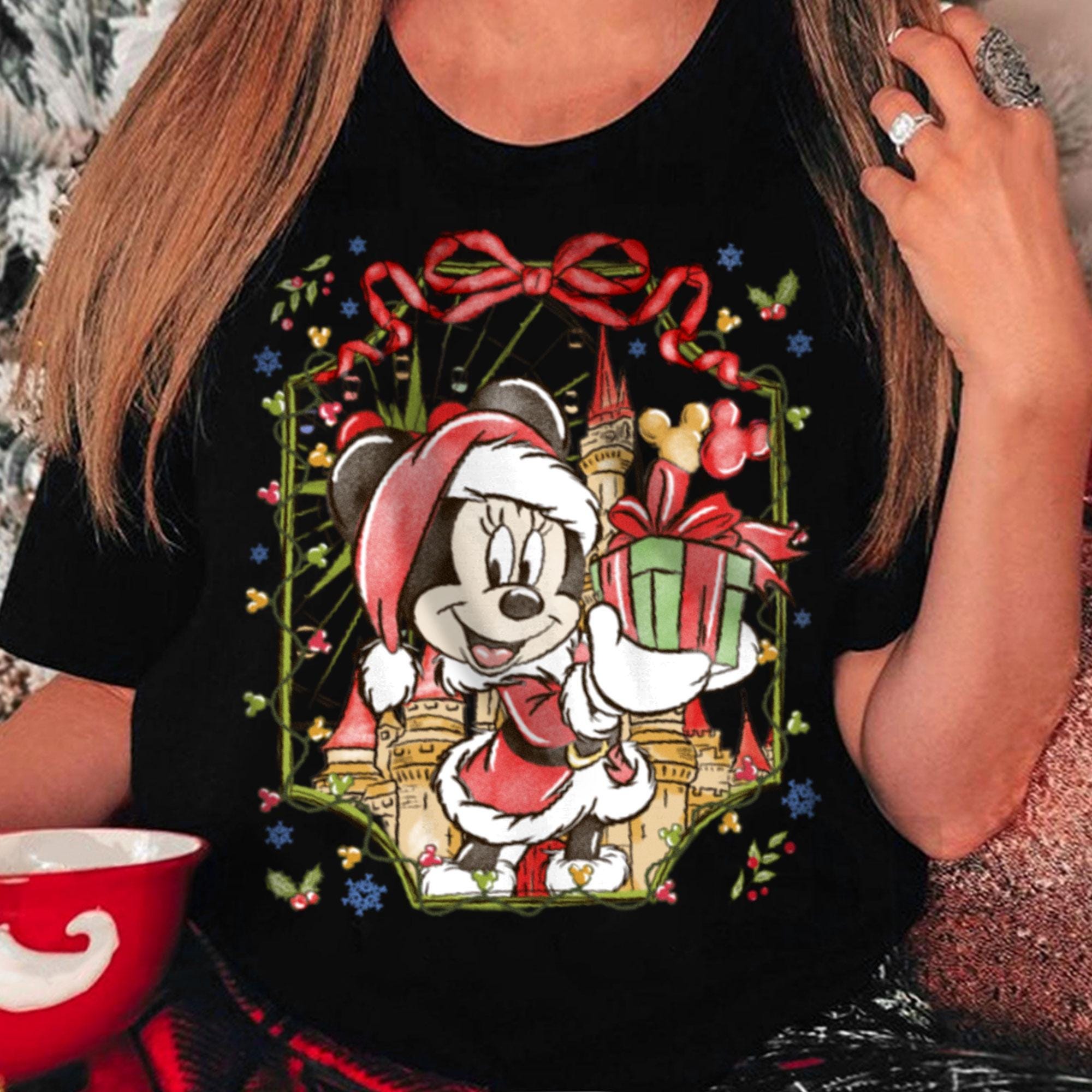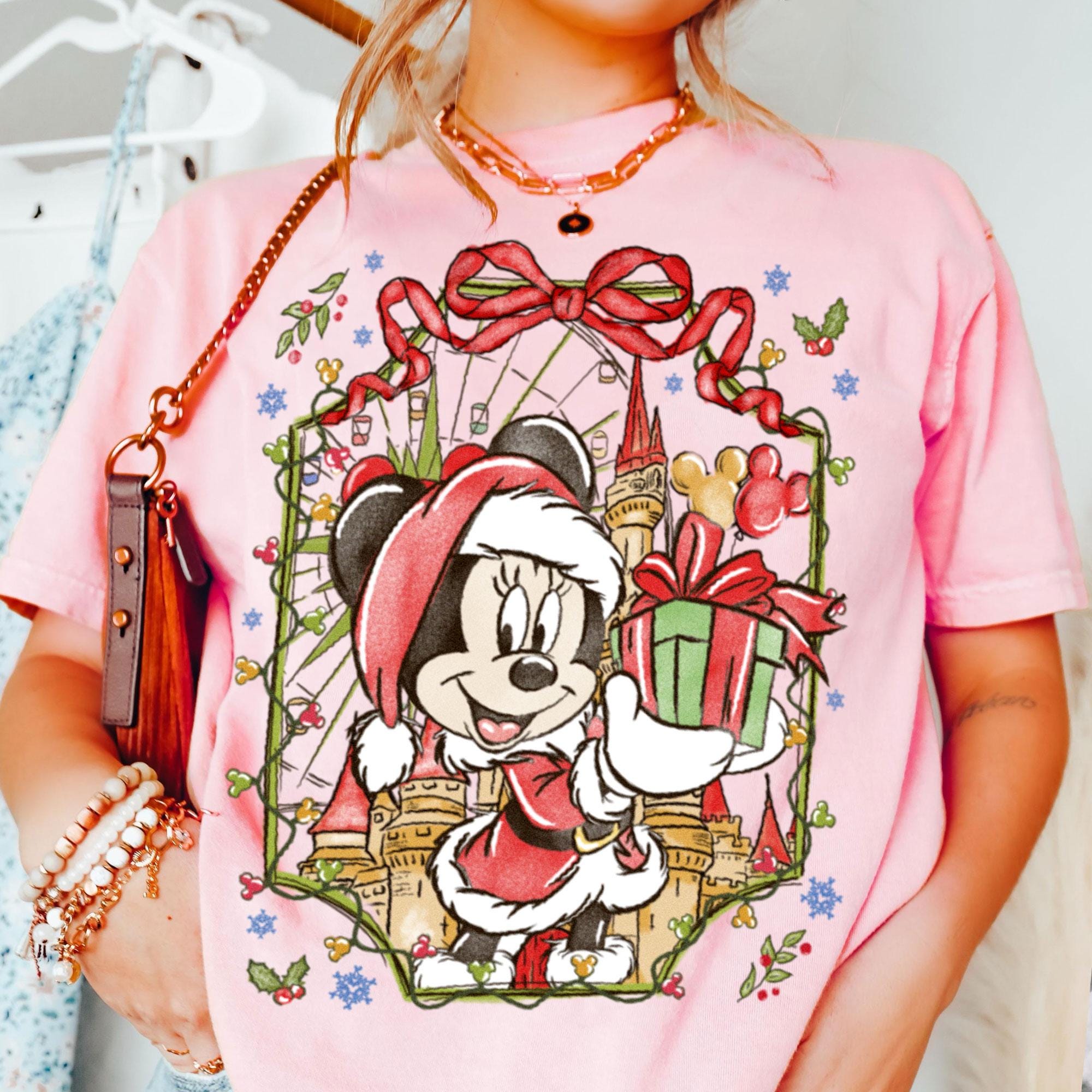 Minnie Santa Tis The Season Disney Castle Xmas Light Wreath Comfort Color Shirt, Very Merry Christmas Party, Disneyland Trip Shirt 2025