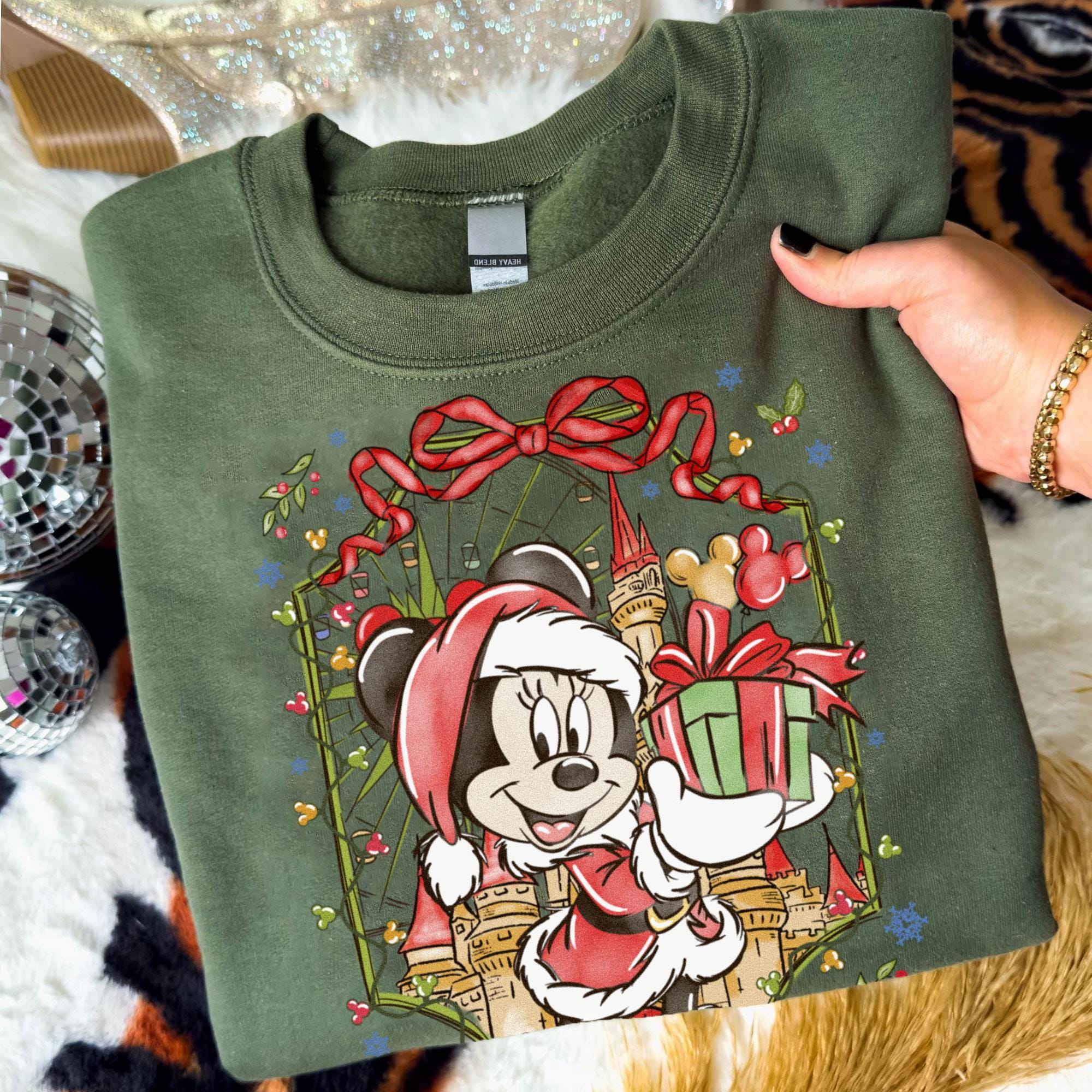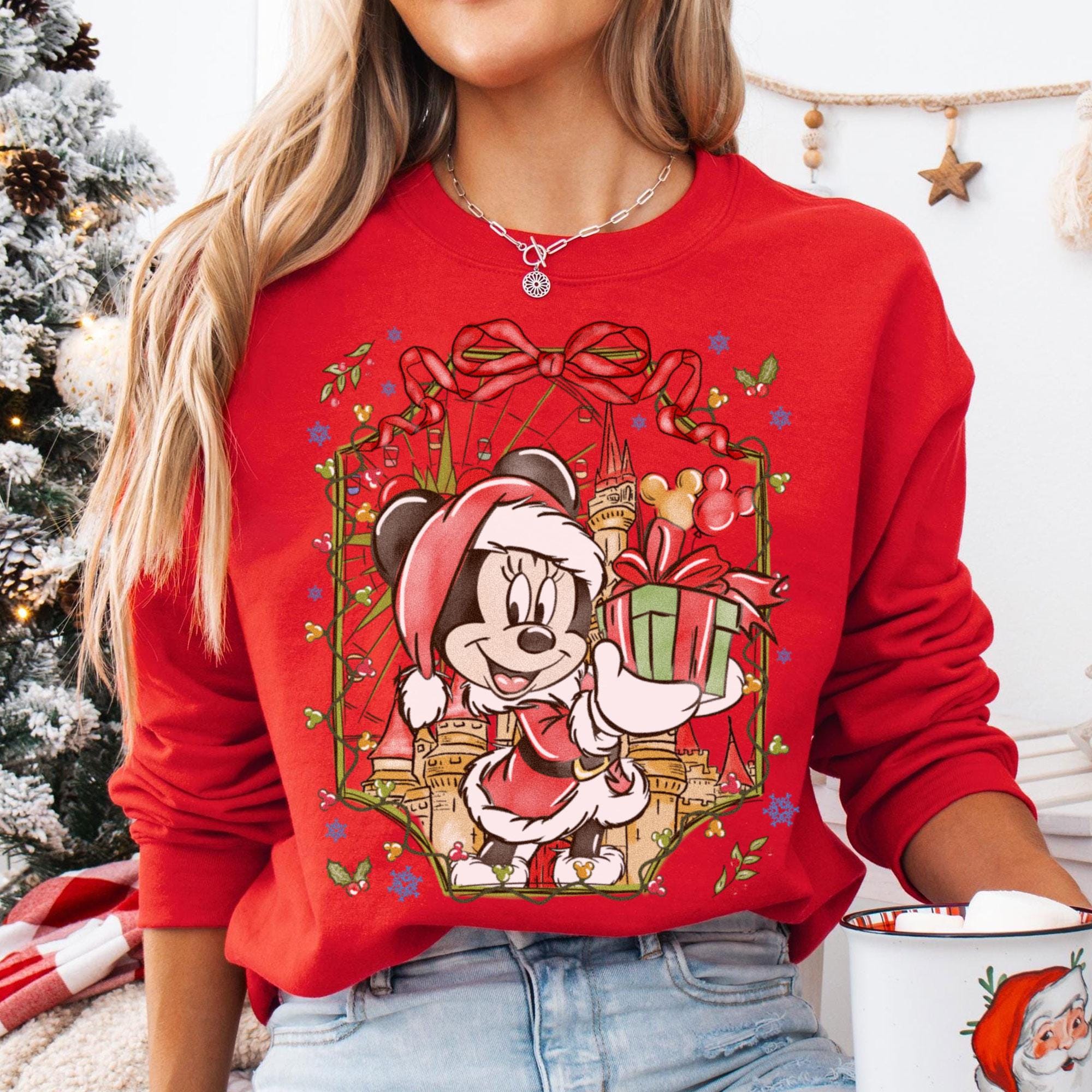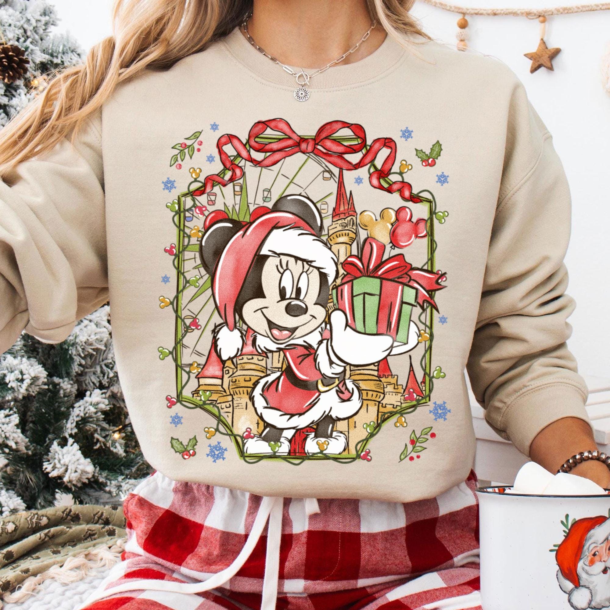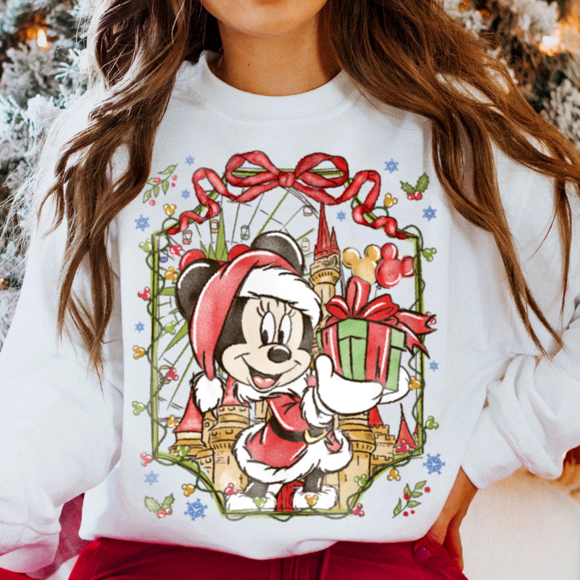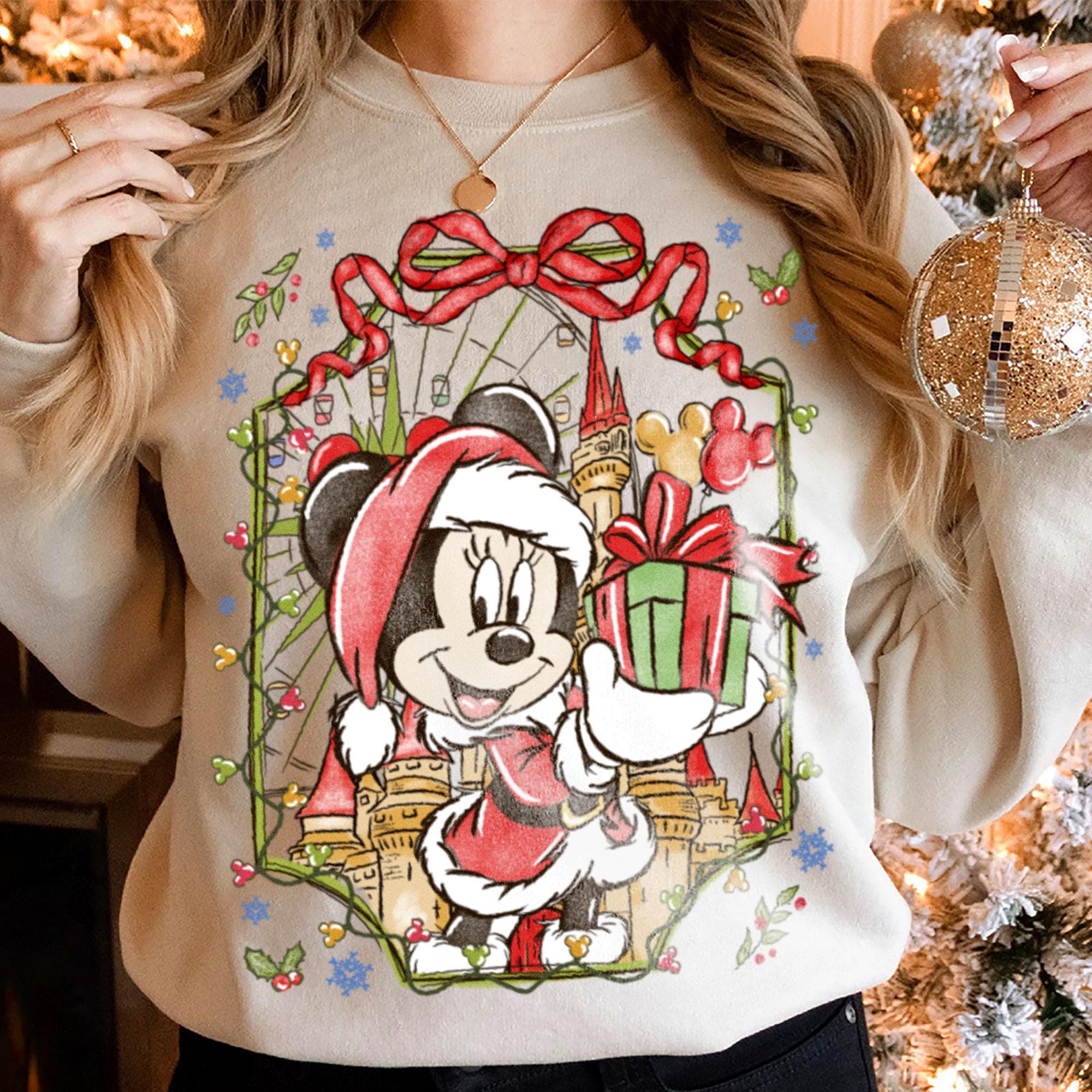 Minnie Santa Tis The Season Disney Castle Xmas Light Wreath Comfort Color Shirt, Very Merry Christmas Party, Disneyland Trip Shirt 2025