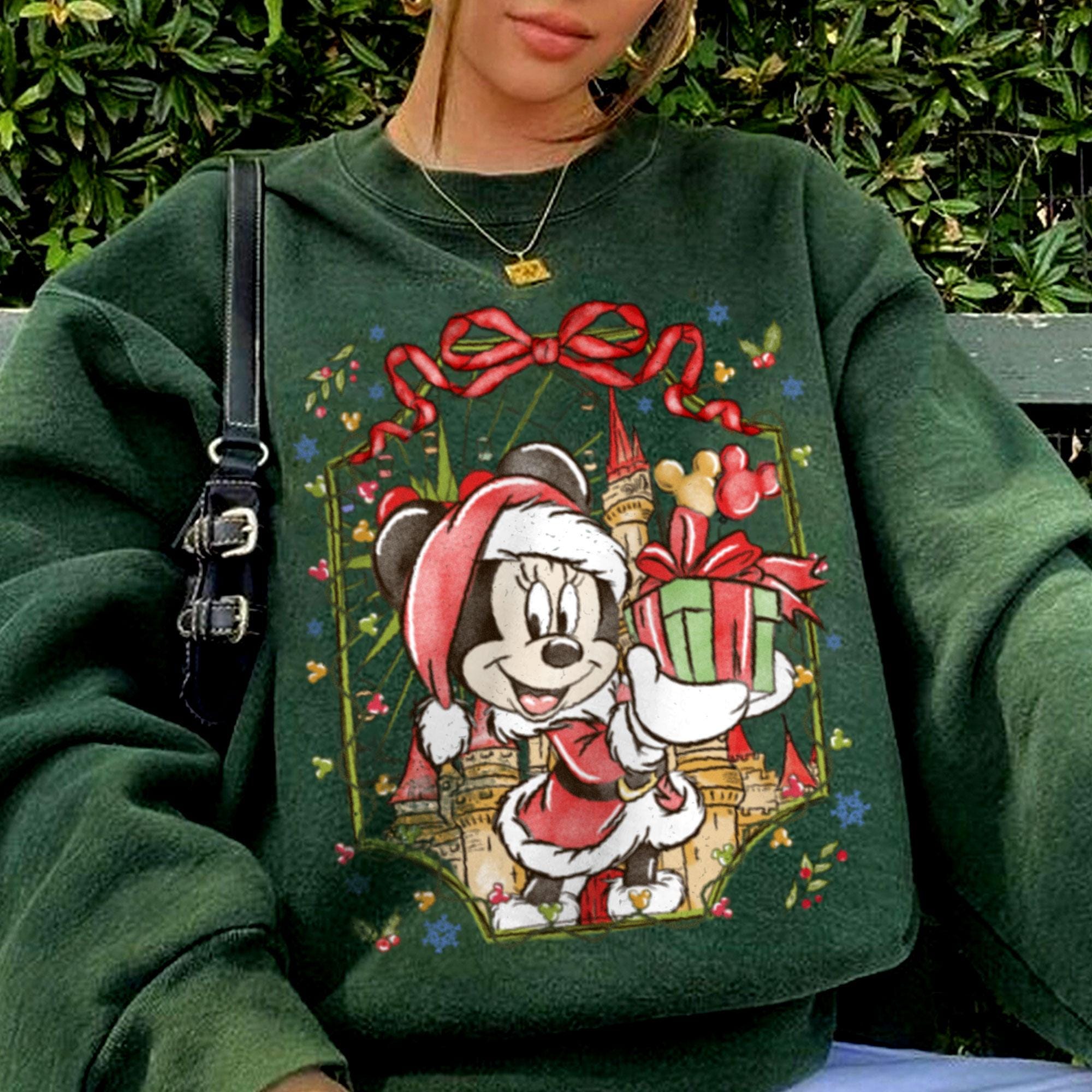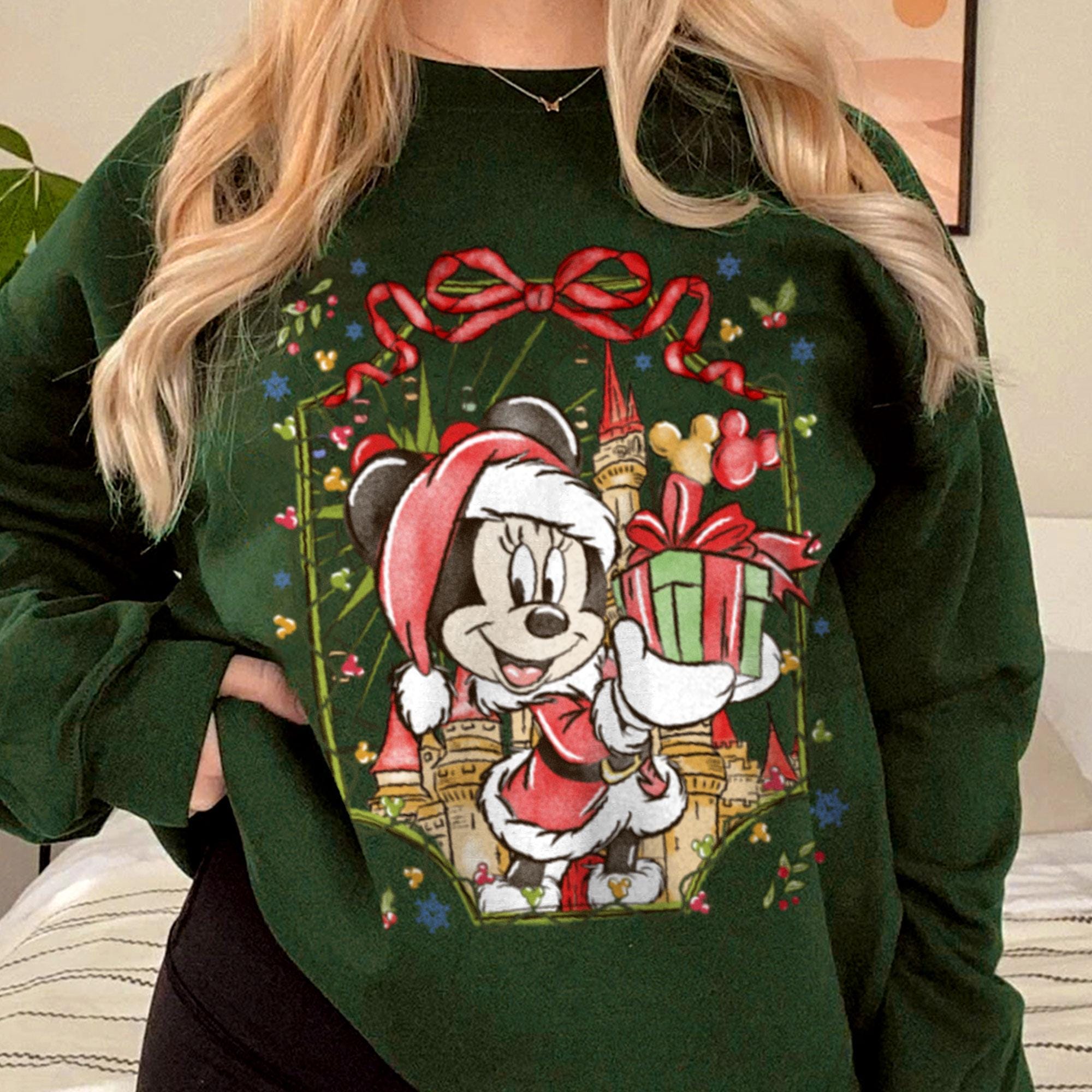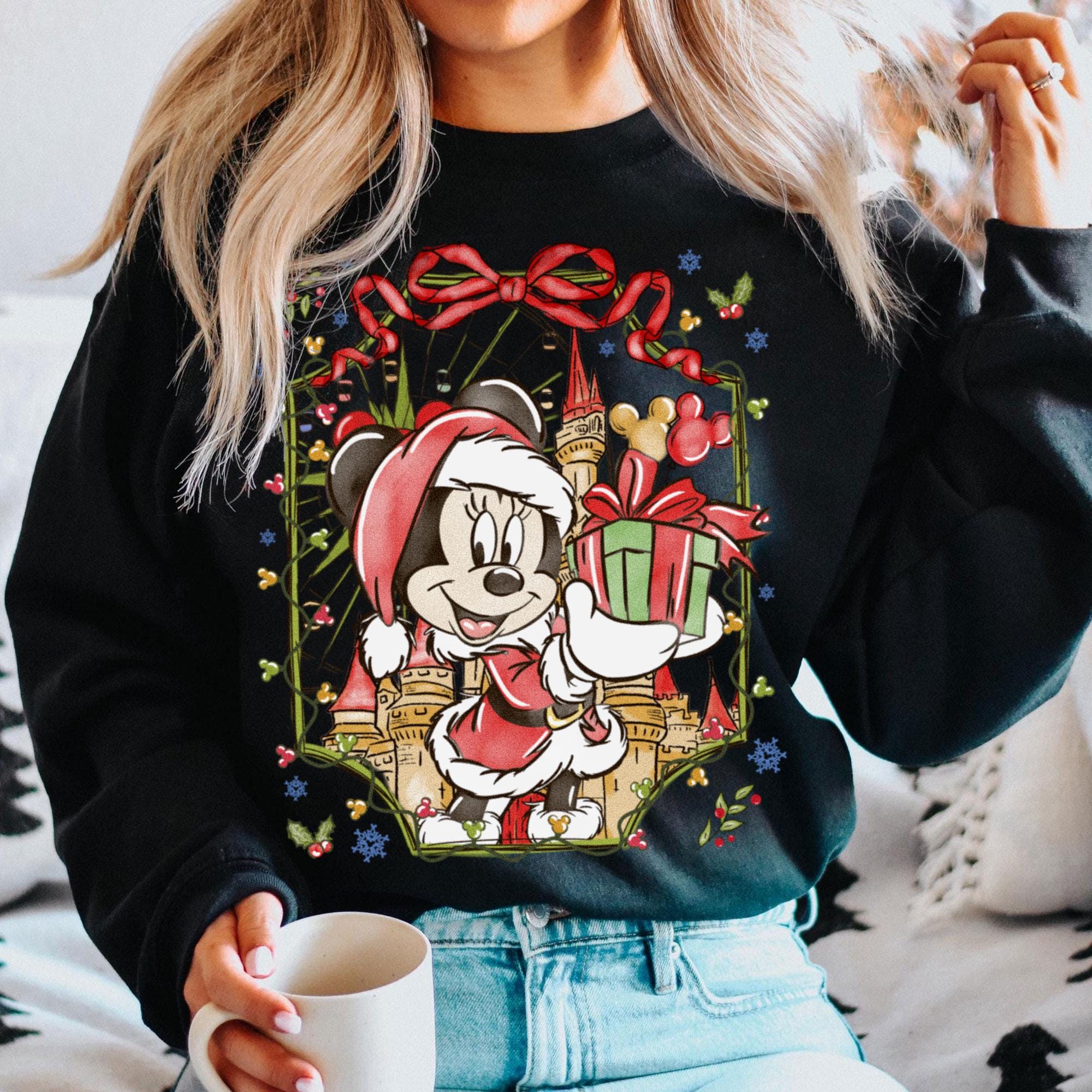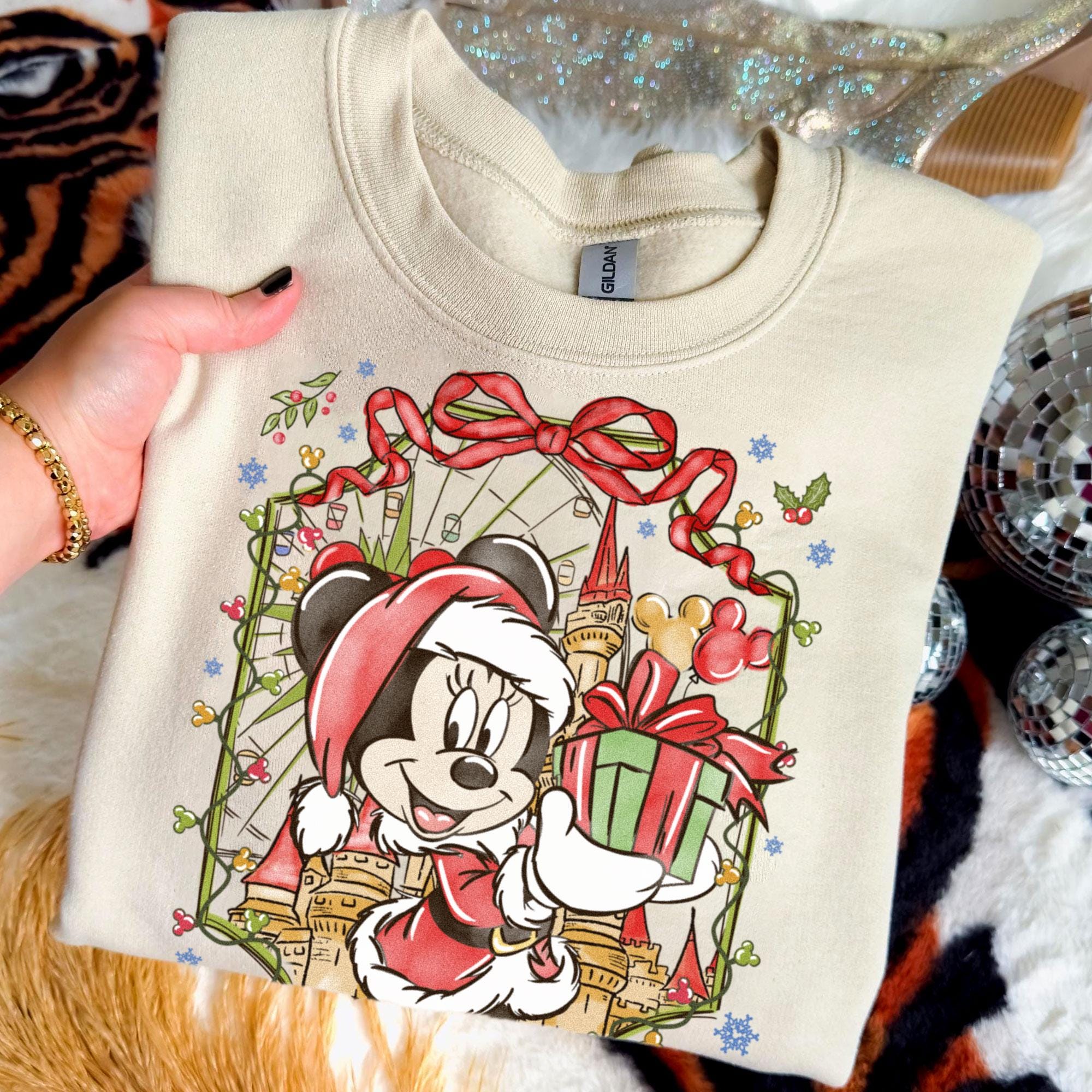 Minnie Santa Tis The Season Disney Castle Xmas Light Wreath Comfort Color Shirt, Very Merry Christmas Party, Disneyland Trip Shirt 2025